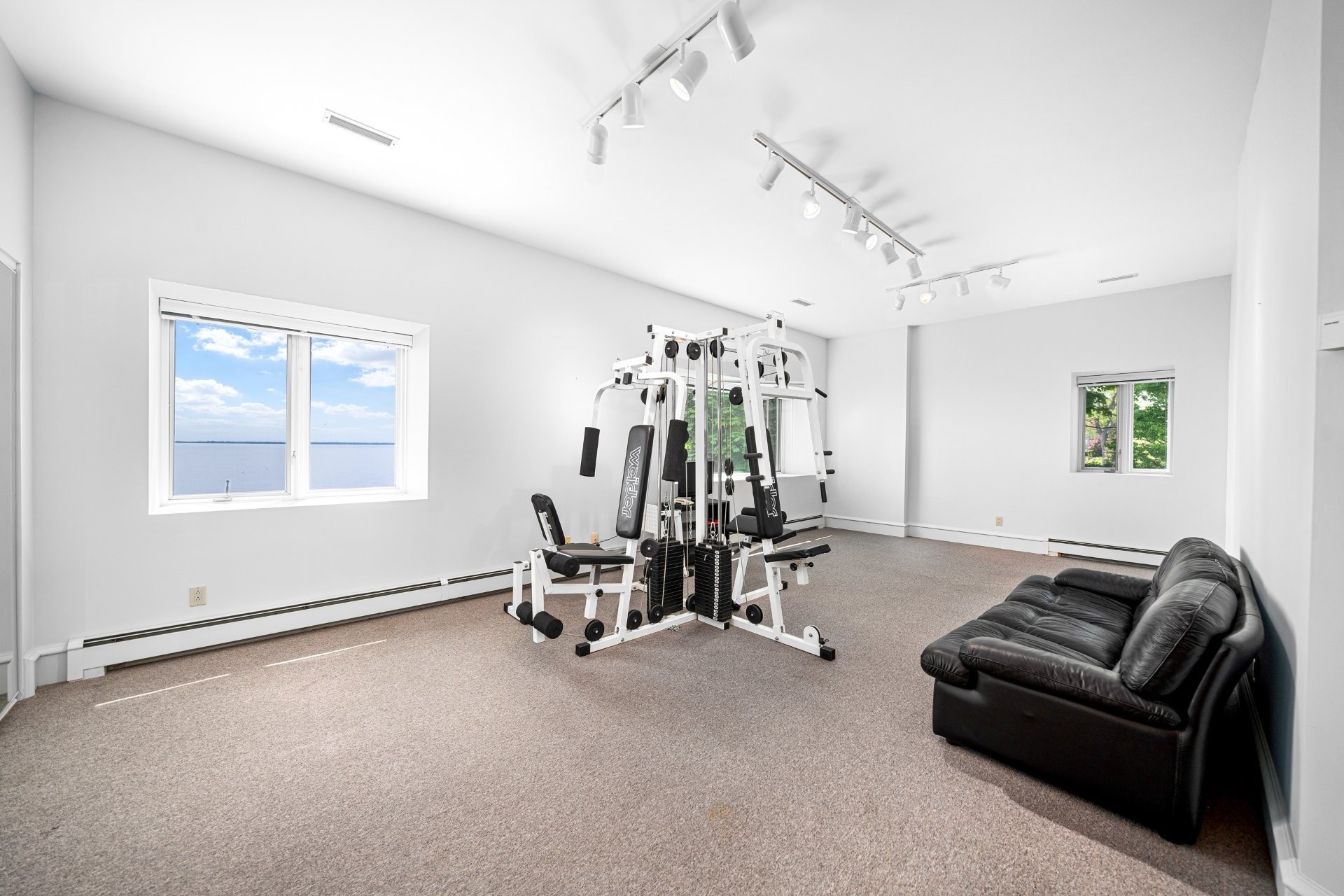 L'aile ouest de la maison présente un potentiel remarquable pour une suite principale d'exception : imaginez un spa privé, un immense walk-in, un bureau ou un gym, le tout avec vue sur le lac. Sa configuration se prête aussi bien à la vie intergénérationnelle qu'à l'accueil de vos invités dans des suites privées.
