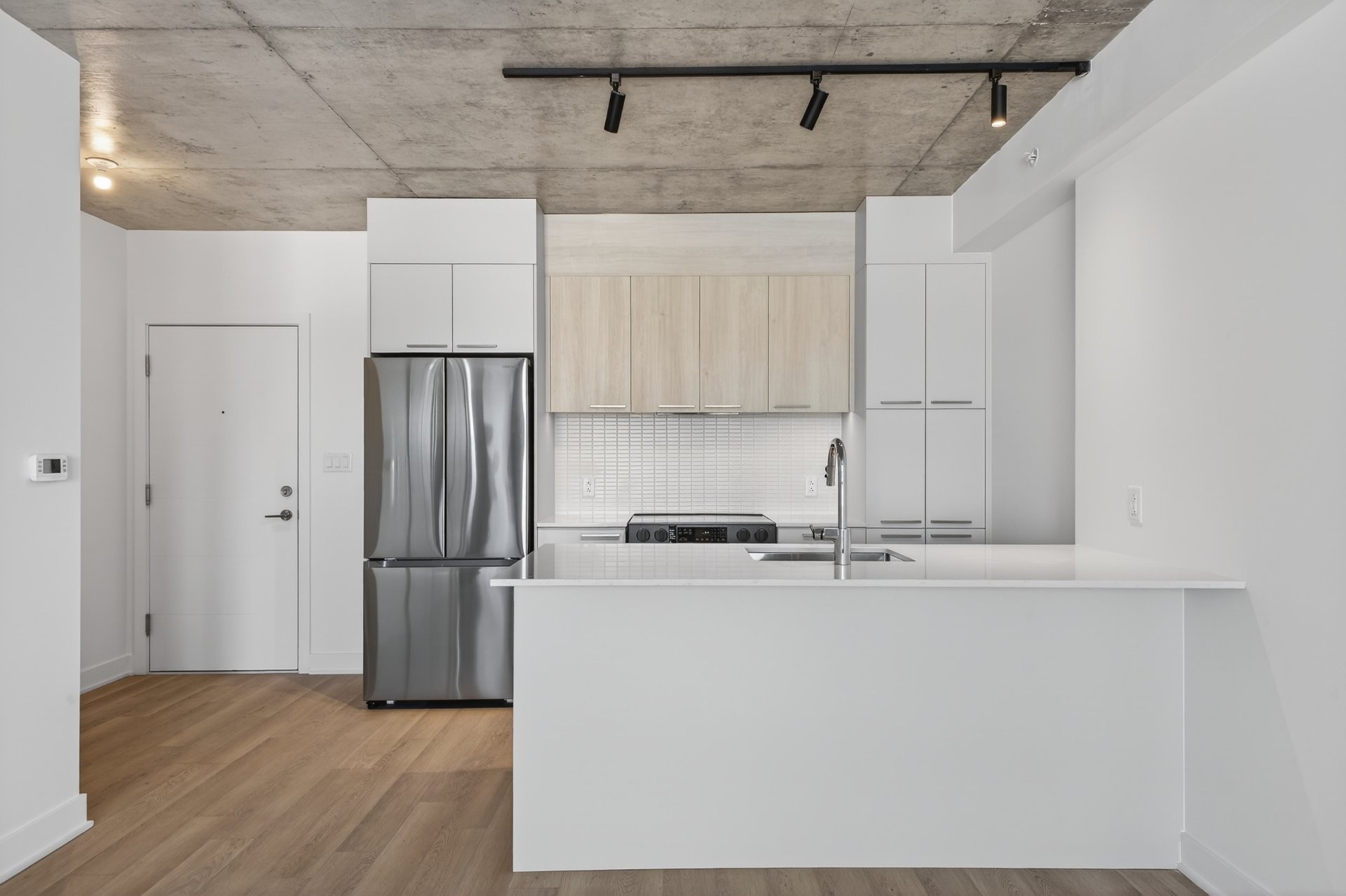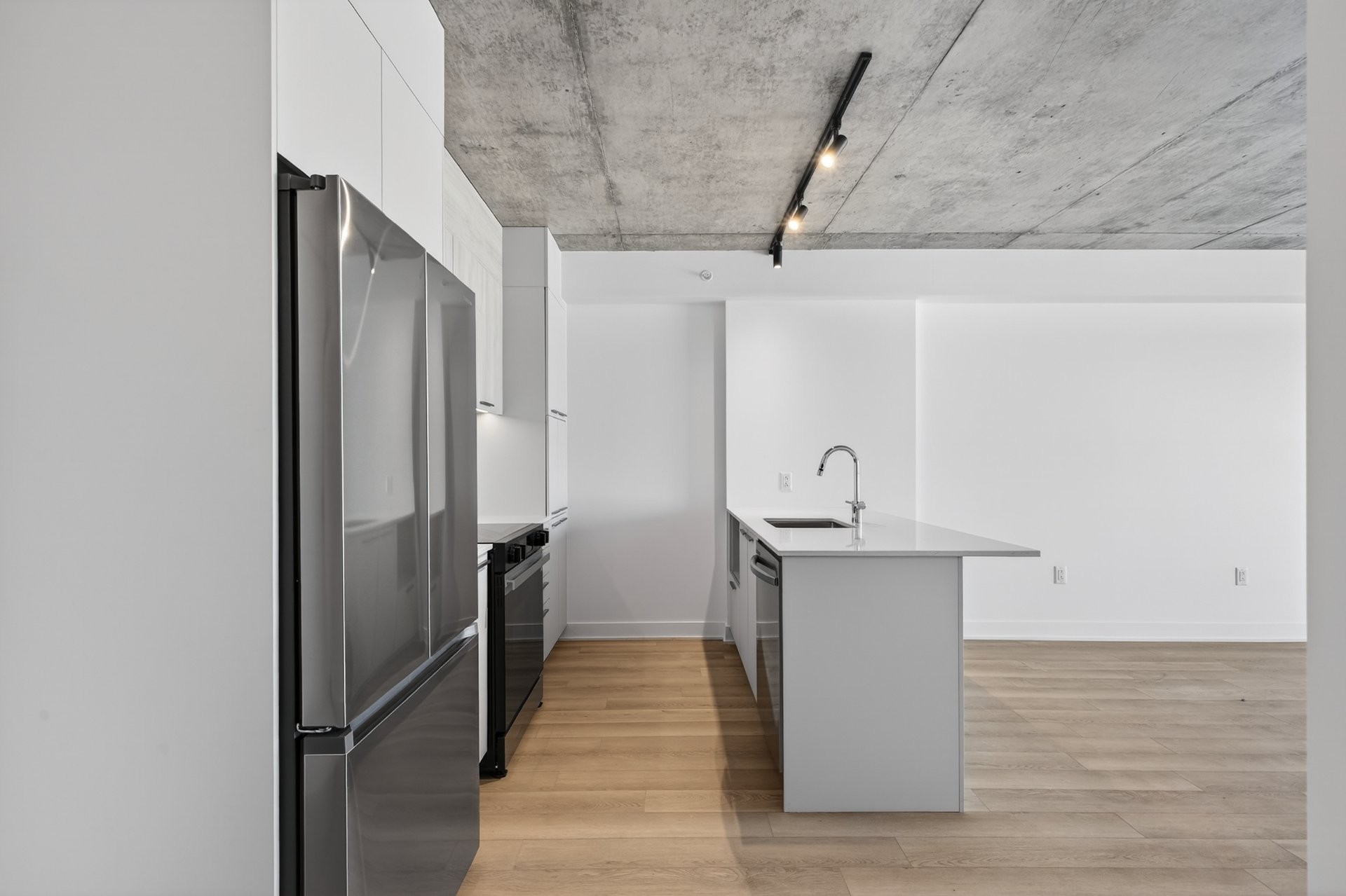 Superbe condo neuf d'une chambre à coucher, jamais habité, offrant une luminosité exceptionnelle. L'unité comprend un stationnement intérieu...