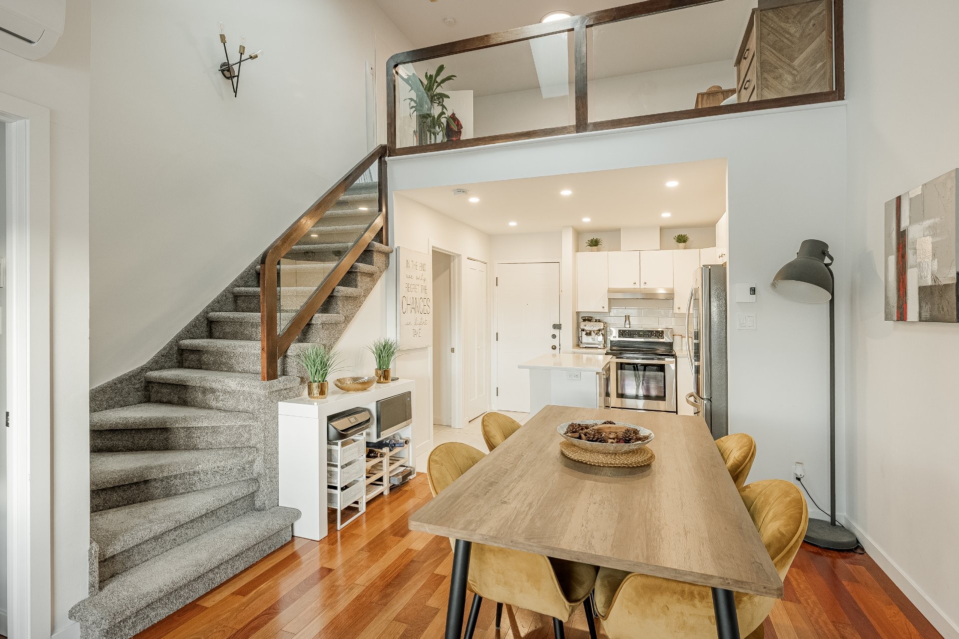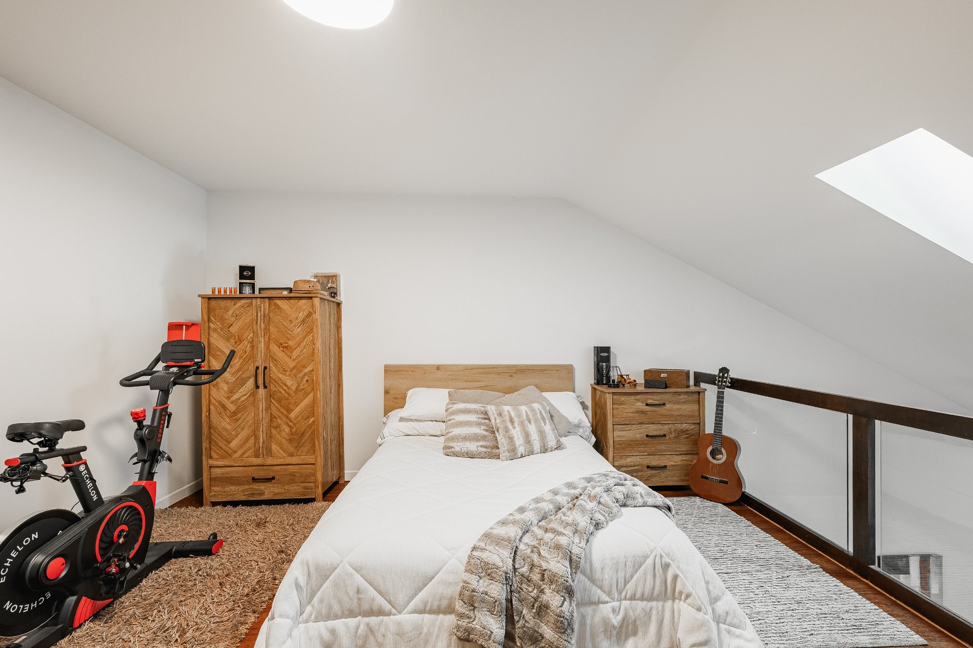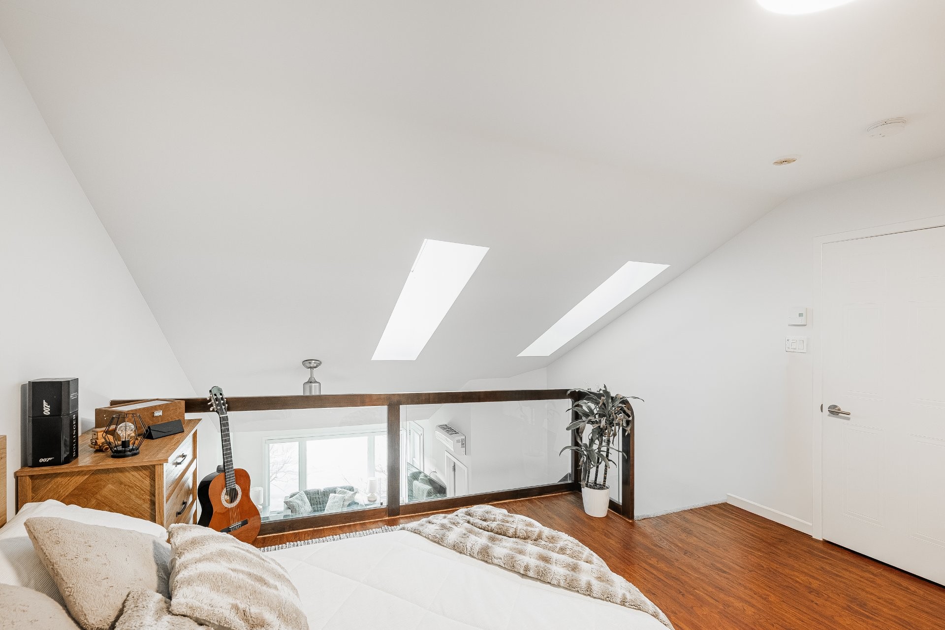 Condo lumineux et spacieux avec mezzanine offrant une chambre fermée ainsi qu'un espace ouvert pouvant servir de deuxième chambre, bureau ou coin détente. Entièrement rénovée en 2022, l'unité se distingue par ses plafonds cathédrale, ses puits de lumière et une disposition fonctionnelle comprenant deux salles de bains, dont une salle d'eau. Située au 3e étage d'un immeuble tranquille et bien entretenu, cette propriété représente une occasion rare à St-Hubert. Idéalement localisée à proximité des autoroutes 116 et 30, avec un accès rapide au transport en commun, aux commerces et aux services essentiels.