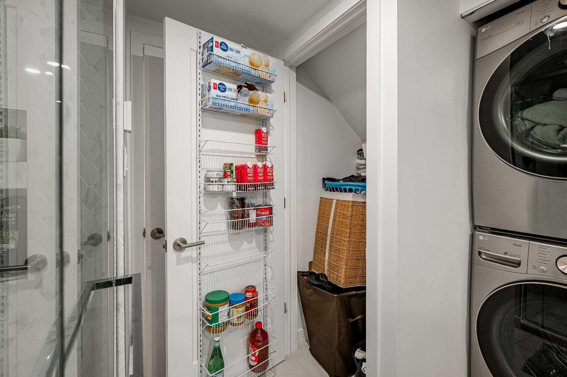 Réfrigérateur, cuisinière, hotte, lave-vaisselle, laveuse, sécheuse, luminaires, stores, thermopompe, tablettes de rangement dans le garde-manger.