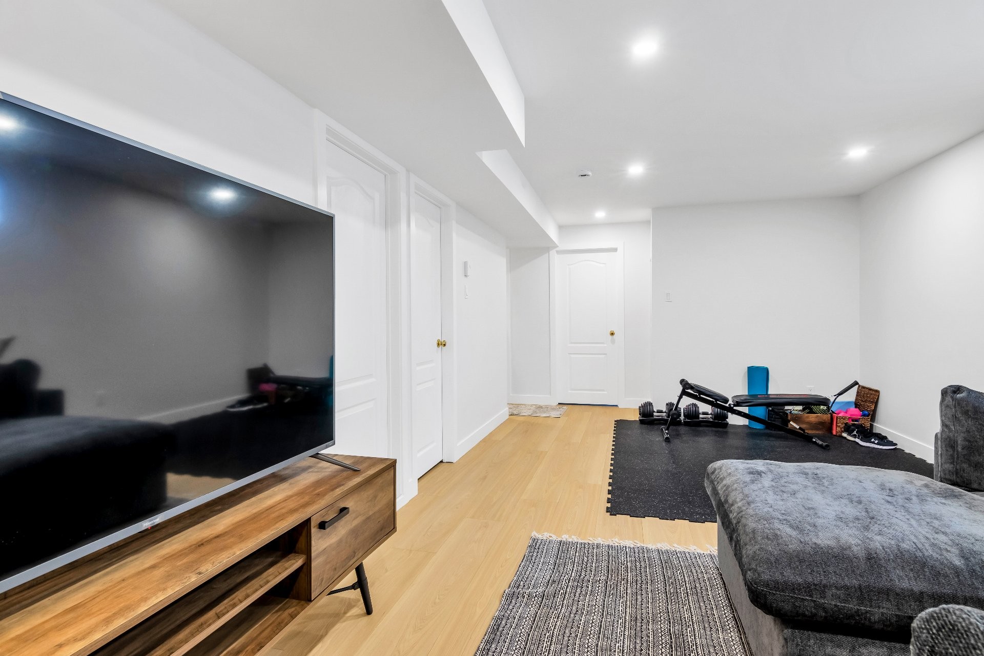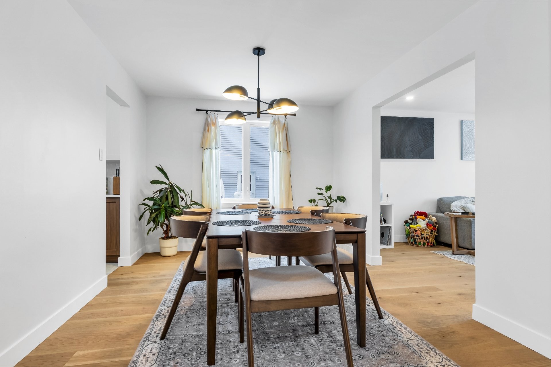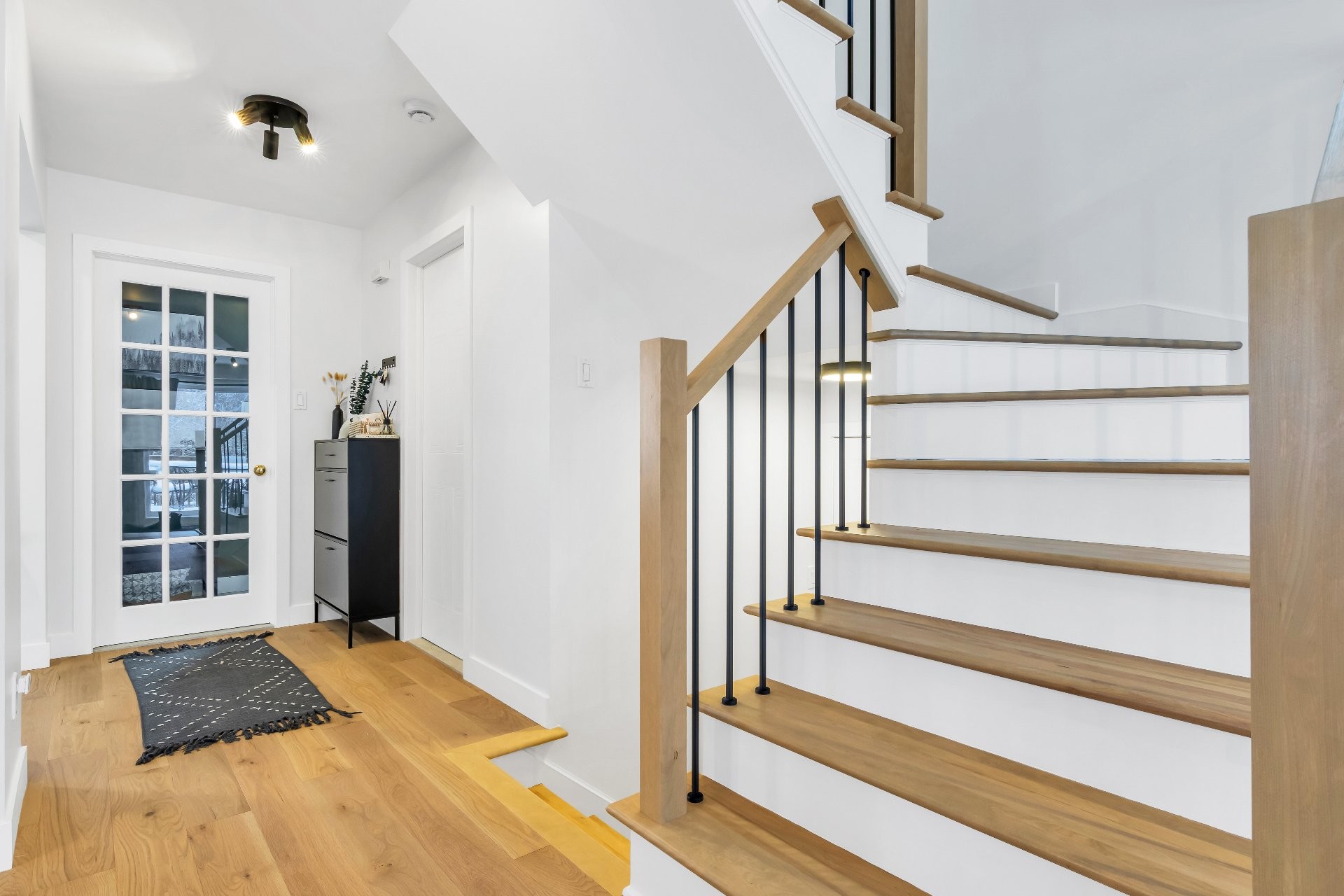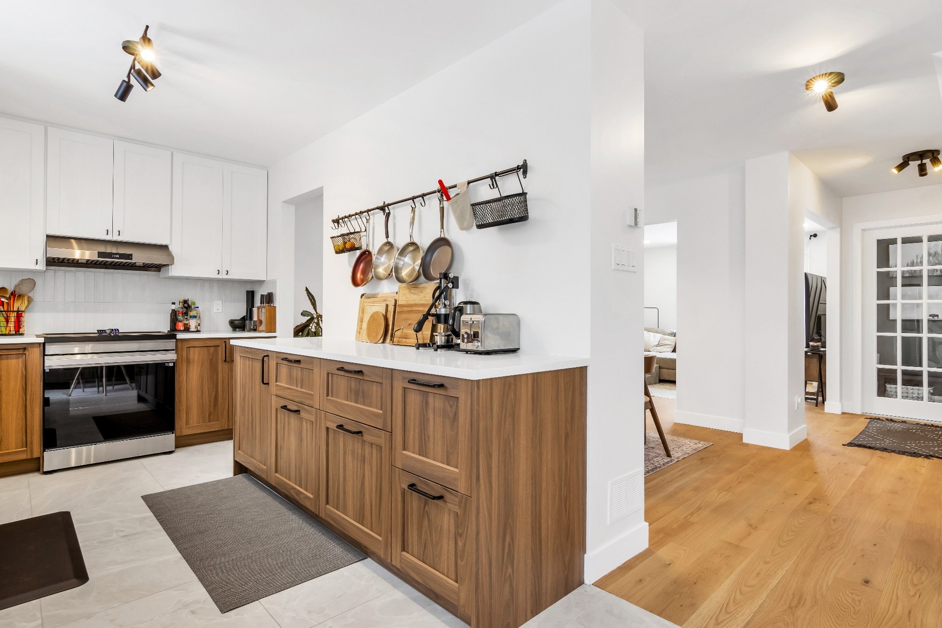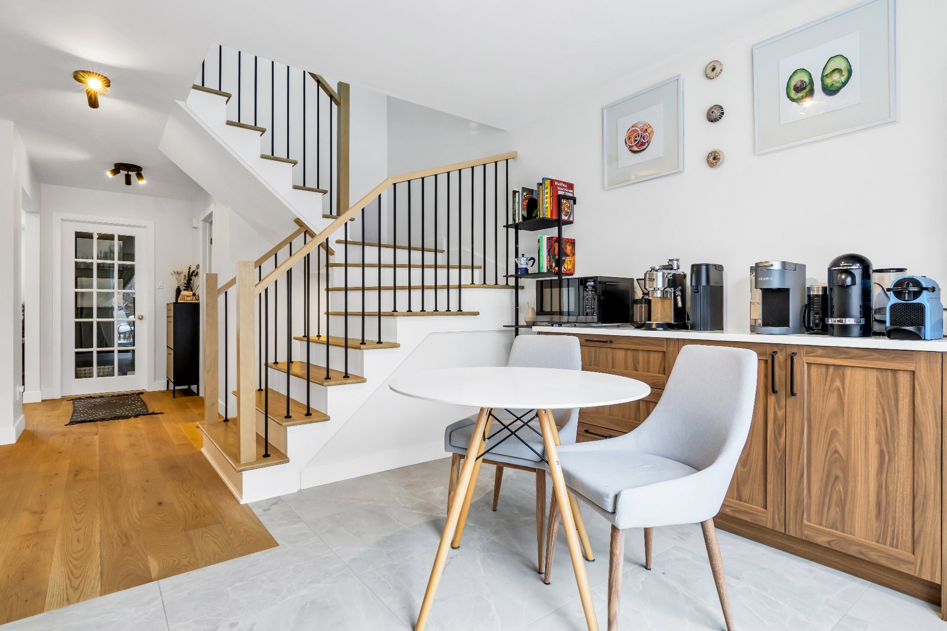 Le rez-de-chaussée a été repensé afin d'optimiser la circulation et l'ouverture des espaces, avec le retrait de certains éléments architecturaux pour créer de vastes aires de vie et de salle à manger -- idéales pour recevoir. Les planchers ont été entièrement remplacés par du bois d'ingénierie au rez-de-chaussée et à l'étage, complétés par de la céramique dans l'entrée, la cuisine, la salle de lavage et les salles de bain, ainsi que par un revêtement de sol stratifié dans les espaces de vie et les chambres du sous-sol.