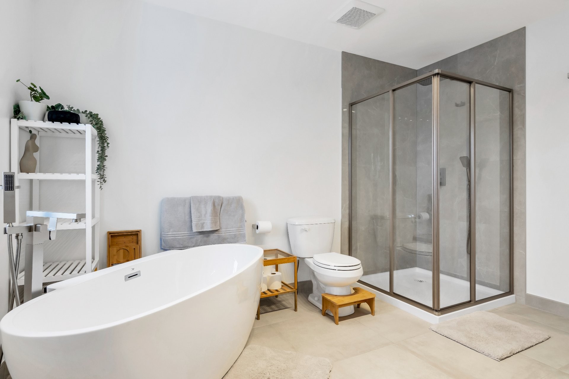 Les salles de bain ont été complètement rénovées avec de nouvelles baignoires, douches, vanités, robinetterie et une céramique élégante. La salle de lavage / salle d'eau a également été modernisée avec de nouvelles finitions et installations, assurant une esthétique cohérente et soignée dans l'ensemble de la propriété.