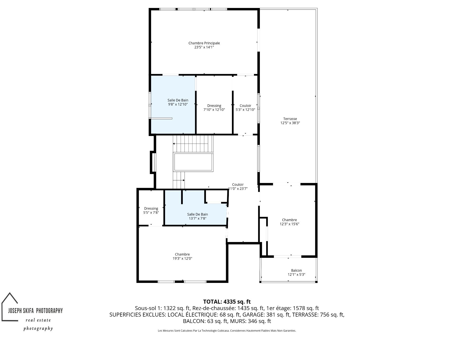 | Salle de bain | 2ième étage | 13.7x7.4 P | Marbre | Douche séparée |