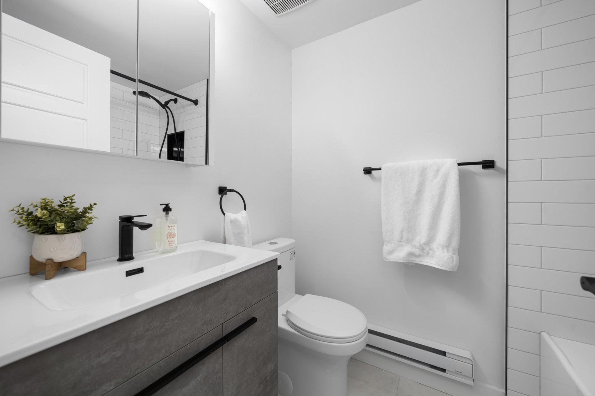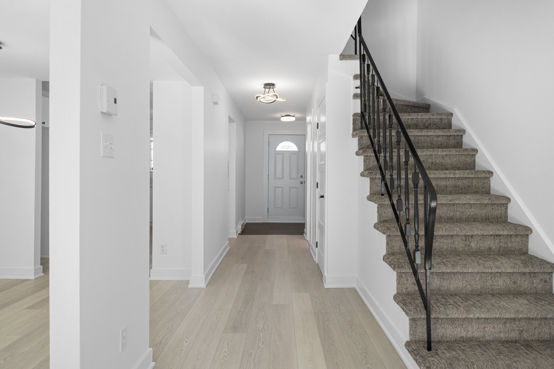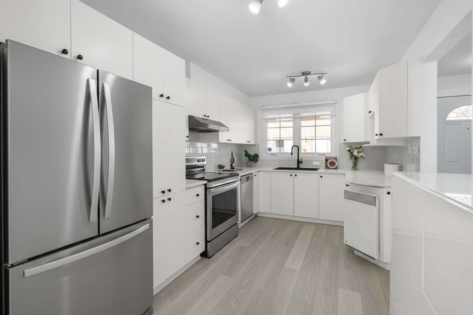 Le rez-de-chaussée offre un espace à aire ouverte accueillant, avec un salon et une salle à manger spacieux, parfaits pourrecevoir. La cuisine repensée se distingue par ses élégants comptoirs en quartz et son vaste espace de rangement, tandisque les grandes fenêtres inondent la pièce de lumière naturelle. Depuis l'aire de vie, accédez à votre cour arrière privée orientée sud, entièrement clôturée -- idéale pour se détendre ou recevoir famille et amis. Une élégante salle d'eau se trouve également à proximité de l'entrée.