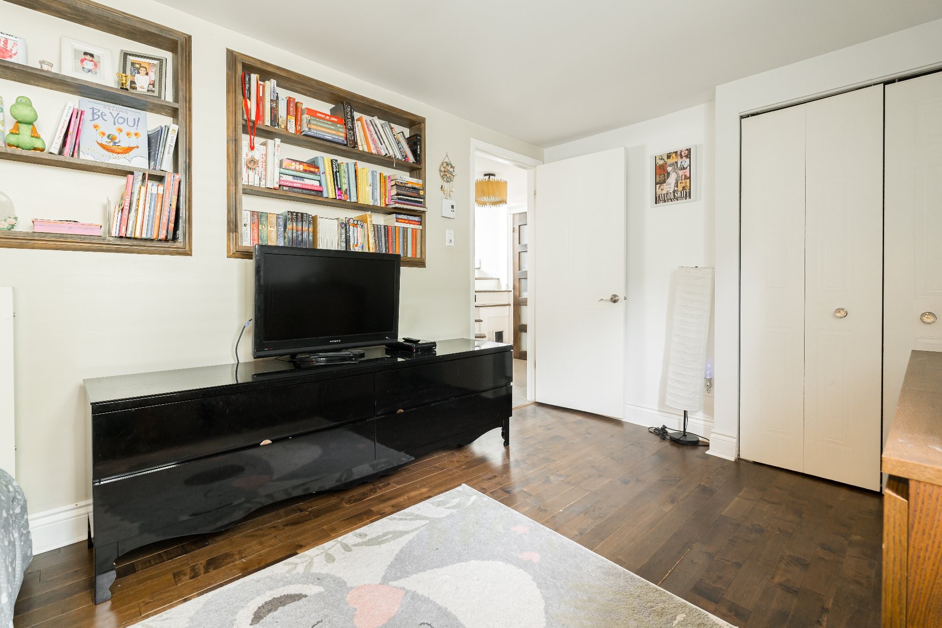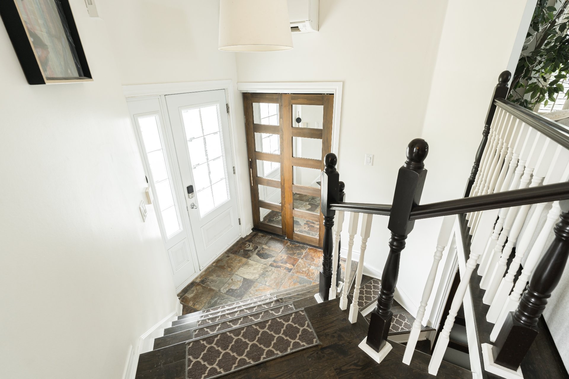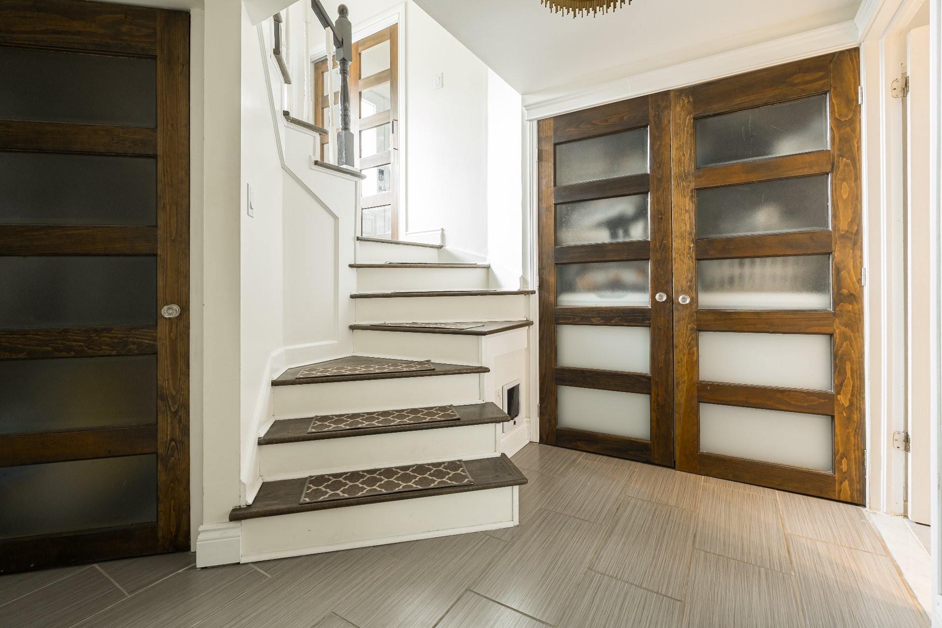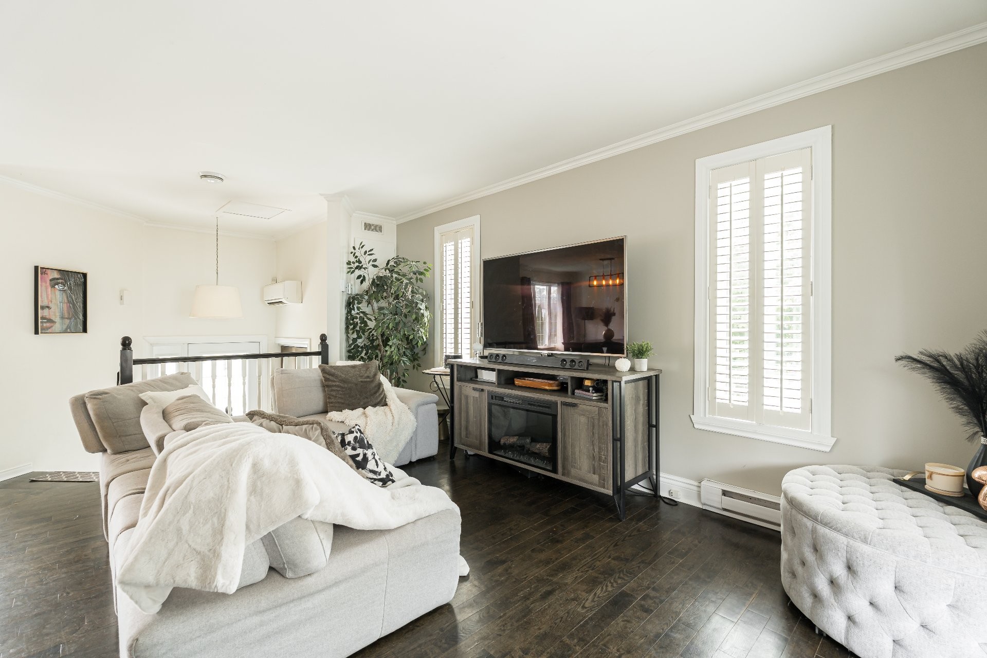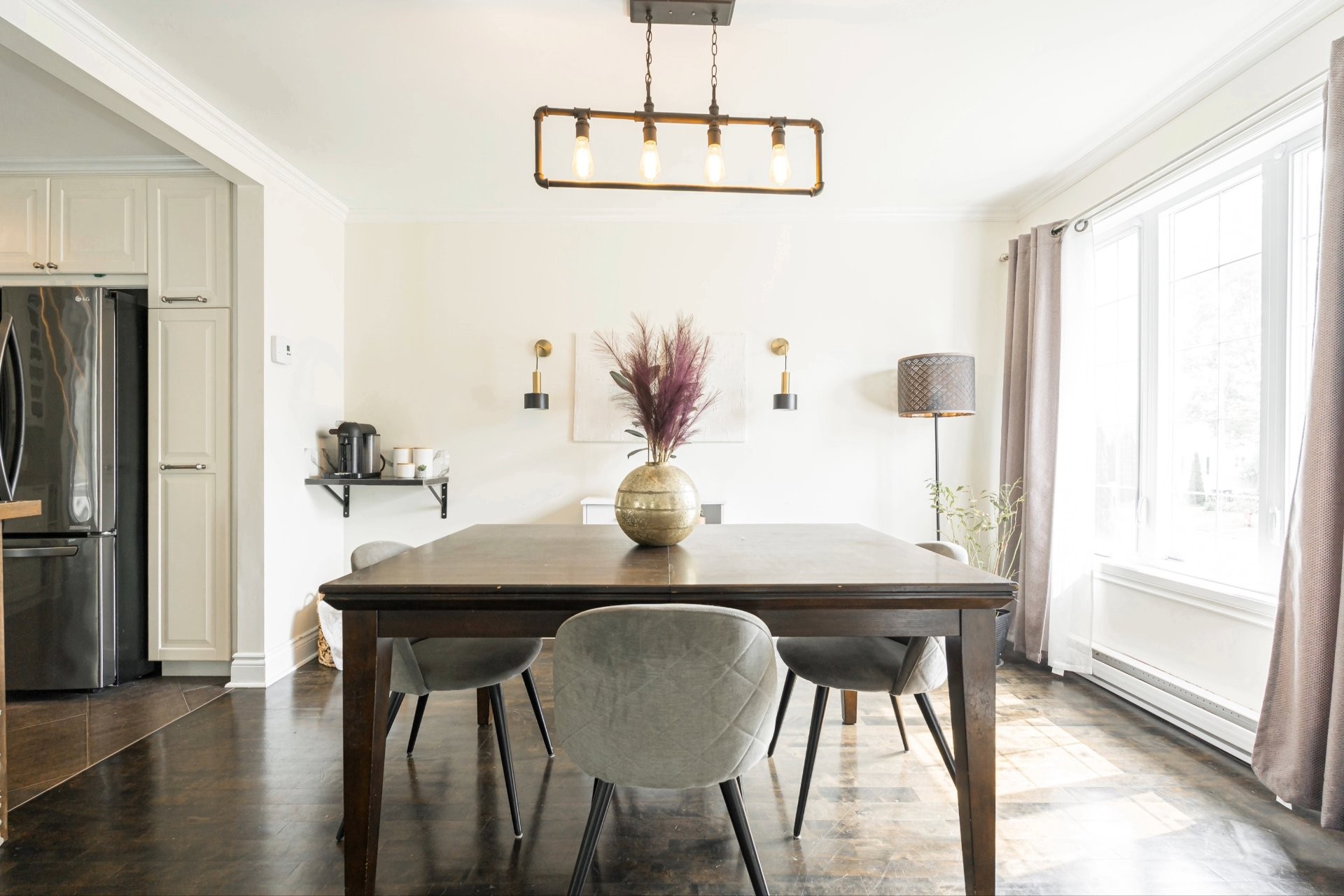 Les planchers en bois d'une riche couleur noyer moyen/foncé apporte élégance et chaleur aux espaces de vie principale (ainsi qu'aux chambres à coucher).