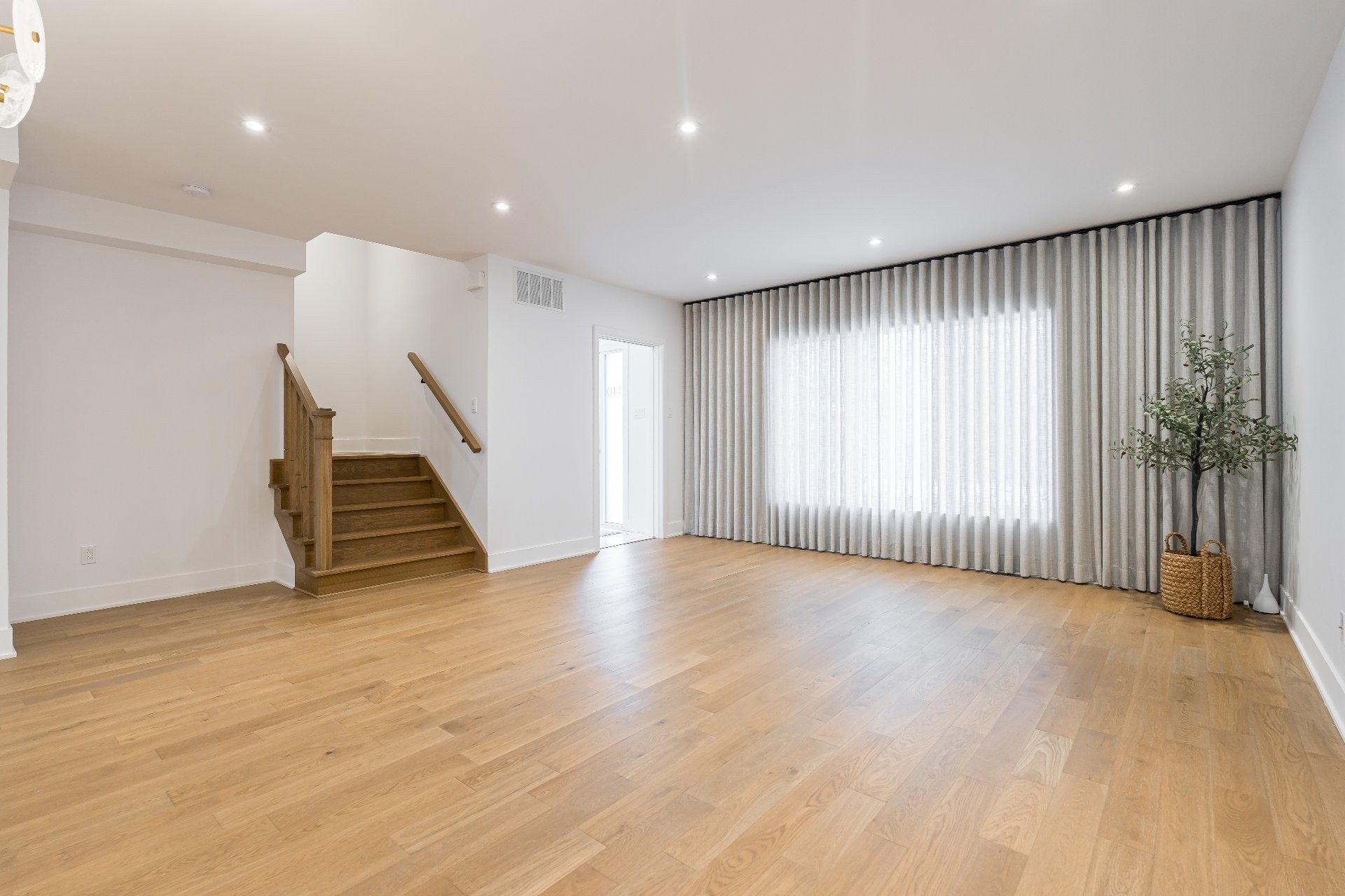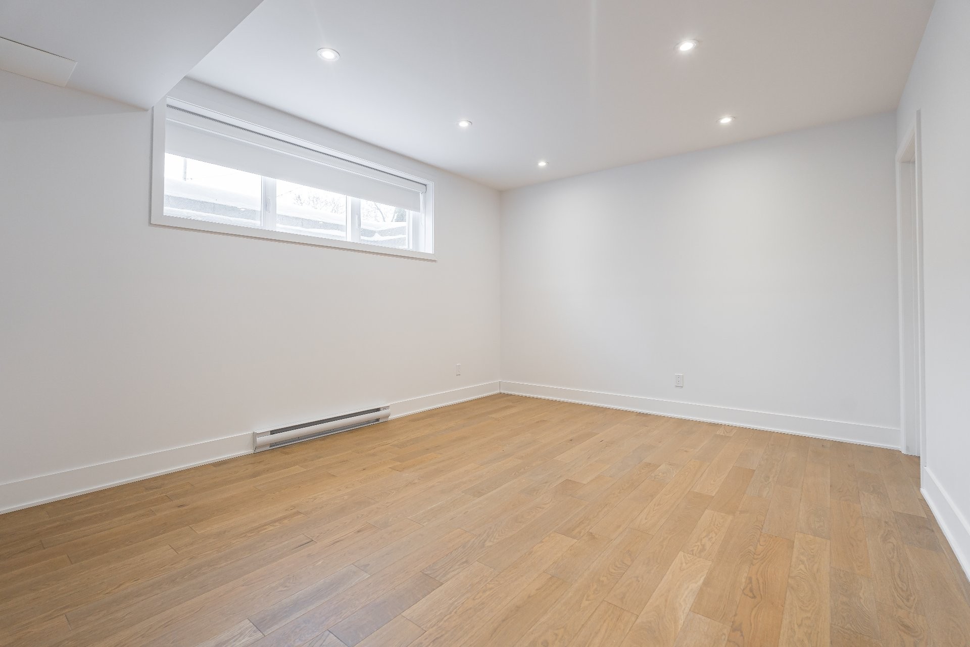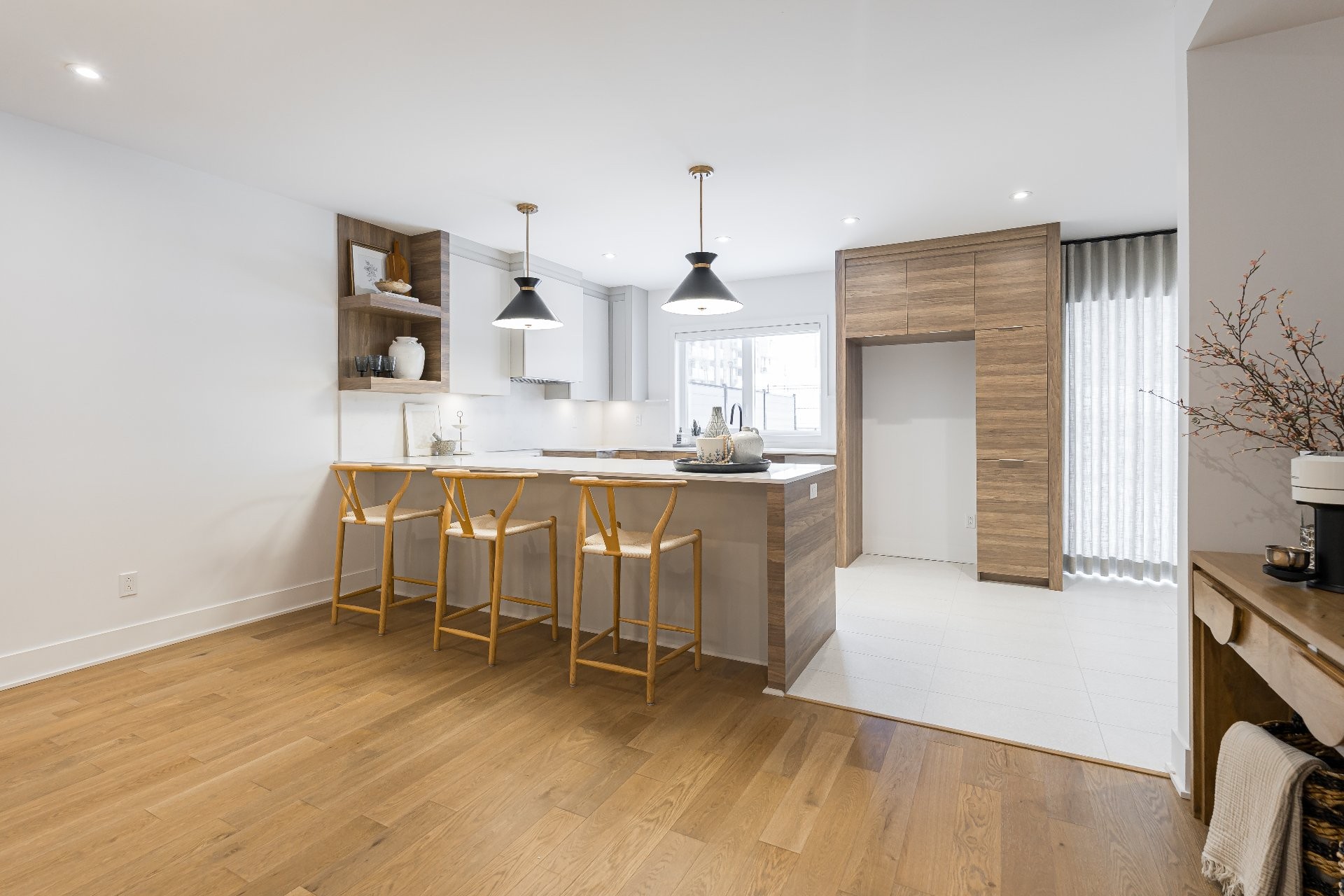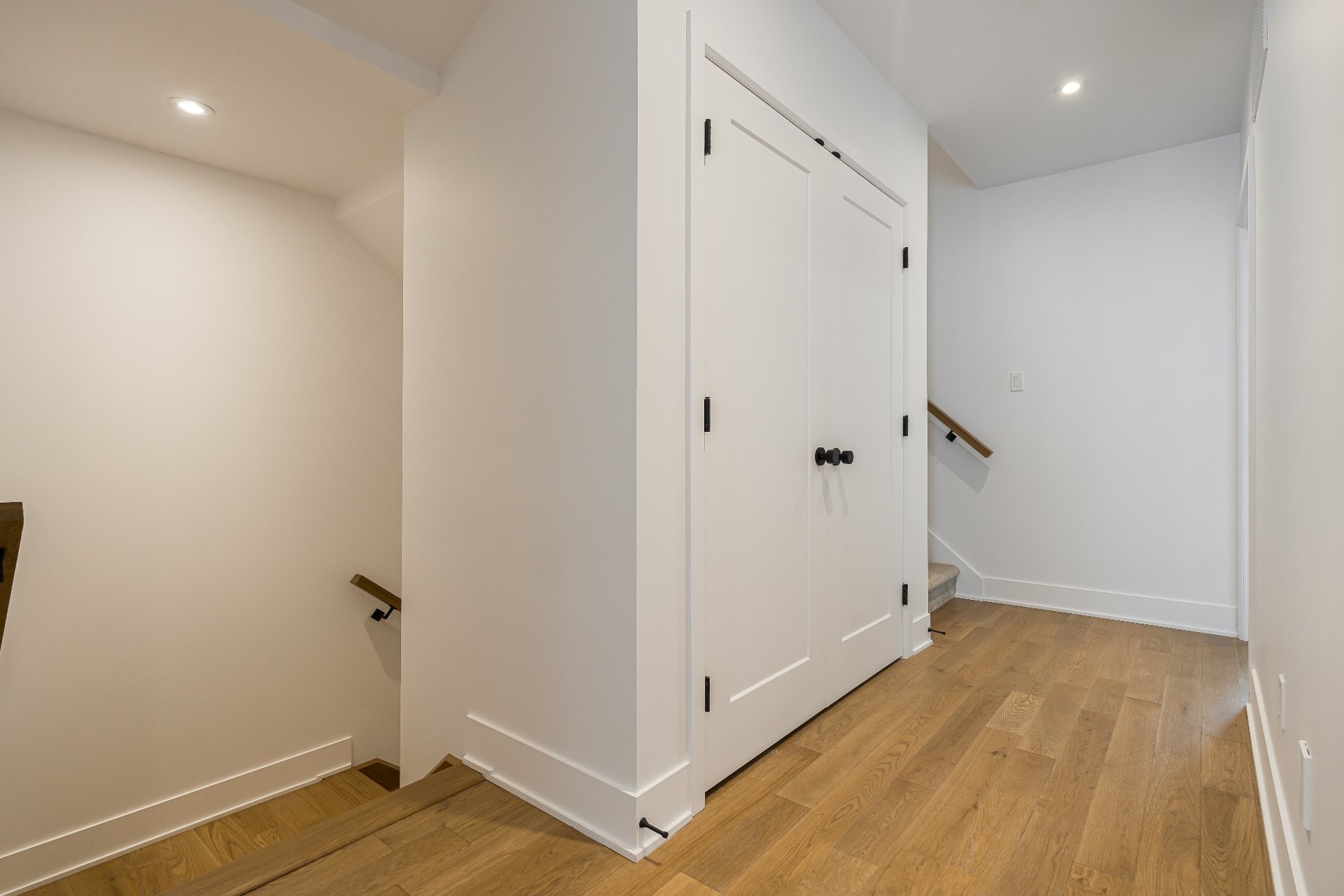 - Plancher contemporain en chêne d'ingénierie, planches larges (7.5") aux niveaux principal, nivaux des chambres et sous-sol.