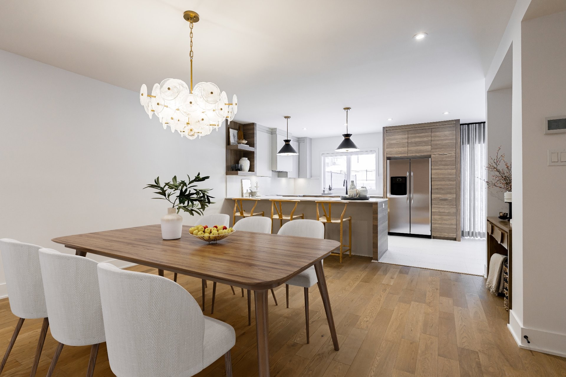 - La salle à manger & le salon à concept ouvert reliés par les planchers en chêne sont de grandes pièces créent de la fonctionnalité et facilitent le placement des meubles. Installe facilement une table de récolte et de nombreux sièges de salon.