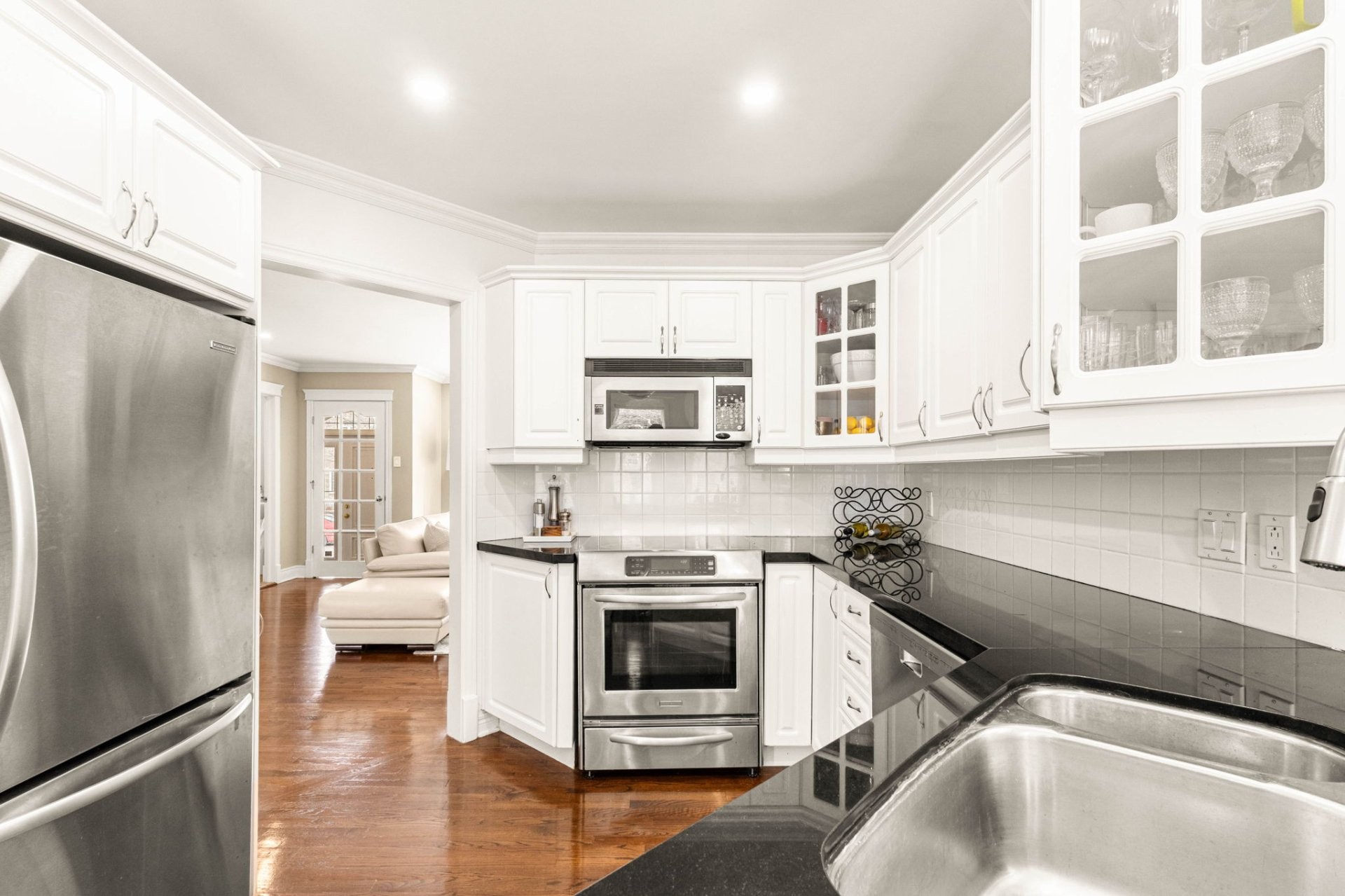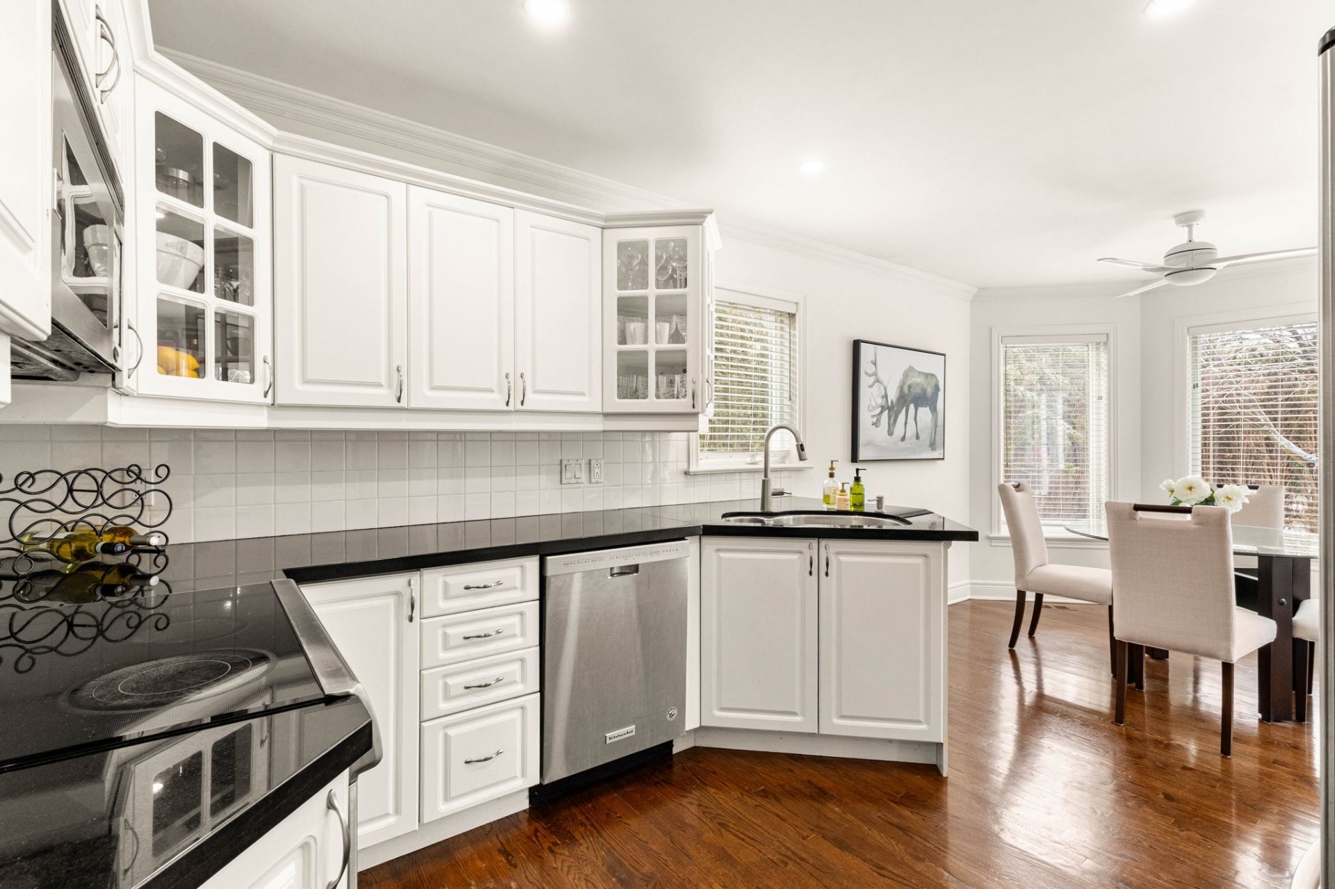 Tous les luminaires fixes (sauf salle à manger et appliques salle de bain étage), les rideaux et stores, réfrigérateur KitchenAid (2009), cuisinière KitchenAid (éclat sur la plaque de cuisson en verre - 2009), micro-ondes, lave-vaisselle KitchenAid (2017), laveuse et sécheuse Samsung (2009), ventilateur de plafond dans la dinette, système d'irrigation (fonctionnalité non garantie car inutilisé depuis des années), ouvre-porte de garage.