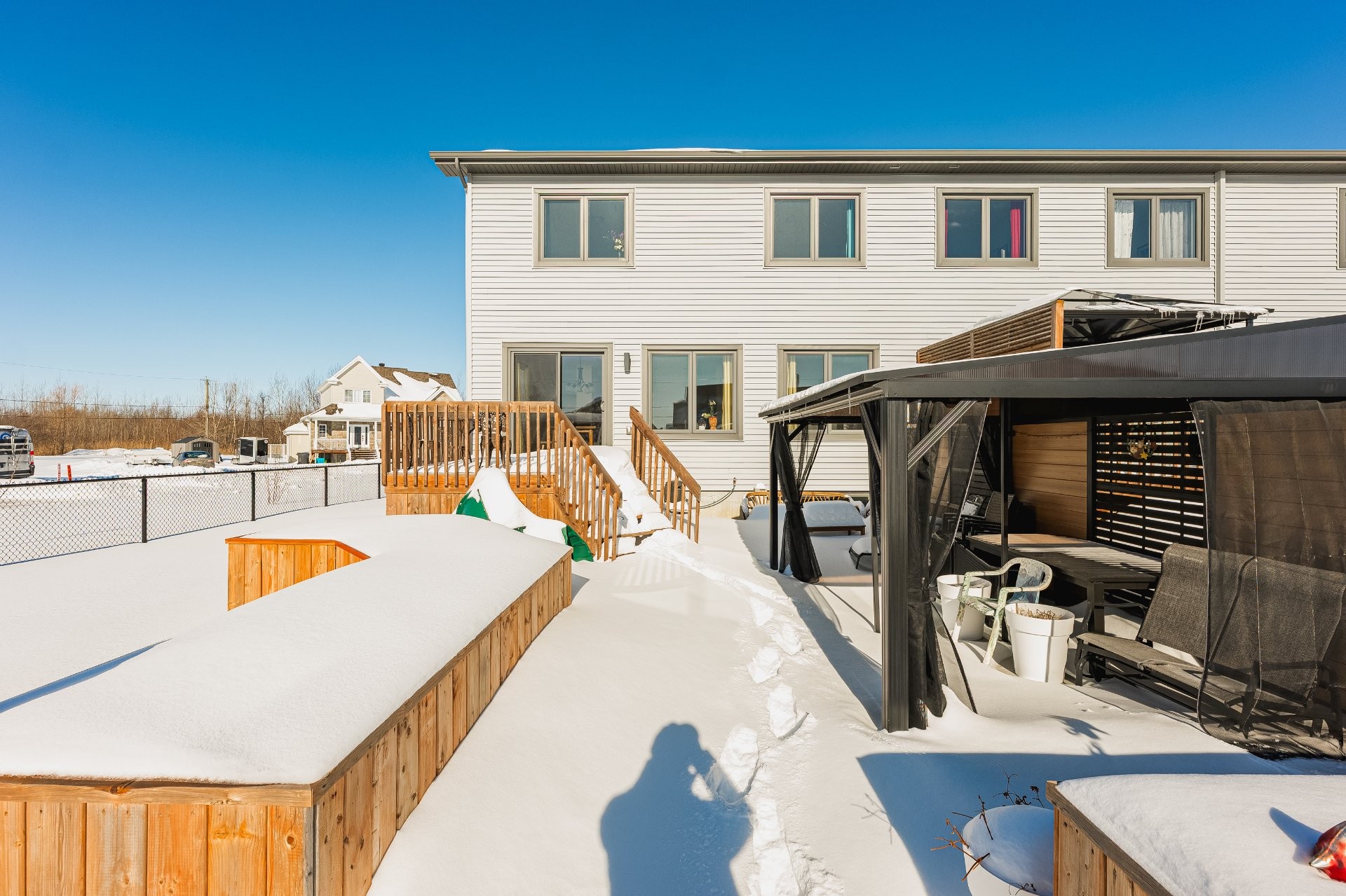 Superbe unité de coin jumelée à Saint-Zotique, toujours couverte par la garantie GCR! Lumineuse et accueillante grâce à ses grandes fenêtres laissant entrer une abondante lumière naturelle. Cour entièrement clôturée avec cabanon chauffé, parfait pour le rangement ou un atelier. Sous-sol aménagé avec planchers chauffants partout, deux chambres et une salle de bain complète. Garage attaché avec mezzanine offrant un espace de rangement supplémentaire. Idéalement située à quelques minutes de l'autoroute, des écoles primaires et secondaires, ainsi que des épiceries. À voir absolument!