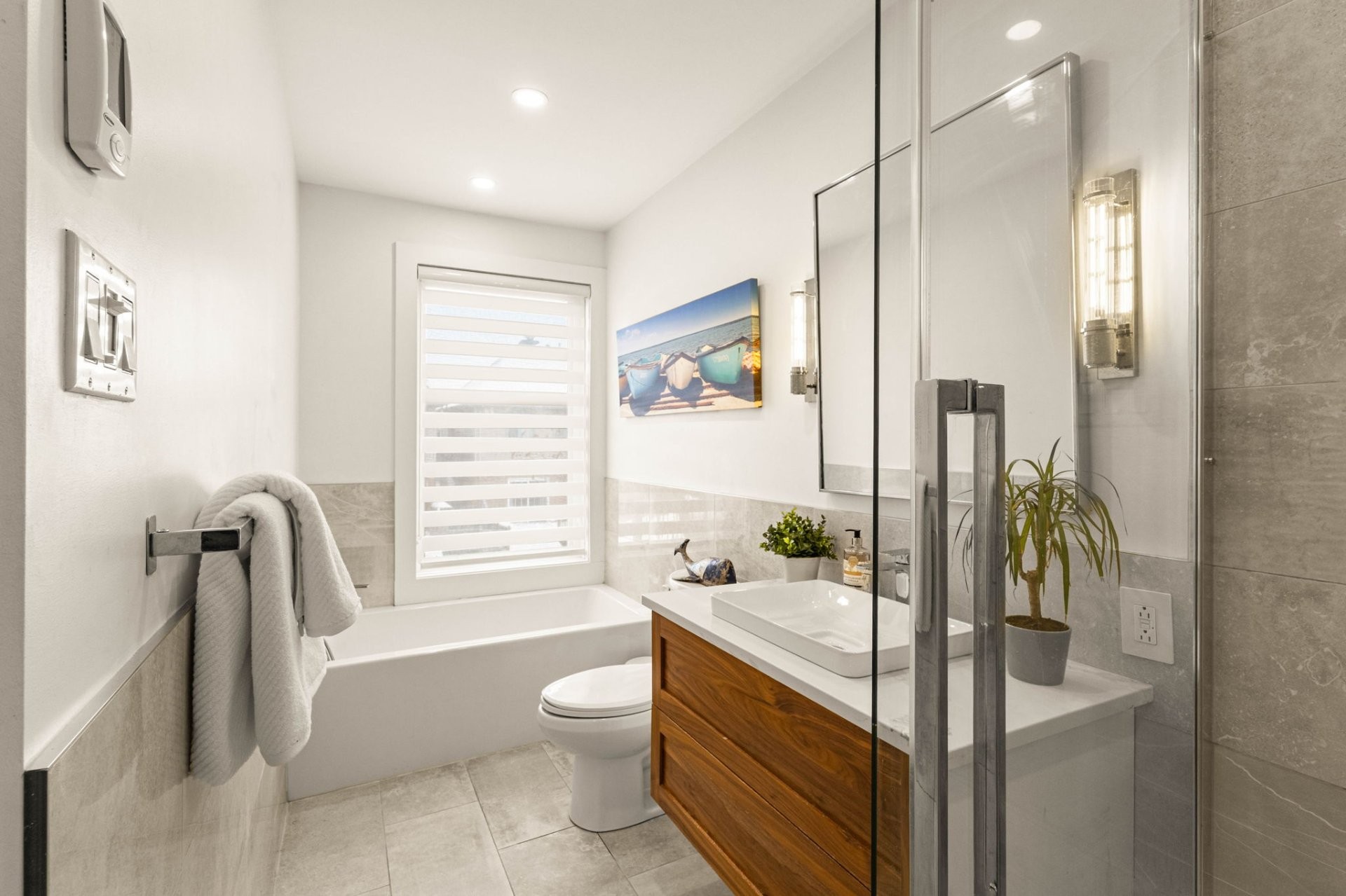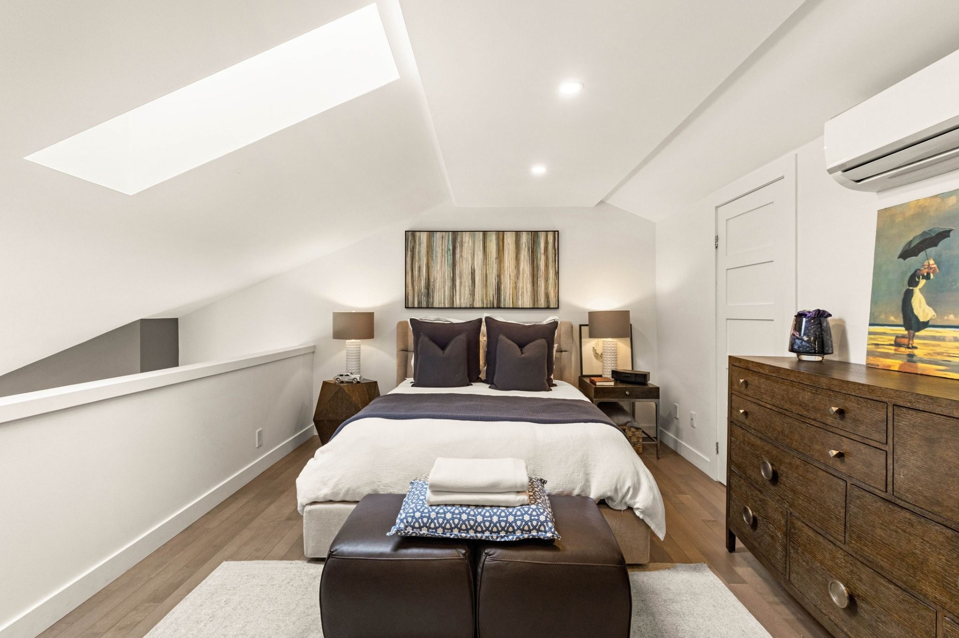 L'aménagement bien pensé propose deux chambres à coucher, dont une magnifique suite principale située sur une mezzanine privée. La salle de bain est un véritable sanctuaire, conçue avec soin avec des planchers chauffants, une douche vitrée indépendante et une baignoire profonde pour une détente absolue. Chaque coin de cette résidence témoigne de la qualité des rénovations récentes, alliant confort contemporain et ambiance chaleureuse.