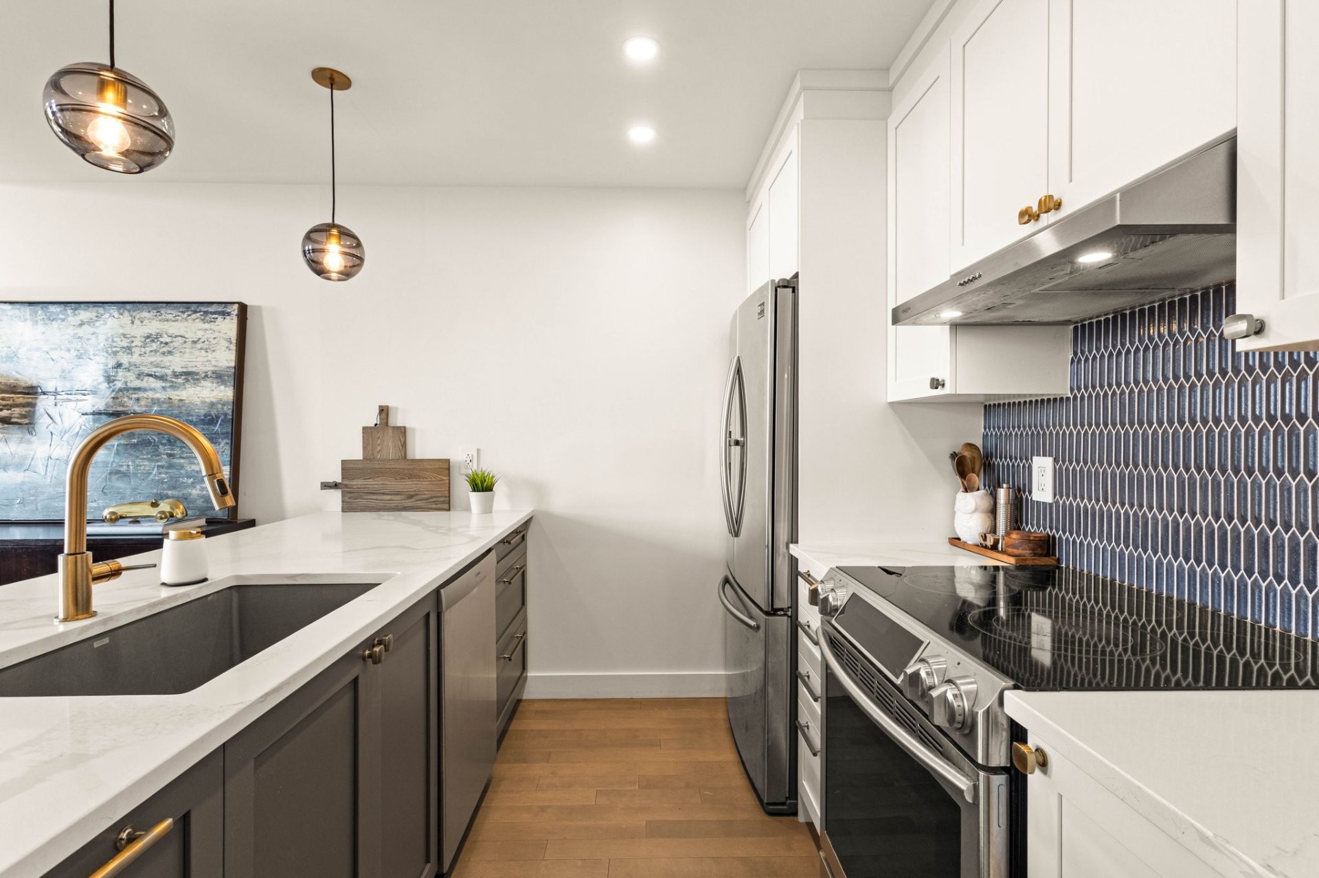 - Nouveau plancher de bois d'ingénierie dans toute l'unité (incluant l'escalier et la mezzanine)