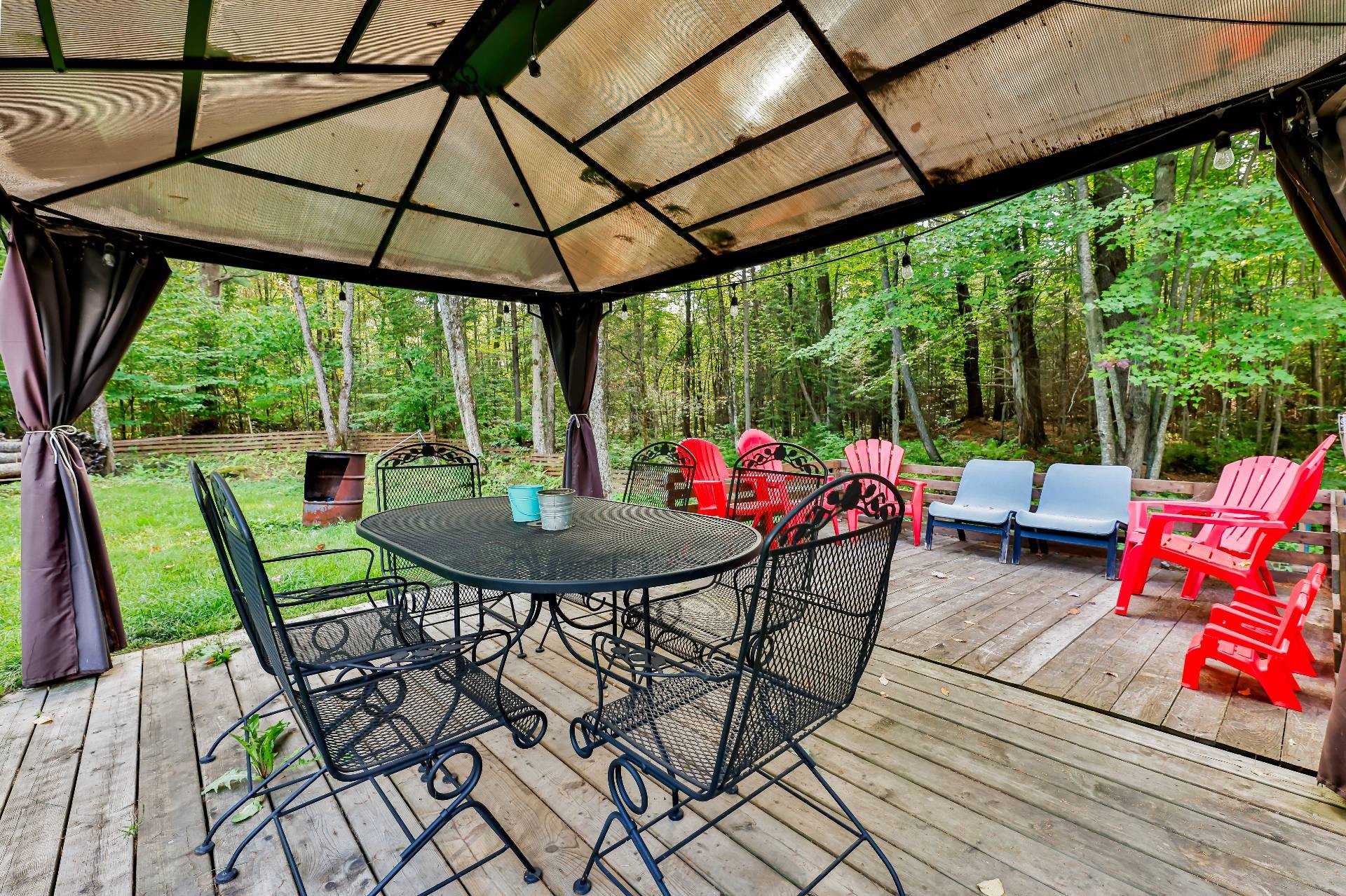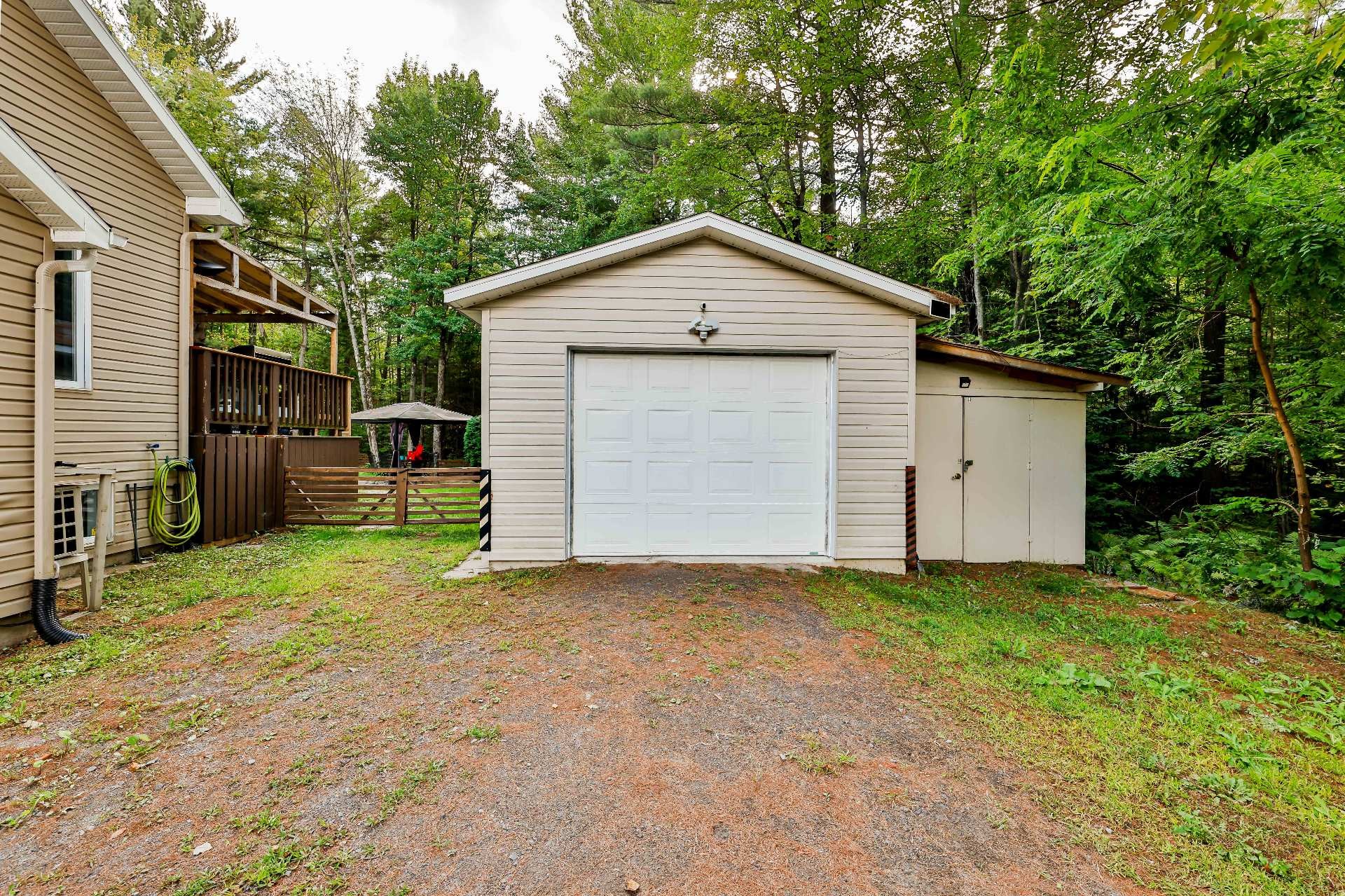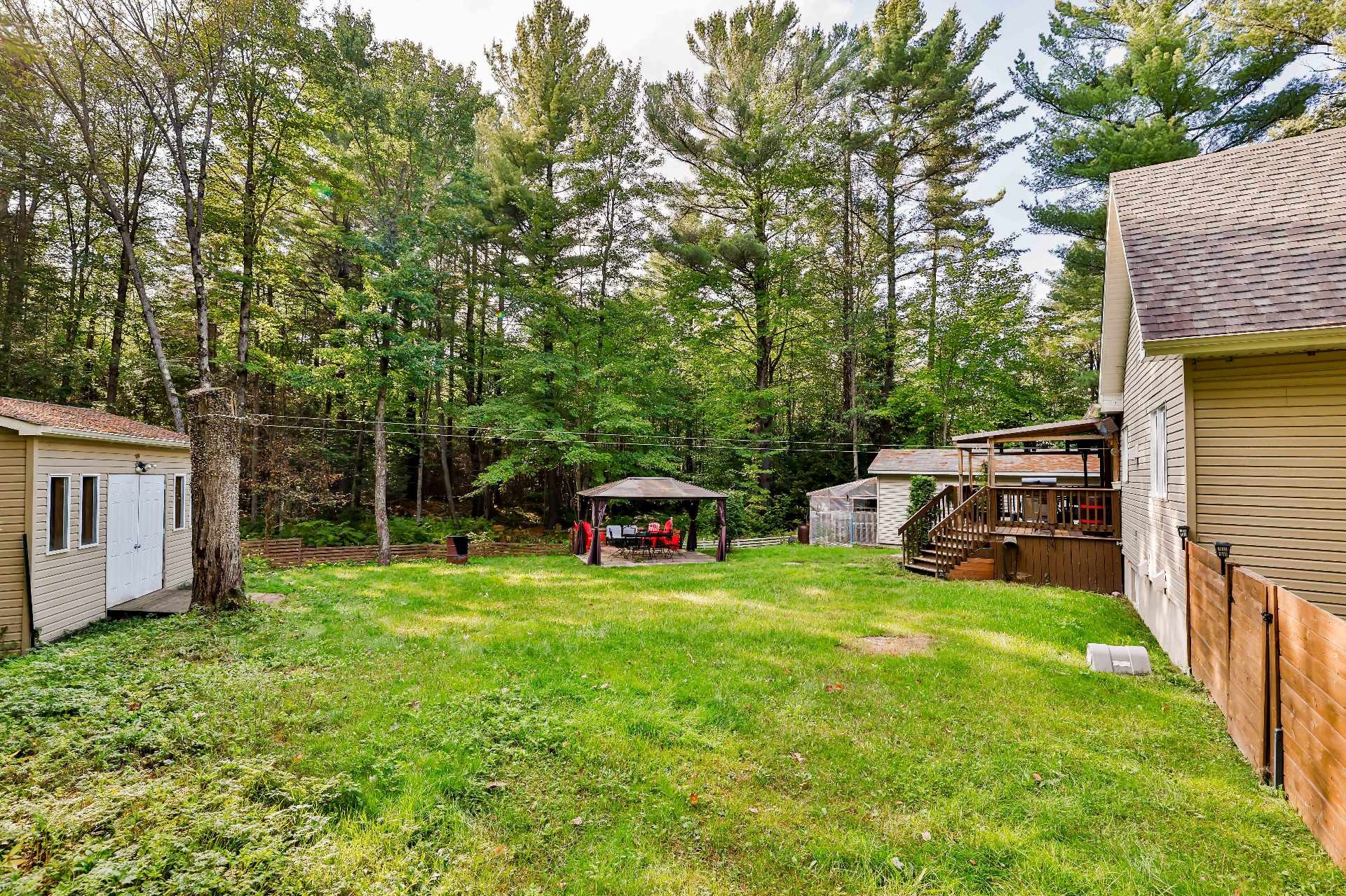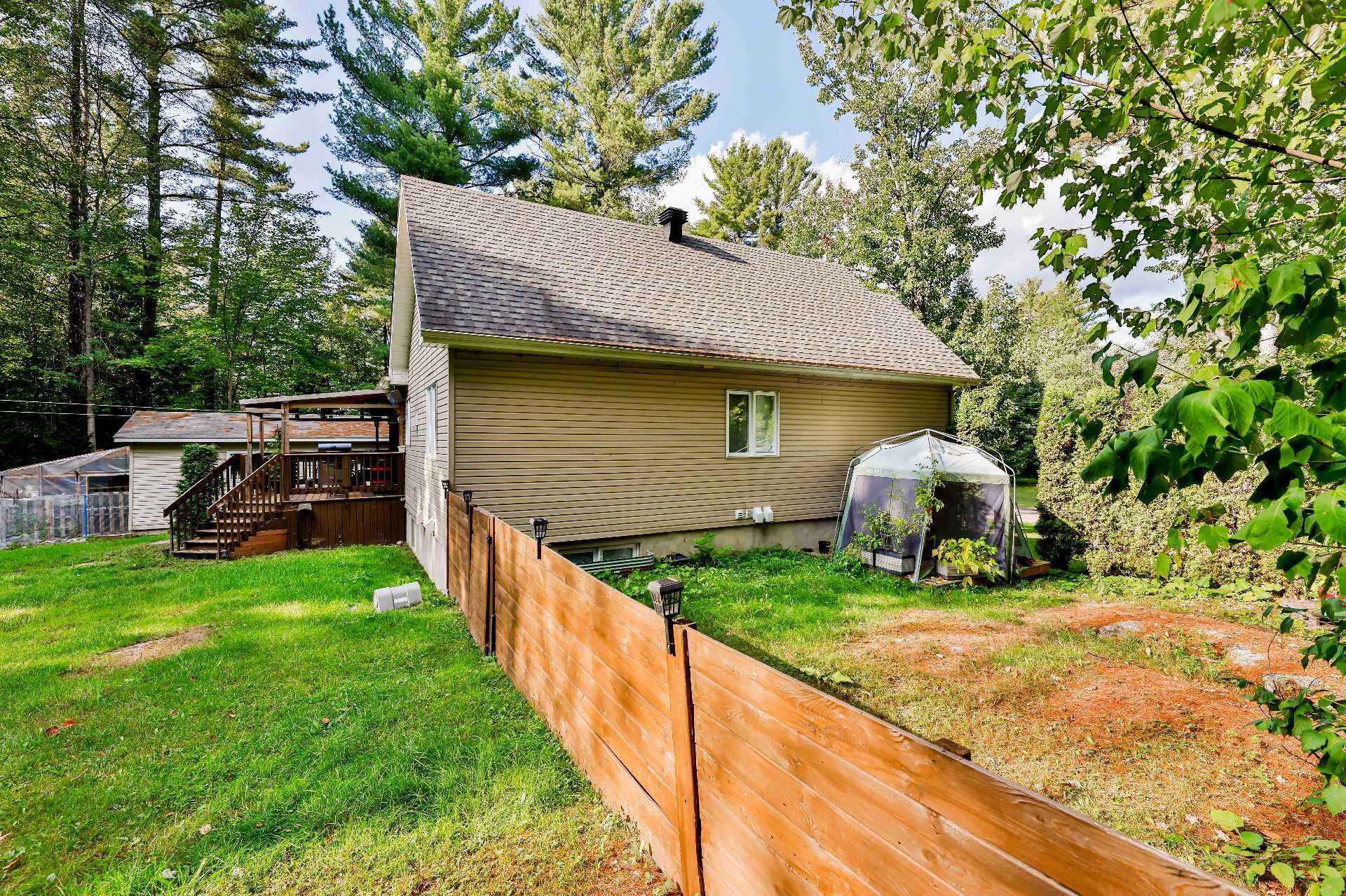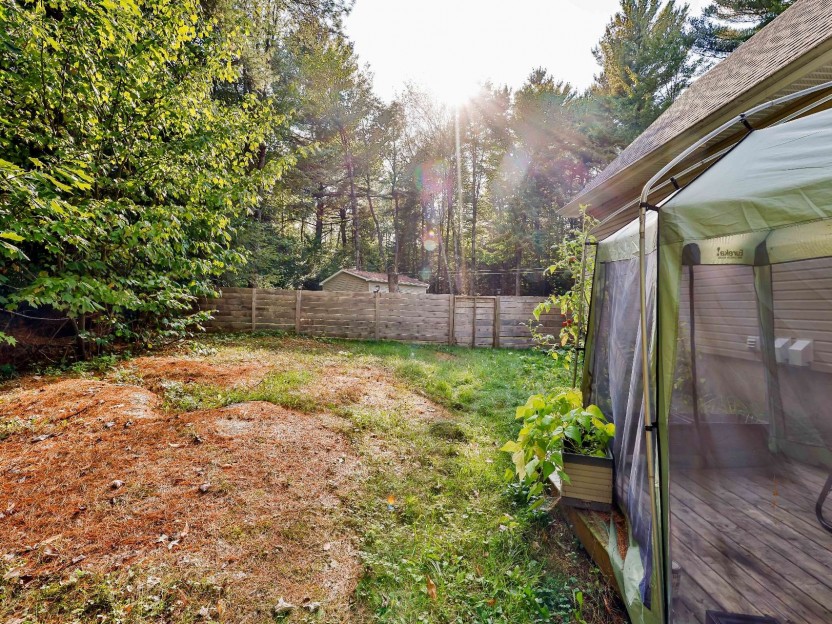 Biens des locataires. La clôture de bois artisanale en bois appartient au locataire du 353 de même que l'abri sur la terrasse arrière en la serre pour légumes derrière le garage.