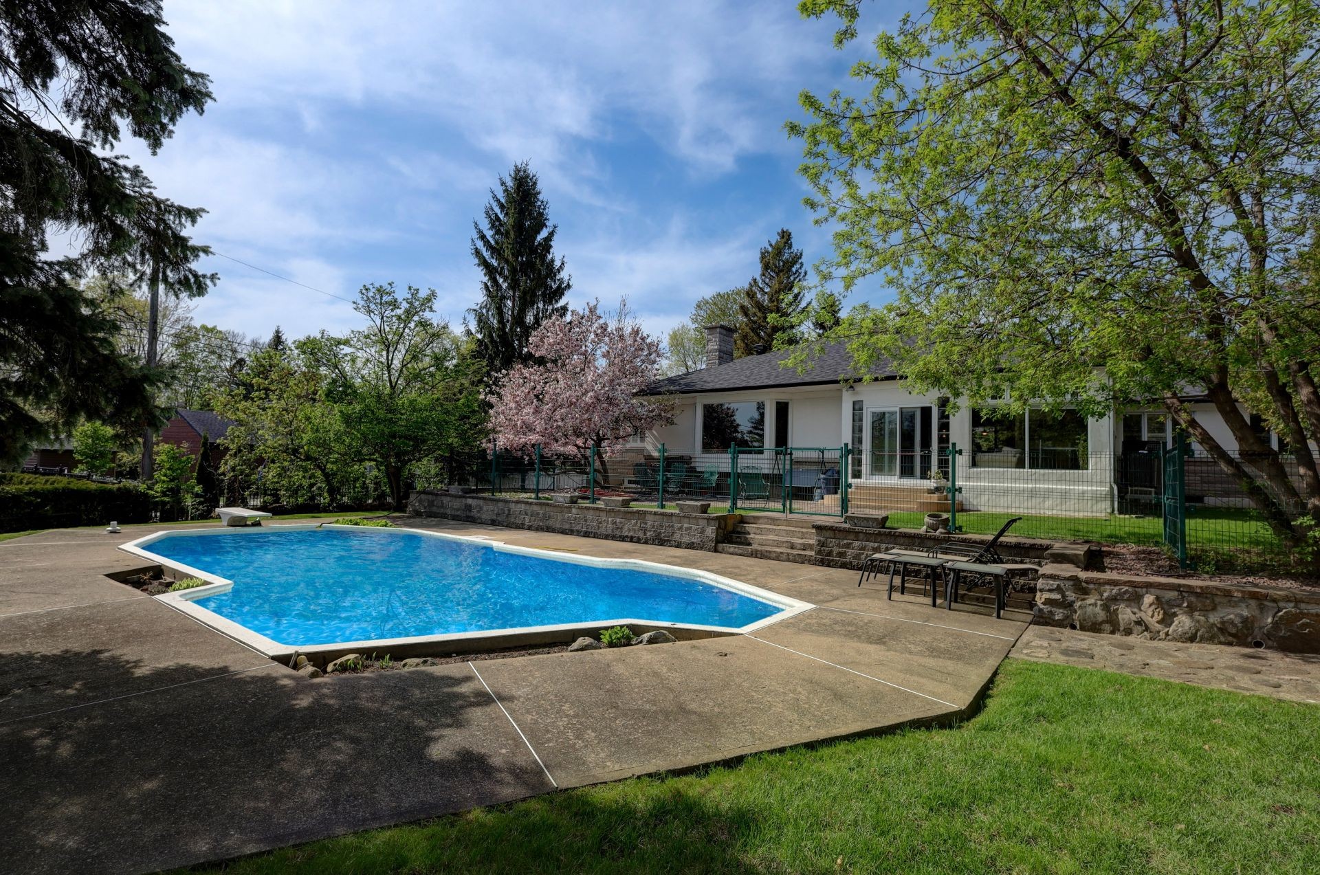 Ce remarquable bungalow de style ranch, en retrait de la rue, offre à la fois intimité et espaces généreux sur un terrain de plus de 29 000 pieds carrés, orienté sud, avec piscine creusée et garage détaché pour trois voitures.