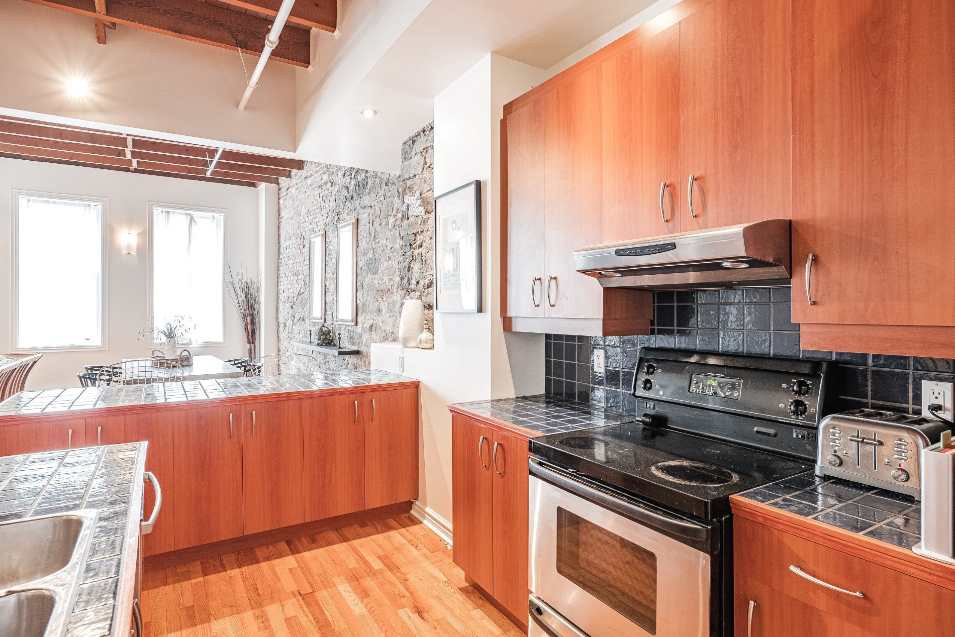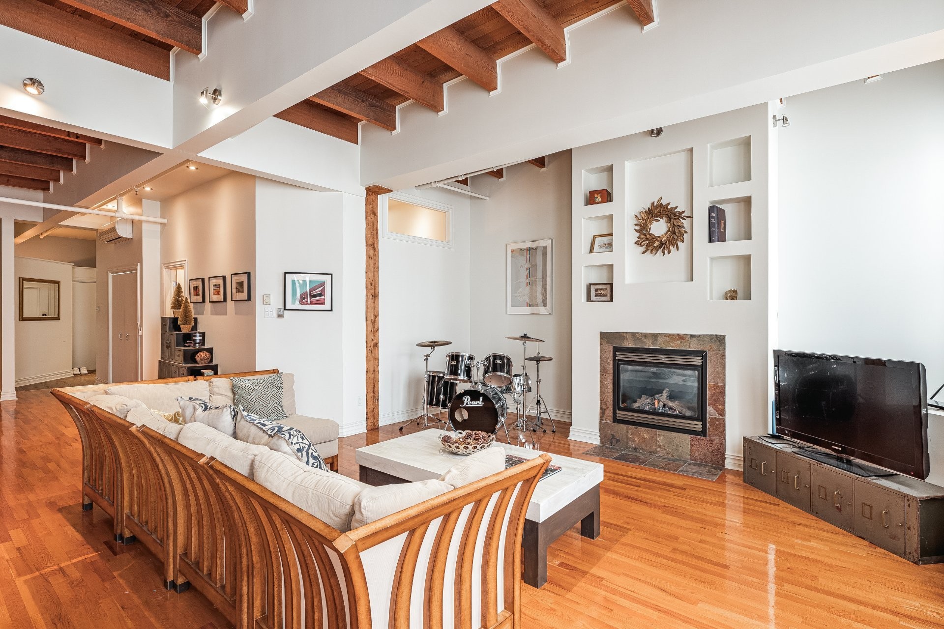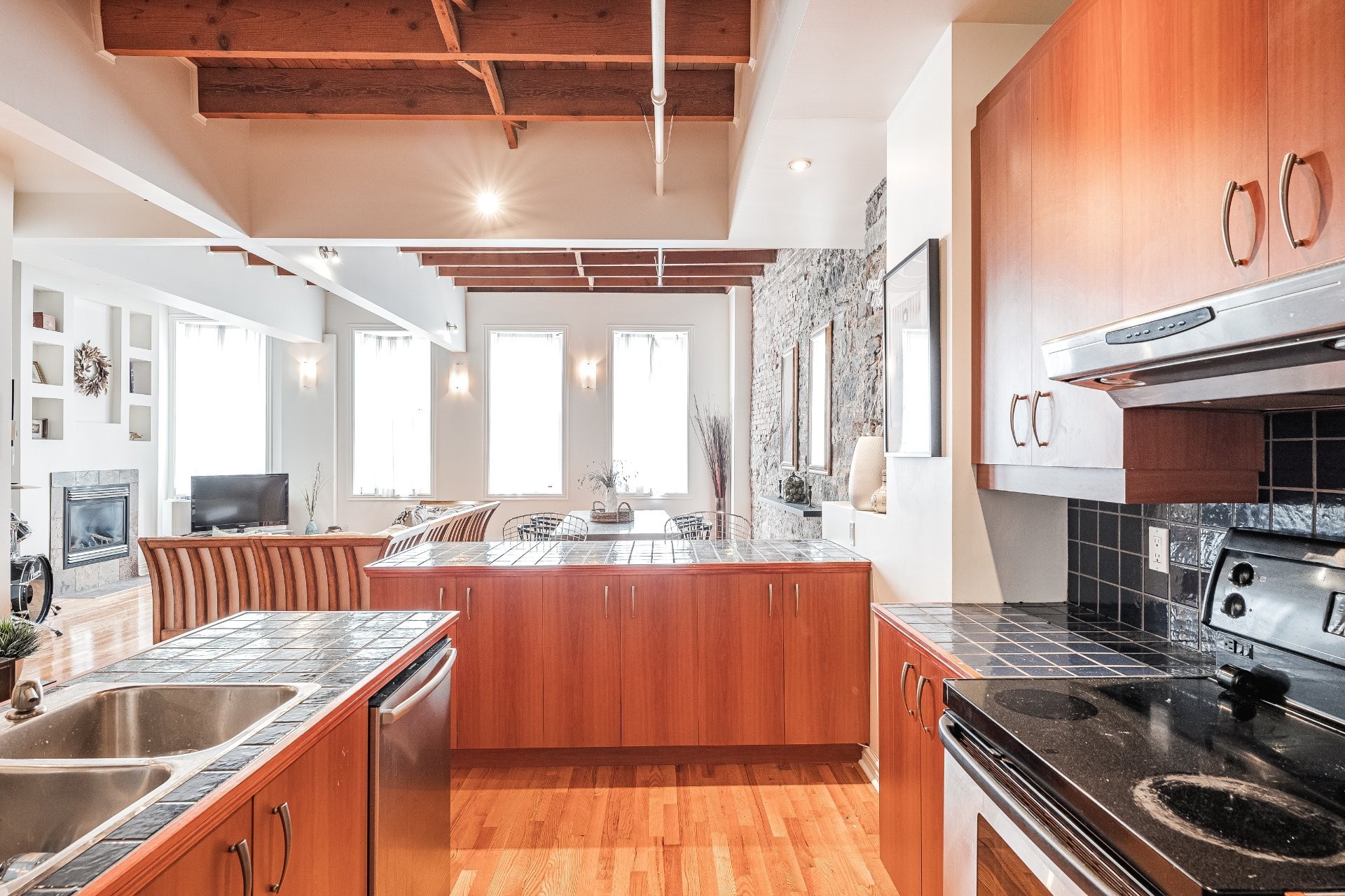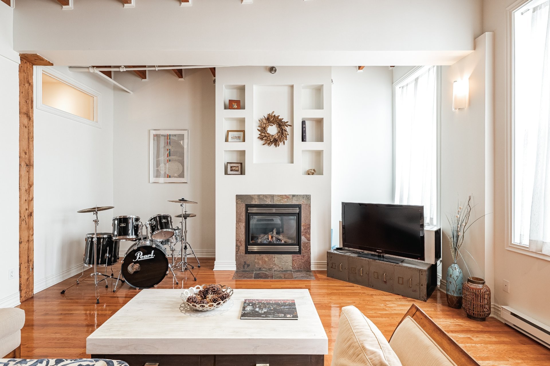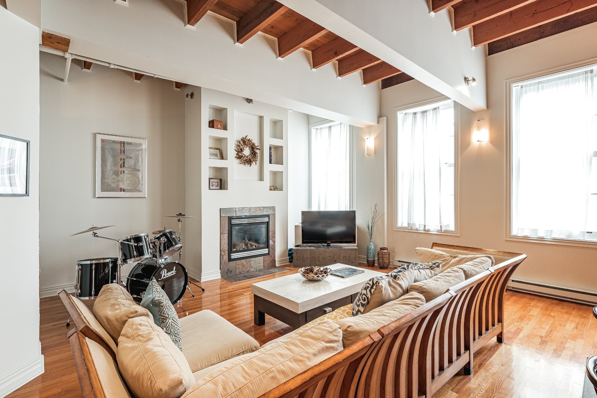 Situé sur l'une des rues les plus emblématiques et convoitées du Vieux-Montréal, ce superbe loft au dernier étage d'un immeuble historique en pierre de 1870 est un véritable bijou. Inondé de lumière naturelle grâce à une magnifique enfilade de fenêtres françaises donnant sur le célèbre Olive & Gourmando, cet espace à aire ouverte marie parfaitement le charme d'époque et le confort moderne. Plafonds de 14 pieds, poutres de bois apparentes, mur de pierre, planchers de bois franc et foyer au gaz créent une atmosphère chaleureuse et élégante. Le salon spacieux s'ouvre sur une salle à manger accueillante et une cuisine bien pensée avec deux îlots -- idéale pour recevoir ou profiter du quotidien.