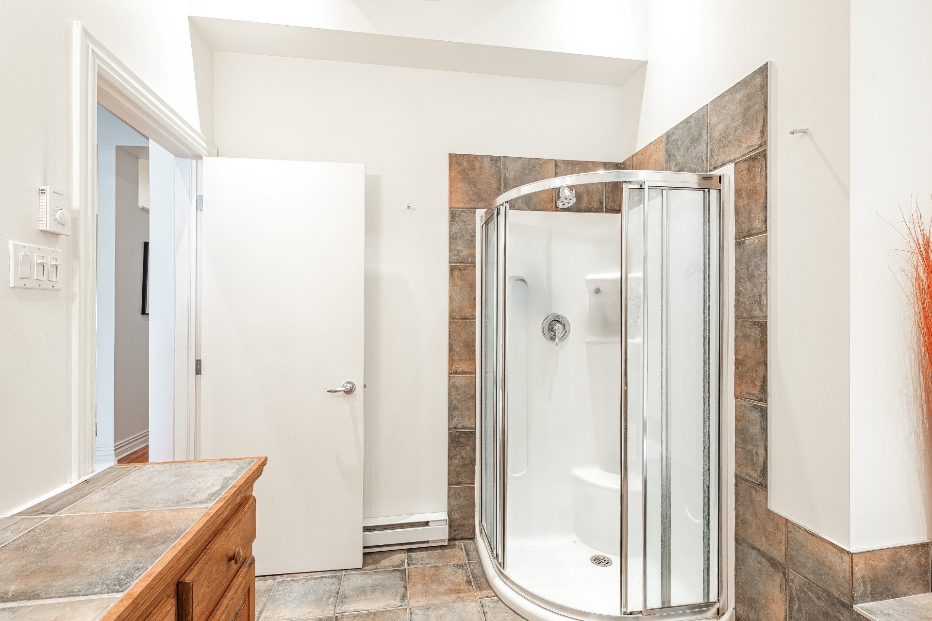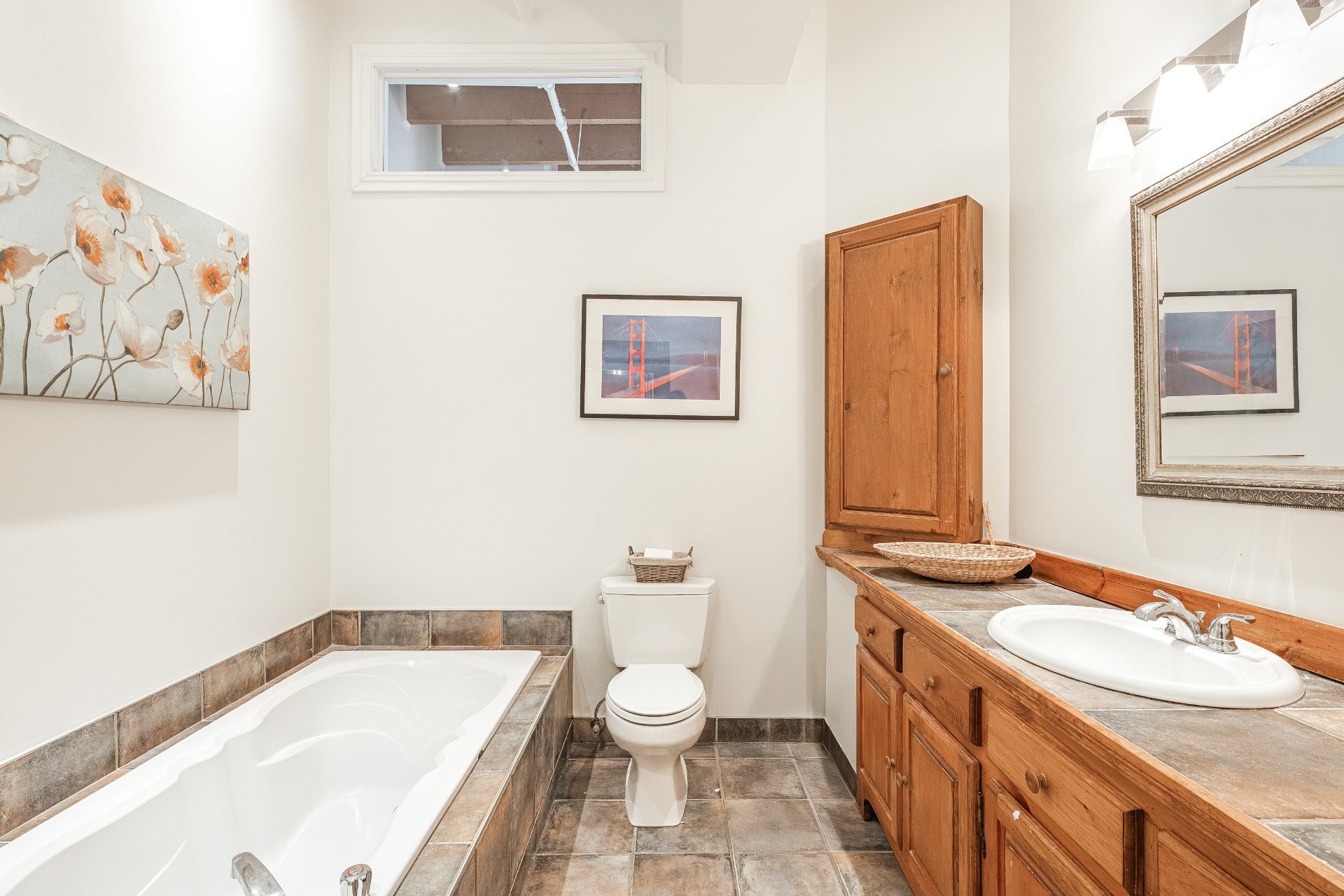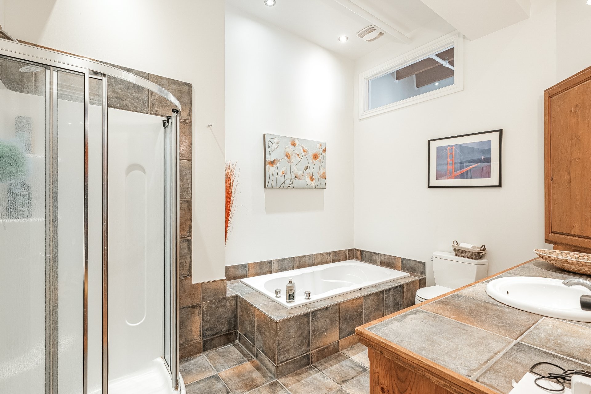La salle de bain, vaste et raffinée, offre une baignoire autoportante, une douche séparée et une belle vanité. Un grand rangement privé complète l'unité. Stationnement mensuel disponible à proximité.