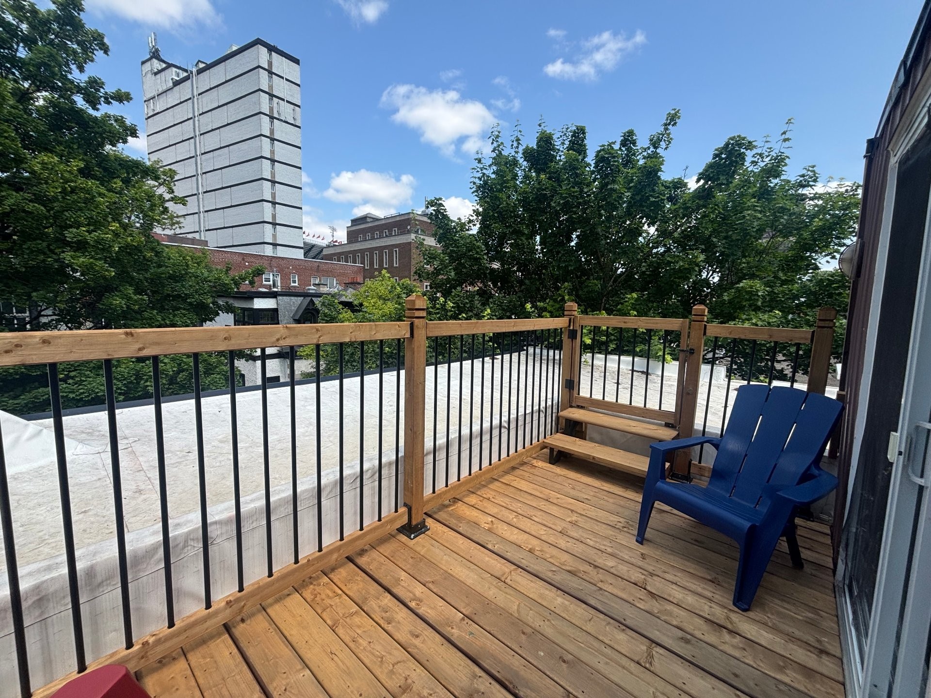 Emplacement de choix! À deux pas de McGill, St-Laurent, Mont-Royal et de tous les essentiels--restaurants, boutiques, transport, parcs et bien plus! Ce condo lumineux sur une rue paisible offre murs de brique, poutres apparentes, foyer, cuisine et salle de bain modernes, ainsi qu'une terrasse privée sur le toit! Disposition sur deux etages avec une deuxième chambre à l'étage pour plus d'intimité. Profitez du meilleur du Plateau avec un charme et une commodité incomparables!