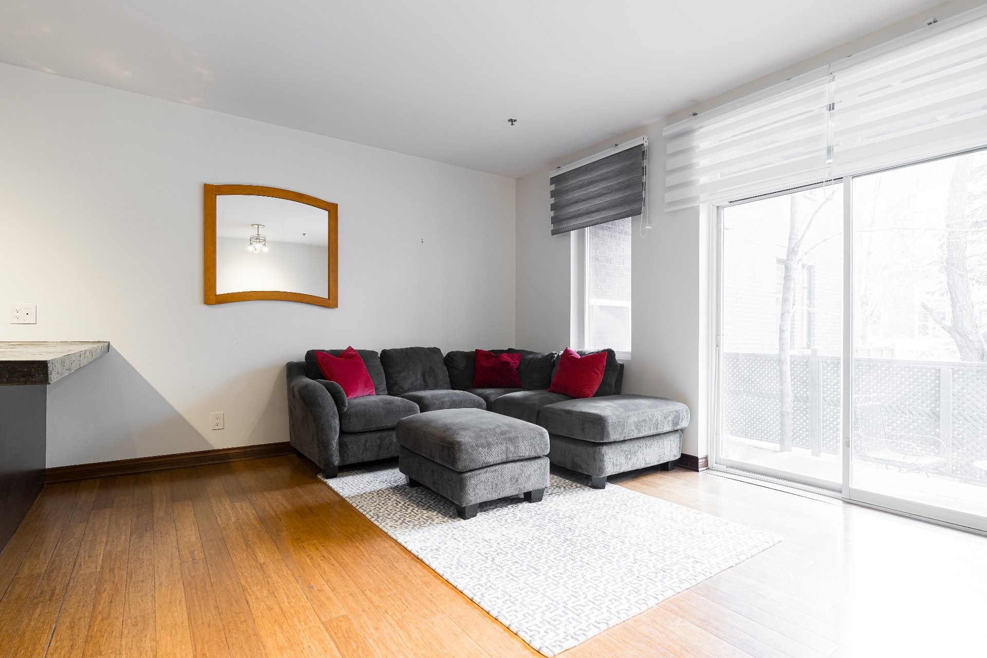 Des grandes portes-patio donnent accès à votre vaste terrasse privée, idéale pour se détendre, recevoir ou profiter de votre propre havre de paix en plein air.