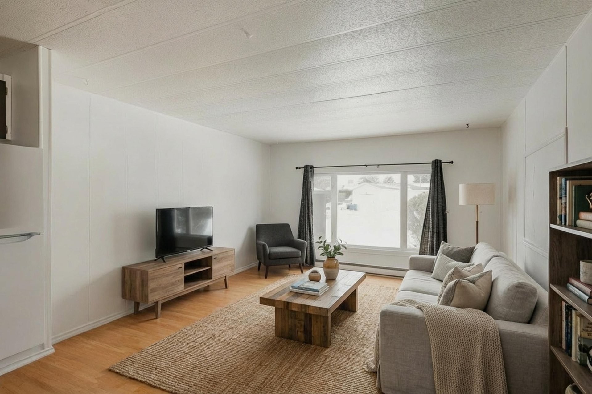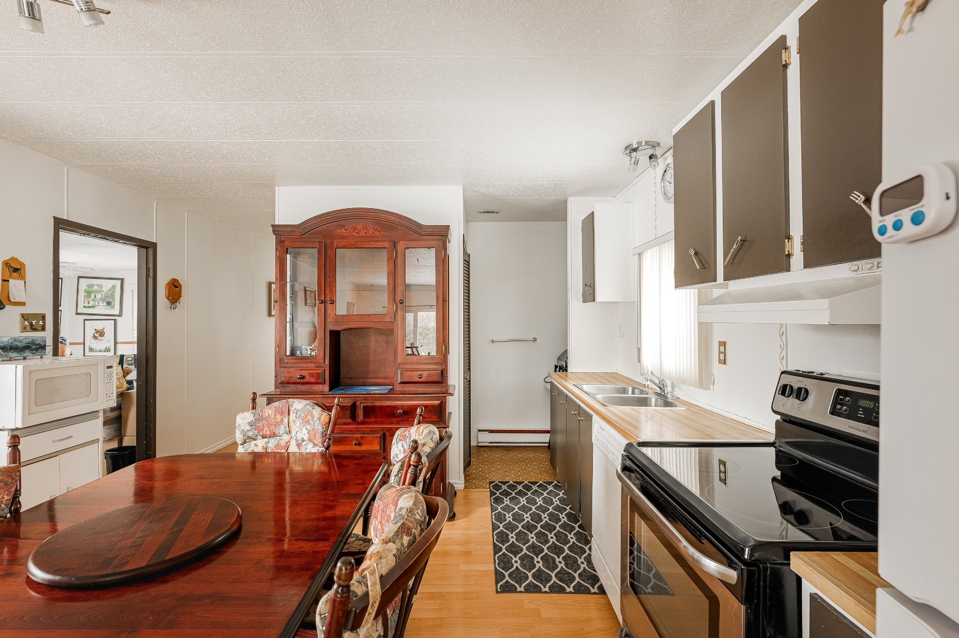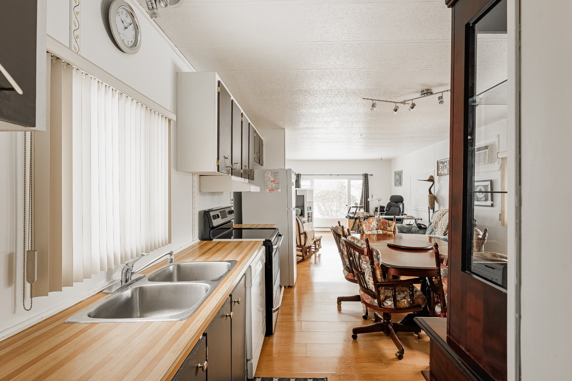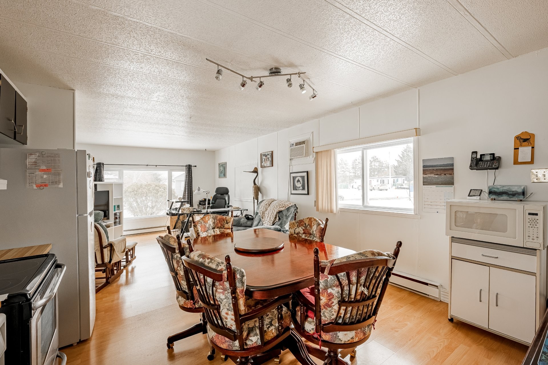 Maison mobile bien entretenue située sur une rue paisible et tranquille, offrant confort, intimité et l'avantage d'être implantée sur un terrain dont vous êtes propriétaire. Cette propriété lumineuse dispose de grandes fenêtres qui laissent entrer une abondante lumière naturelle tout au long de la journée.