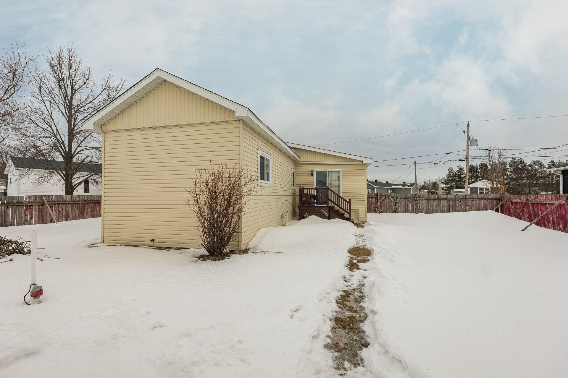 Avec ses trois chambres à coucher, elle offre un espace polyvalent idéal pour une famille, des invités ou un bureau à domicile. La cour arrière entièrement clôturée assure intimité et sécurité, parfaite pour les enfants ou les animaux. Une belle opportunité d'acquérir une propriété abordable avec terrain, dans un environnement calme.