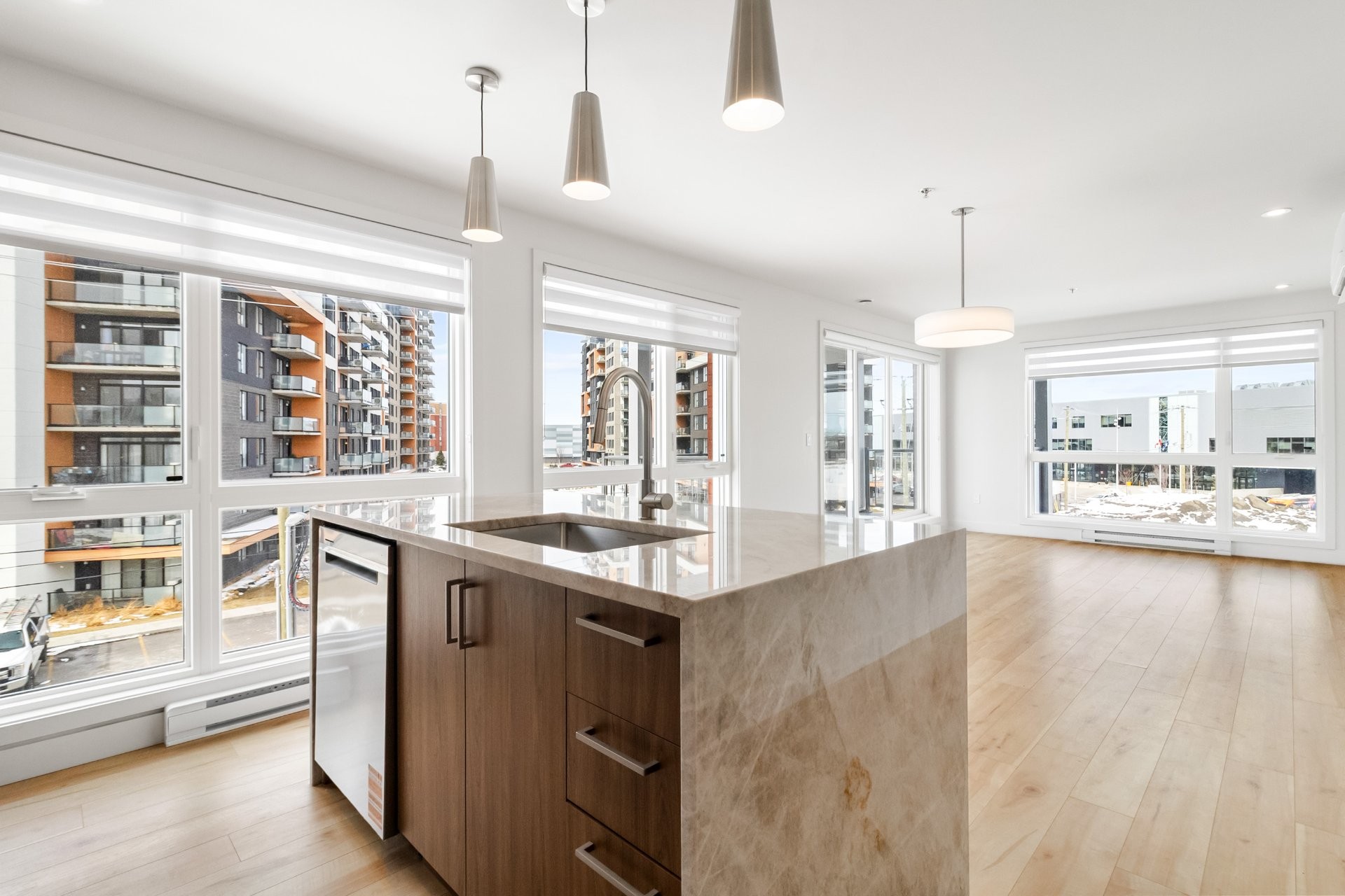 Découvrez cette toute nouvelle unité de 973 pi², exceptionnellement lumineuse et spacieuse, soigneusement conçue avec de grandes fenêtres qui inondent l'espace de lumière naturelle. Cette unité chic offre un concept ouvert, parfait pour la vie moderne.