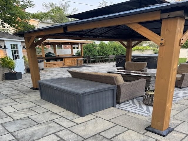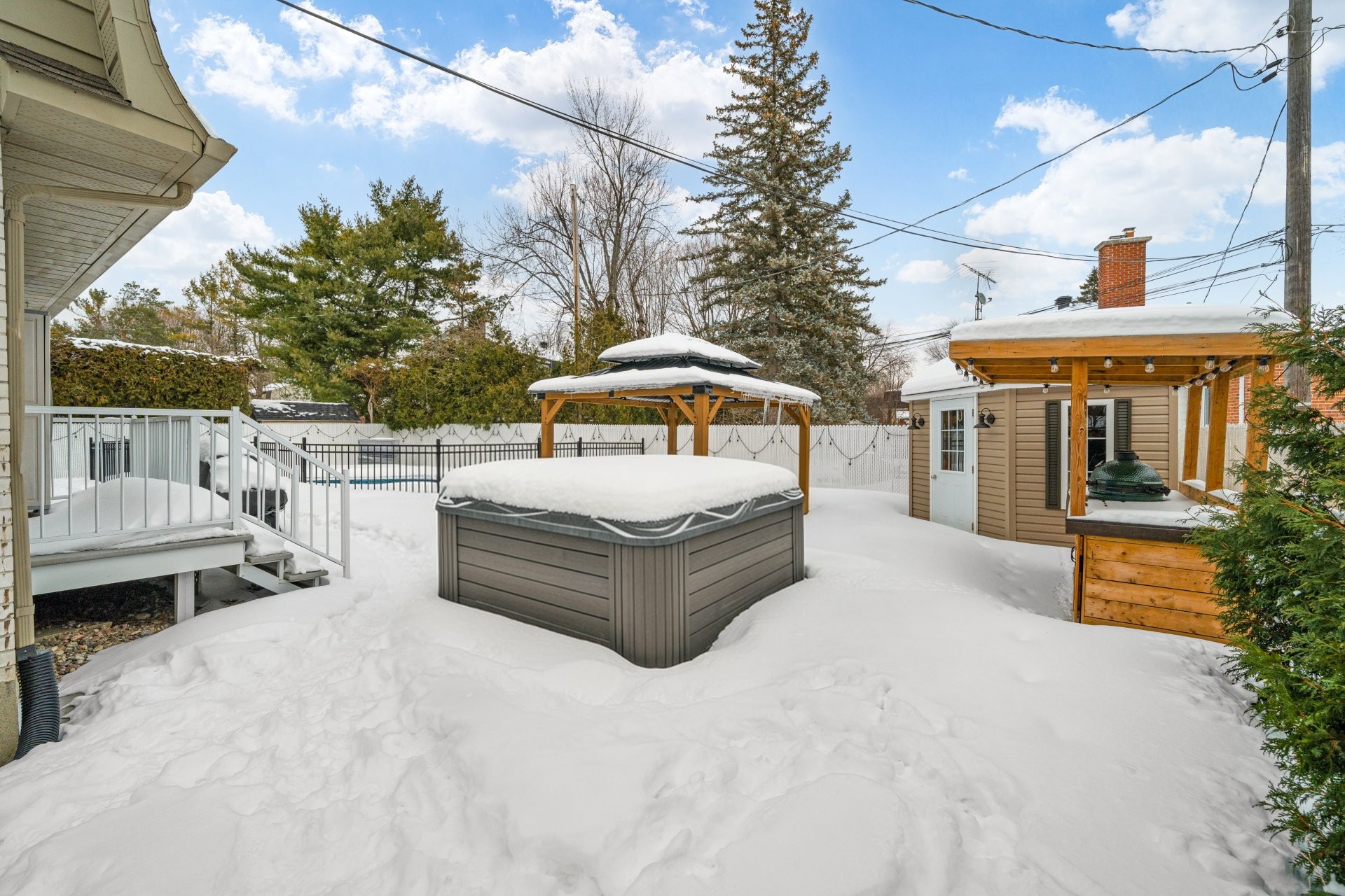 Gazebo (2025), spa, abris de jardin (2), chauffe-piscine et tous ses accessoires, abri barbecue, lave-vaisselle, tous les luminaires, stores enrouleurs, ouvre-portes de garage (2), système d'alarme, aspirateur central (2 tuyaux), crochets, étagère et rangement dans la salle de bain à l'étage, rangement pour le dressing de la chambre principale. Armoires murales de garage (4), rangements muraux et support de plafond.