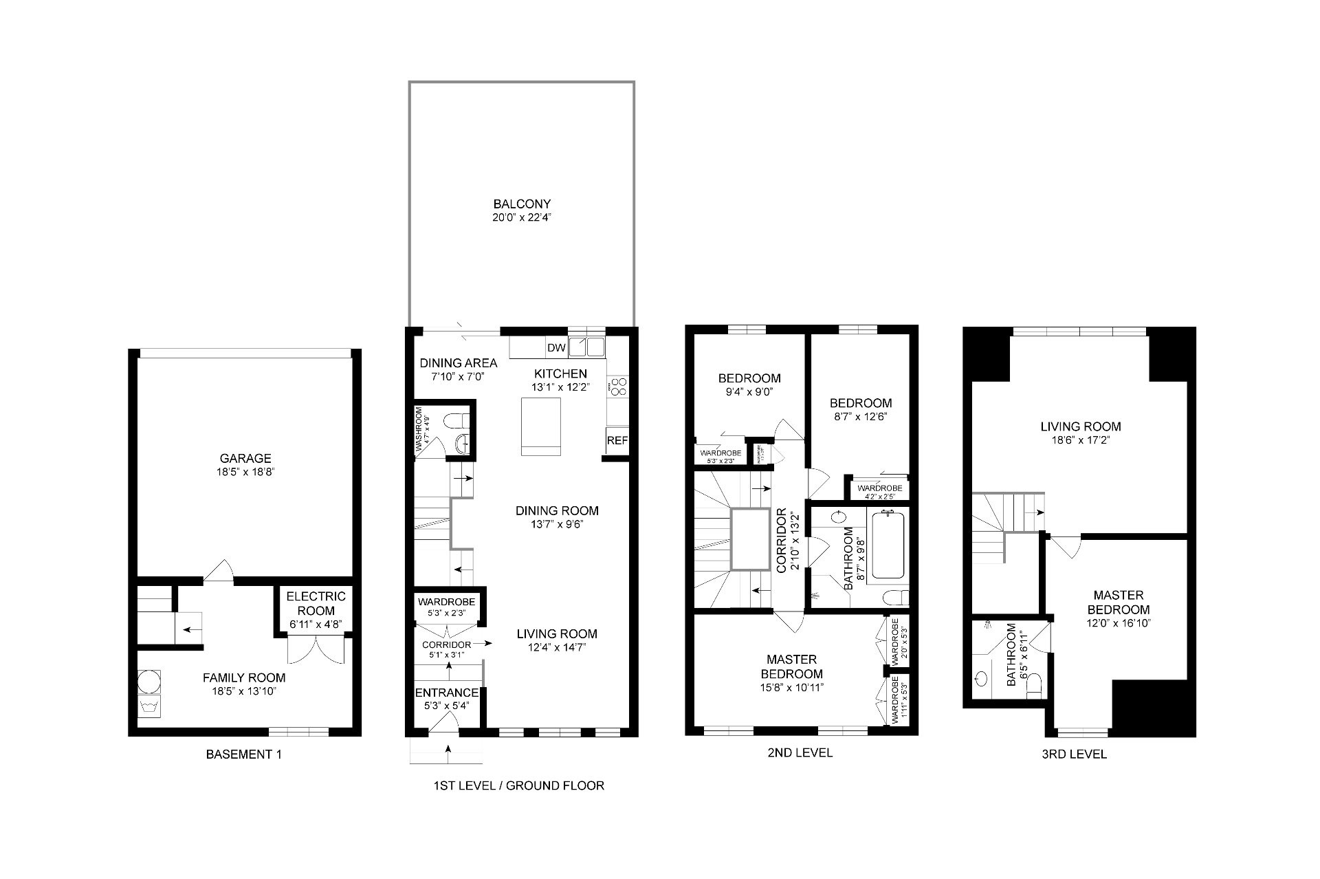 Magnifique maison de ville à Saint-Laurent! Plan d'étage spacieux offrant 4 chambres, 2 salles de bain, une salle d'eau, un sous-sol aménagé et un garage double. Rez-de-chaussée comprend un salon spacieux, une salle à manger attenante à une cuisine avec îlot central, de nombreux rangements et un accès direct à une grande terrasse arrière en bois. Superbes planchers de bois franc. Àu 3ieme étage, une magnifique suite principale avec mezzanine et salle de bain. Le 2ième étage comprend 3 chambres supplémentaires et une grande salle de bain avec baignoire et douche séparée. Idéalement situé à proximité des parcs, des services et des commodités.