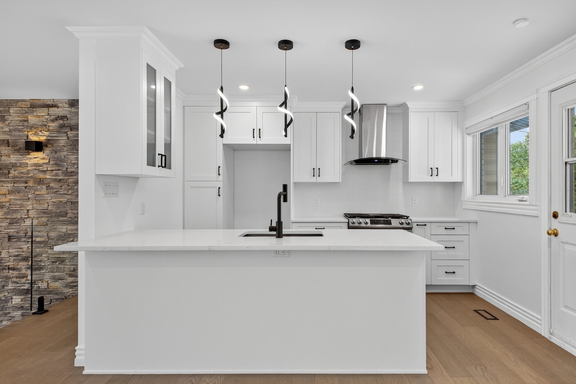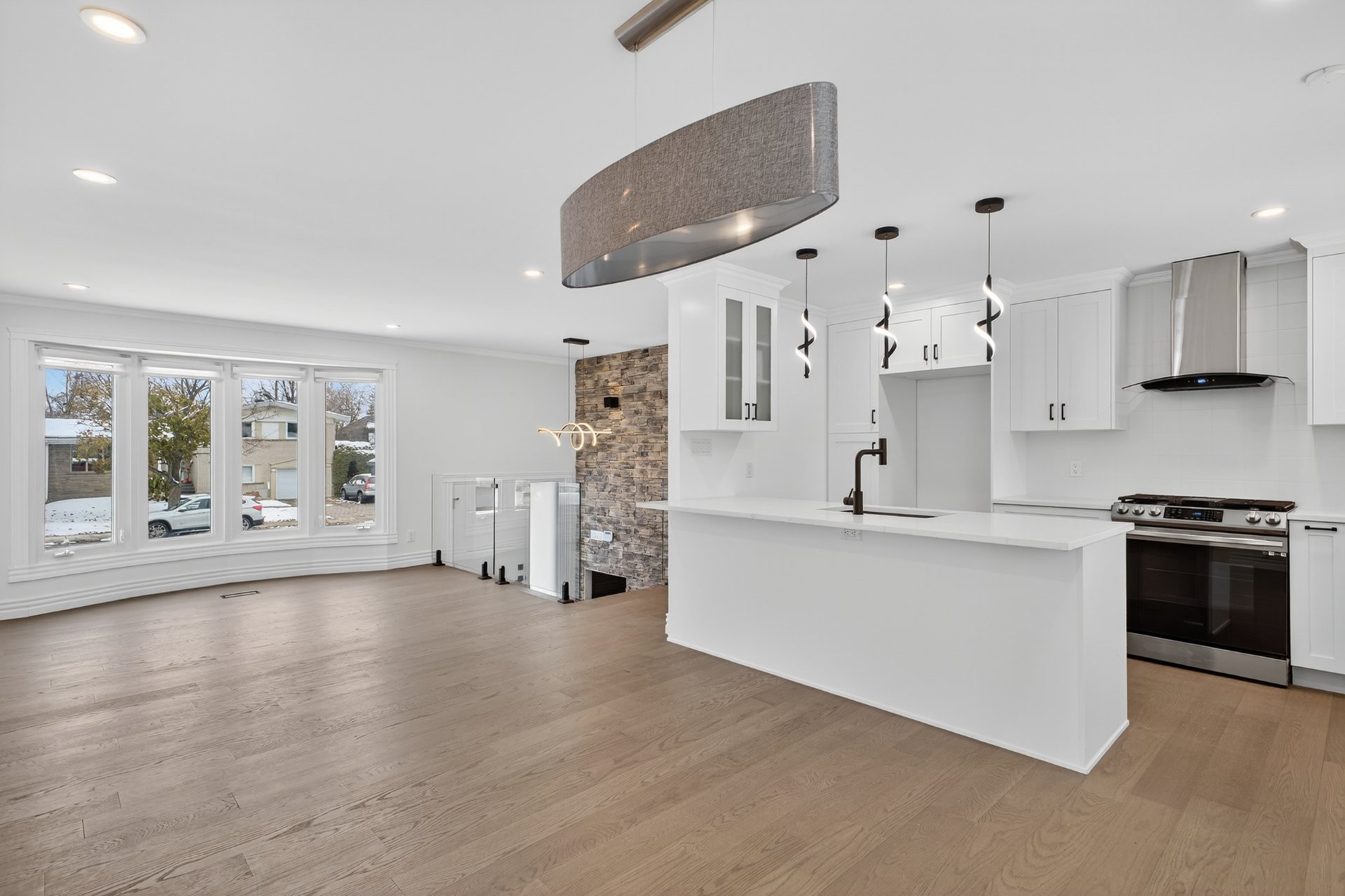 Résidence familiale de 4 chambres rénovée, située dans un secteur recherché de l'Ouest-de-l'Île. La propriété offre une disposition fonctionnelle avec des espaces de vie lumineux, des rénovations de qualité et un mur de pierre décoratif dans l'aire de vie principale. La circulation fluide entre les pièces convient à la vie quotidienne. Une grande terrasse et une cour arrière privée complètent l'ensemble. Emplacement pratique à proximité des écoles, parcs, commerces et axes routiers.