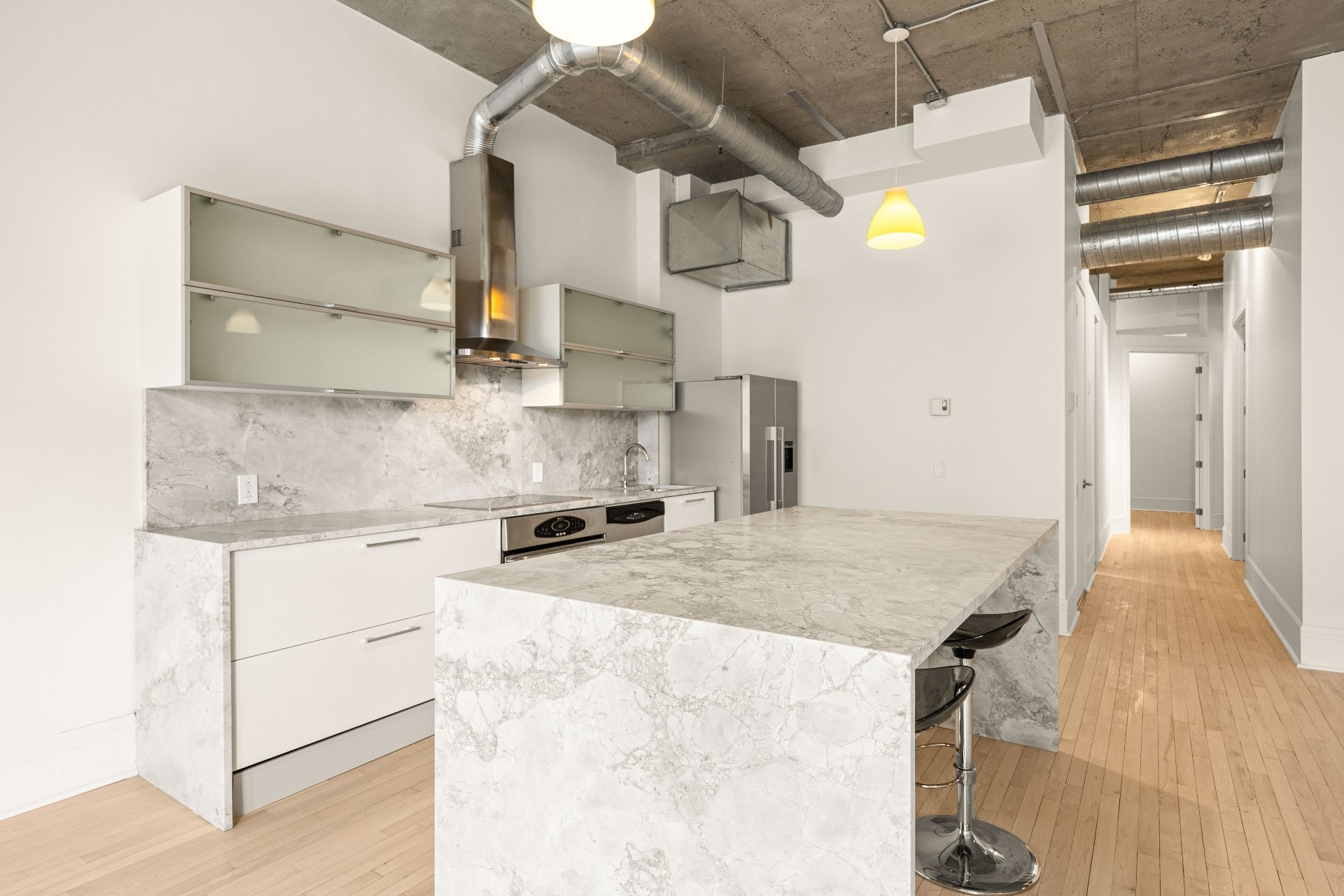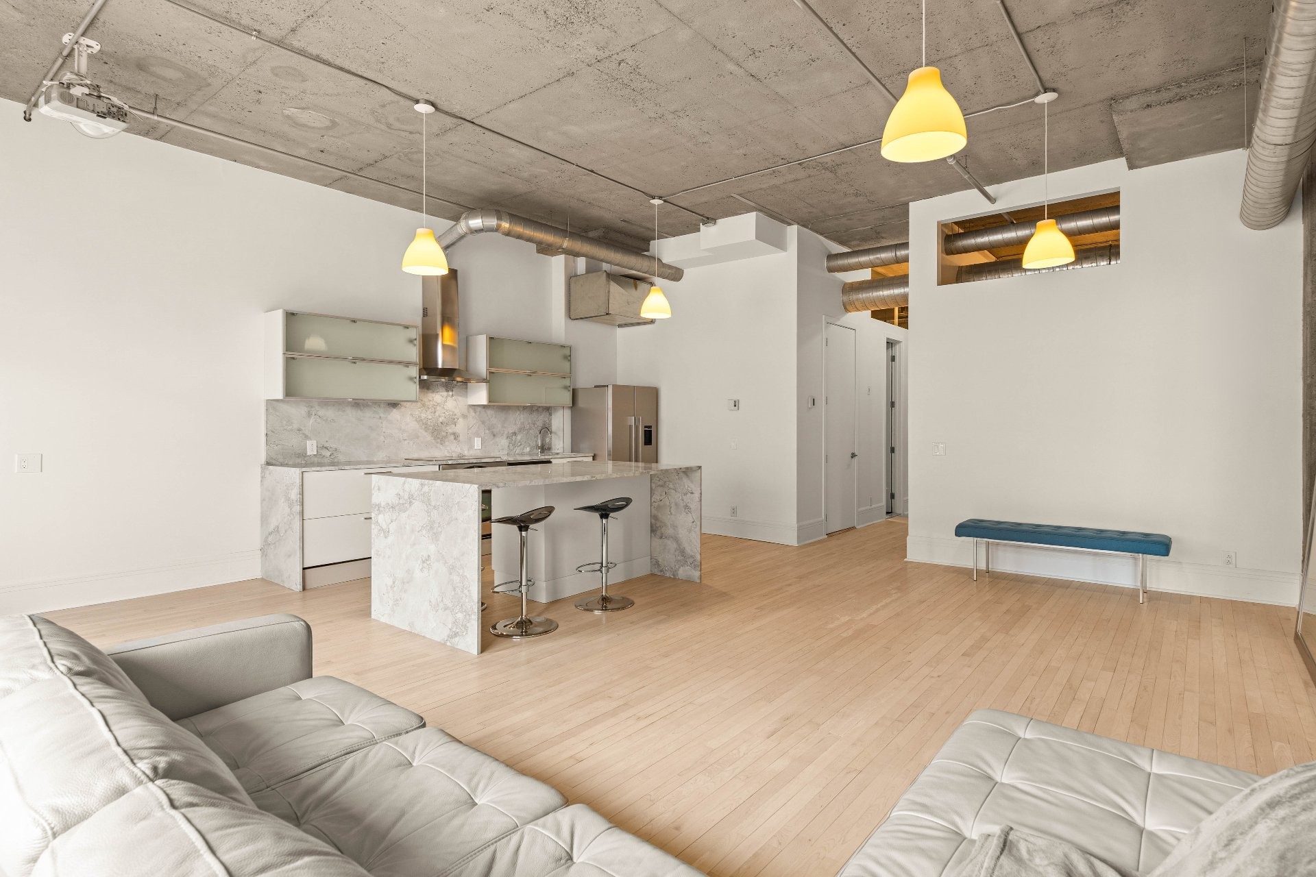 Condo moderne industriel dans le Plateau-Mont-Royal. 2 chambres fermées | 2 salles de bain | 1 Stationnement | Vue imprenable. Condo lumineux fraîchement rénové avec fenestration pleine hauteur et vue spectaculaire. Planchers de bois, balcon privé, salle de bain luxueuse et cuisine idéale pour les passionnés de gastronomie. Stationnement et rangement inclus. Terrasse sur le toit et communauté créative dynamique. À quelques pas des parcs, de la rue St-Laurent, Mont-Royal et bien plus.