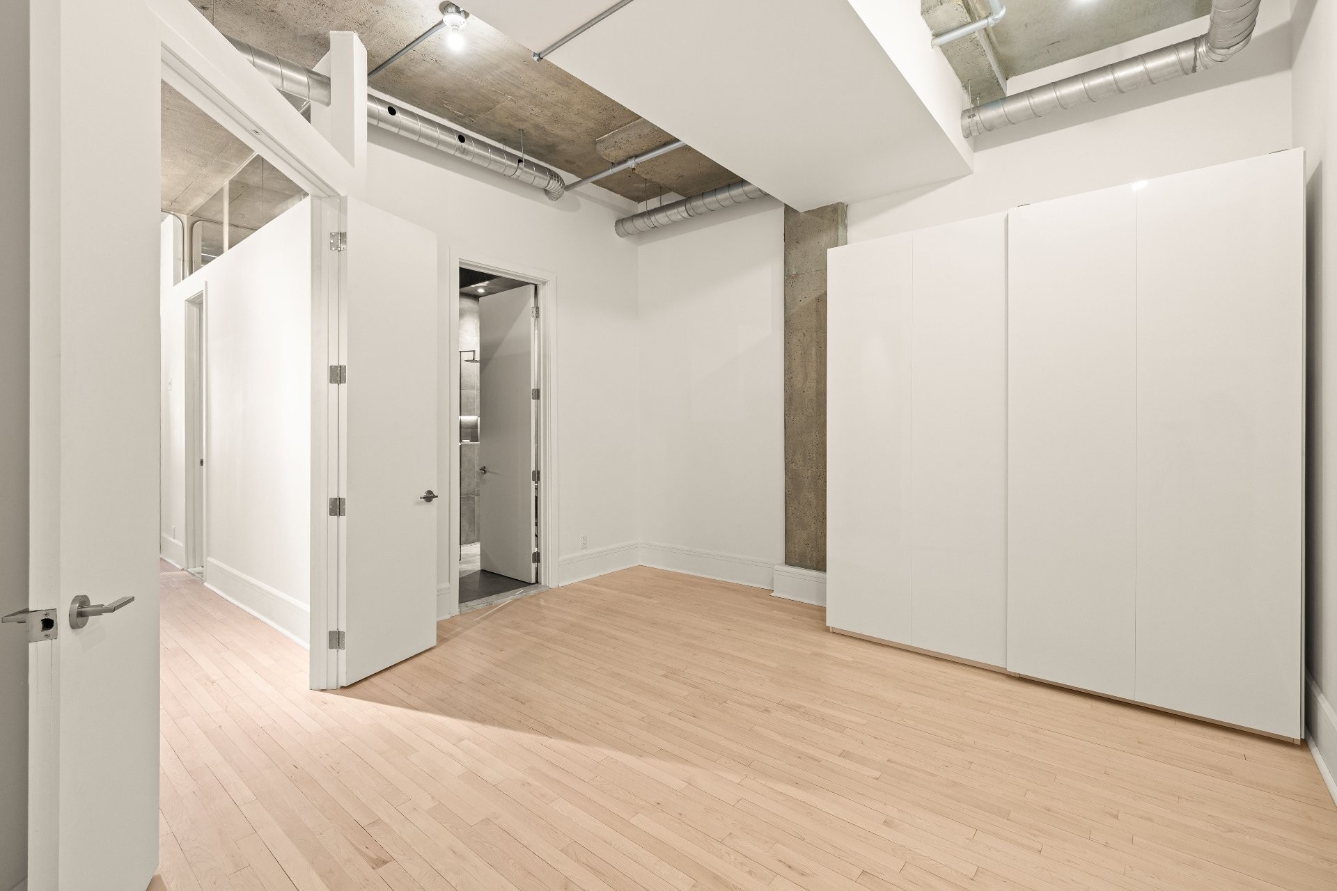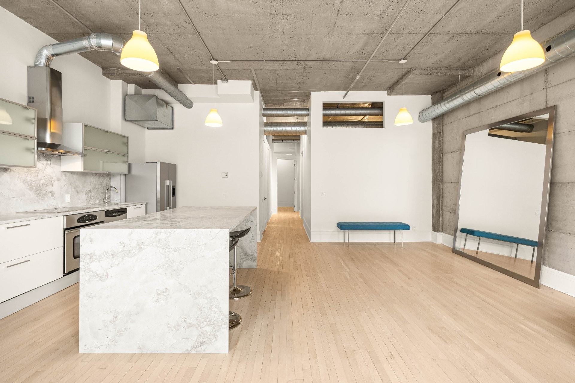 L'unité fraîchement rénovée offre une disposition d'aménagement flexible de l'espace.