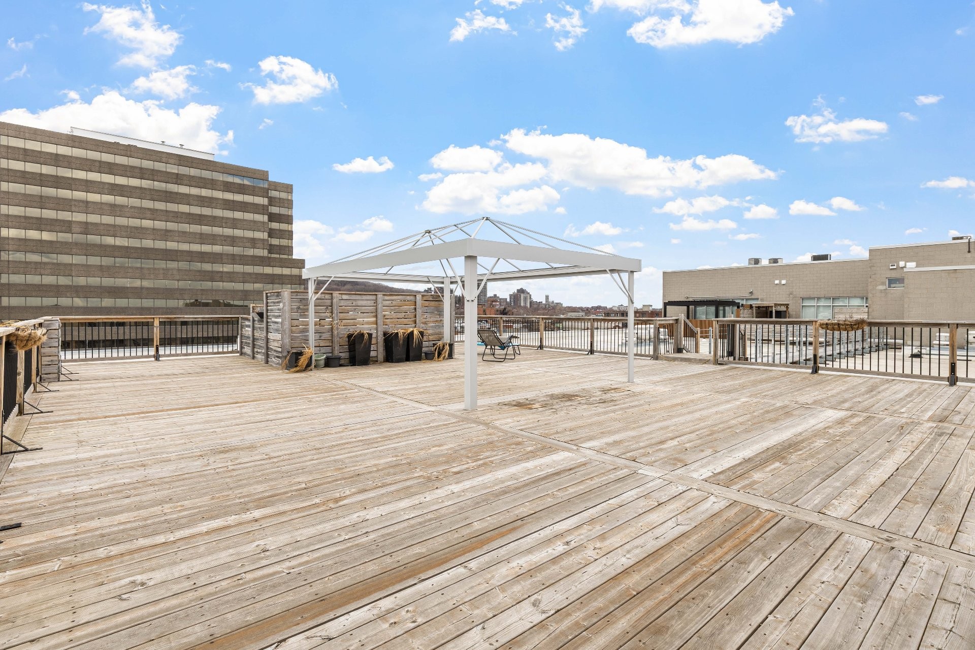 * Terrasse commune sur le toit avec BBQ et espace lounge -- probablement la plus belle vue de l'immeuble