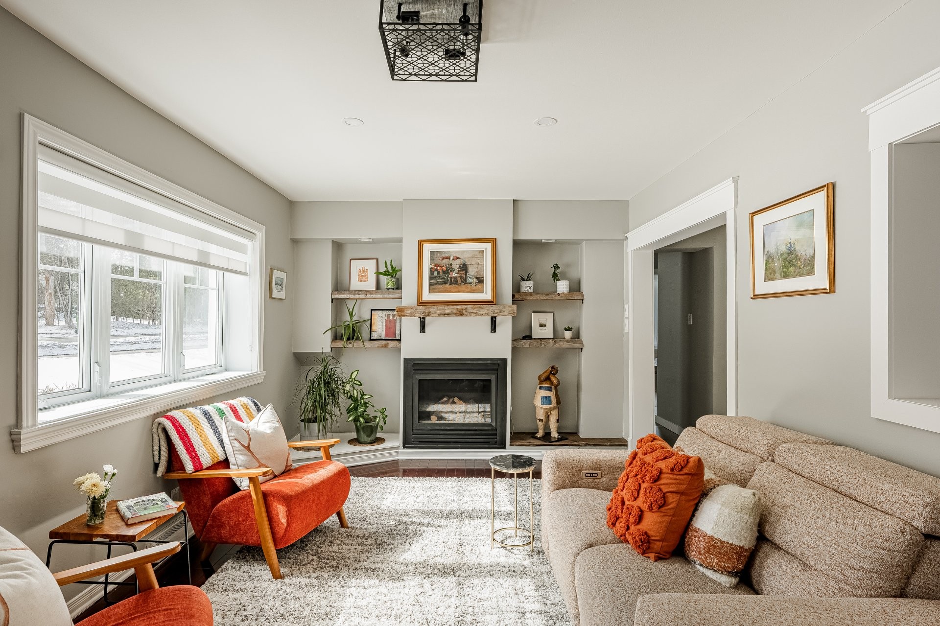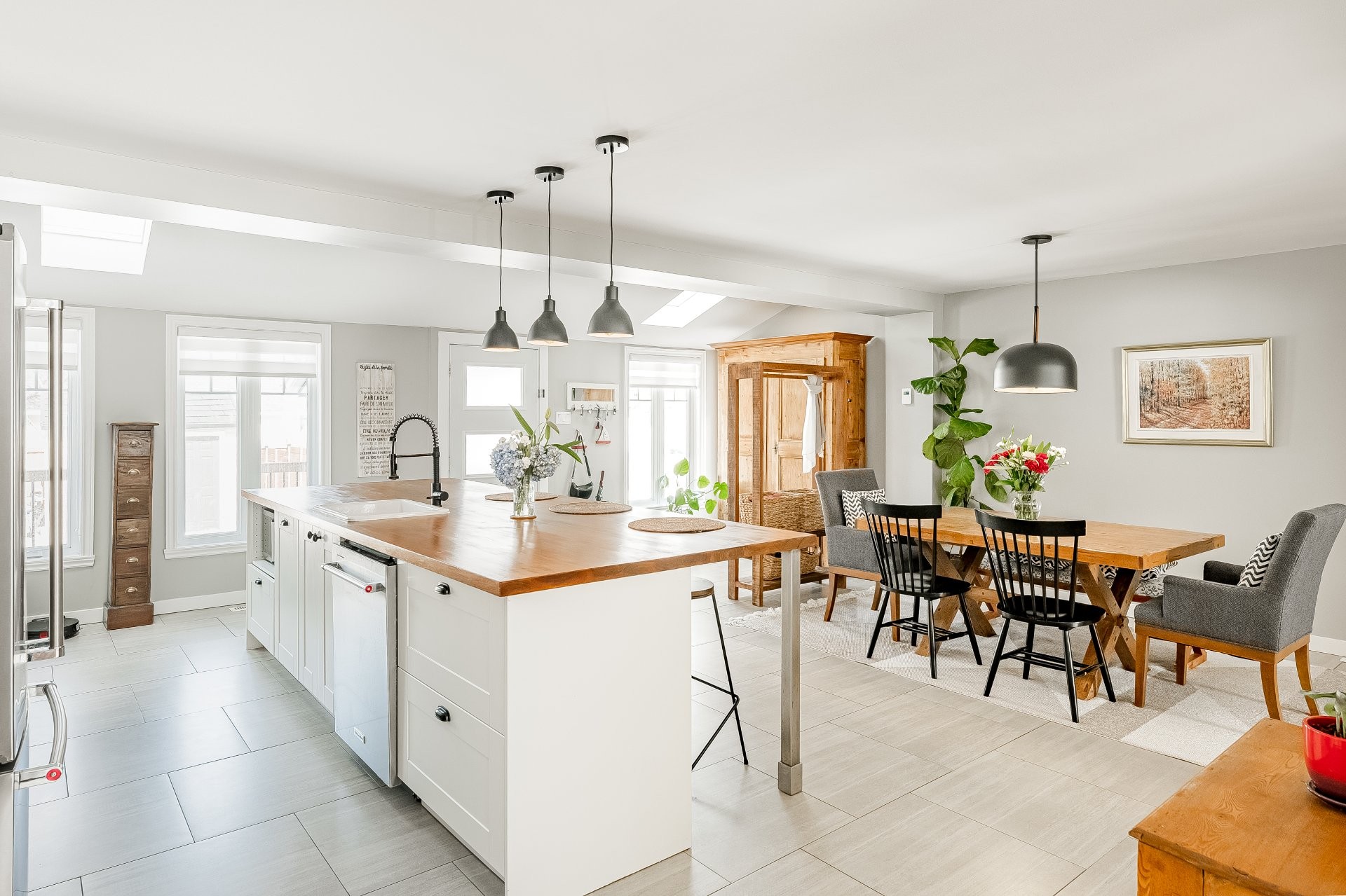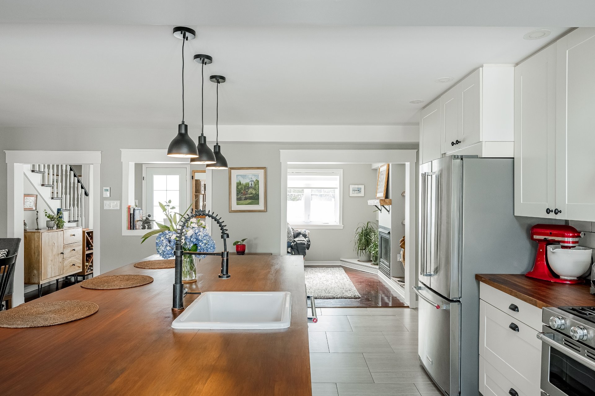 Emplacement de choix au coeur du village ! Superbe maison rénovée de 4 chambres à coucher et 2 salles de bain, avec garage et aire ouverte spacieuse. Cuisine magnifique avec grand îlot, ouverte sur une salle familiale lumineuse avec plafonds cathédrale et foyer au gaz chaleureux. Chambre principale au rez-de-chaussée avec salle de bain attenante. À l'étage : deuxième salle familiale, autre chambre principale, deux chambres supplémentaires et une salle de bain rénovée. Cour aménagée avec très grande terrasse, idéale pour recevoir. À voir absolument !