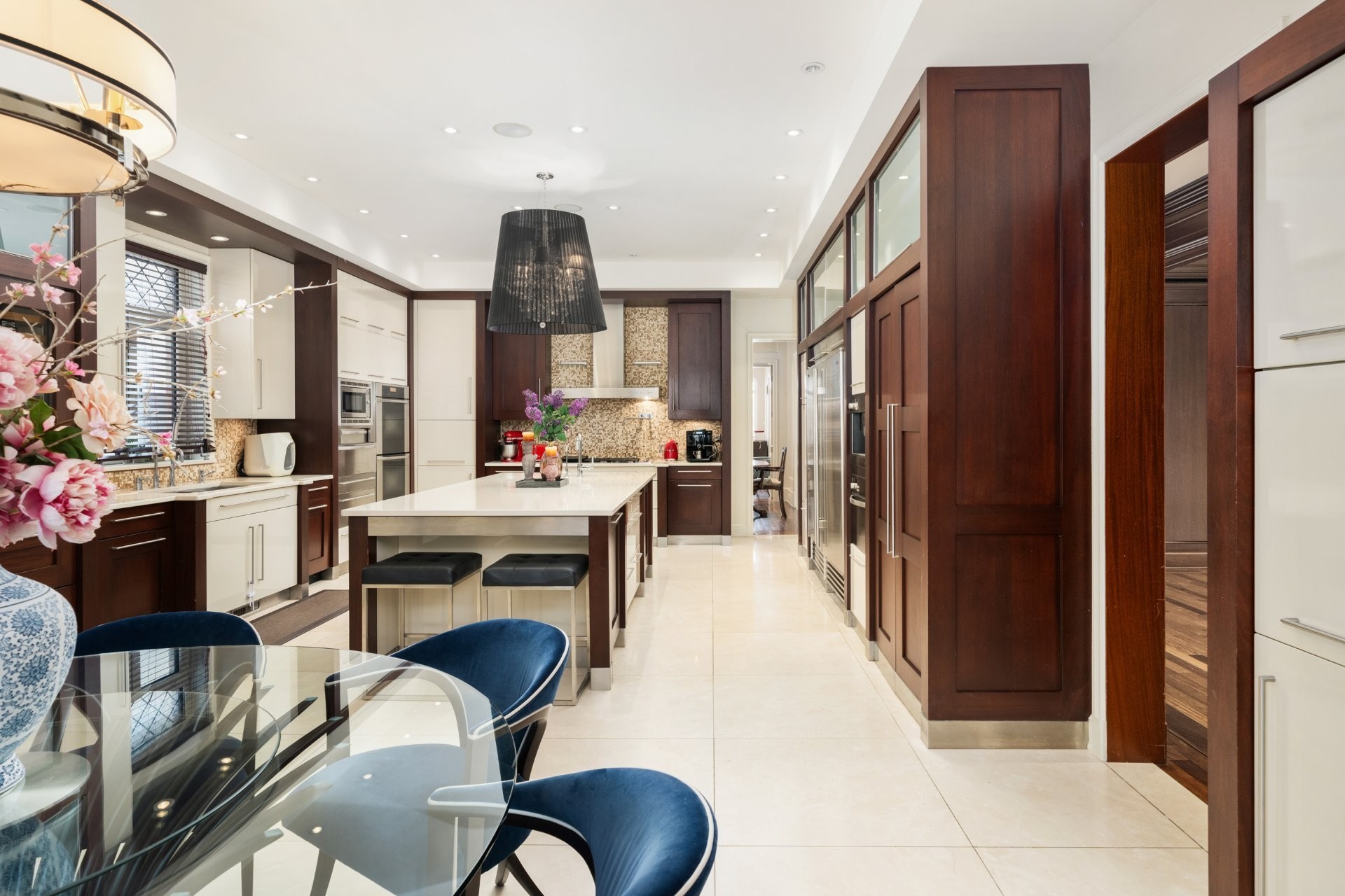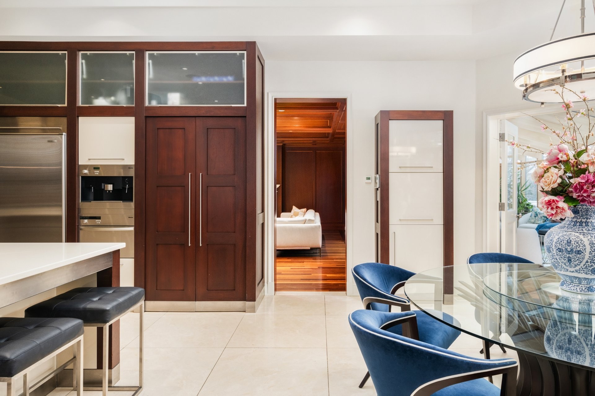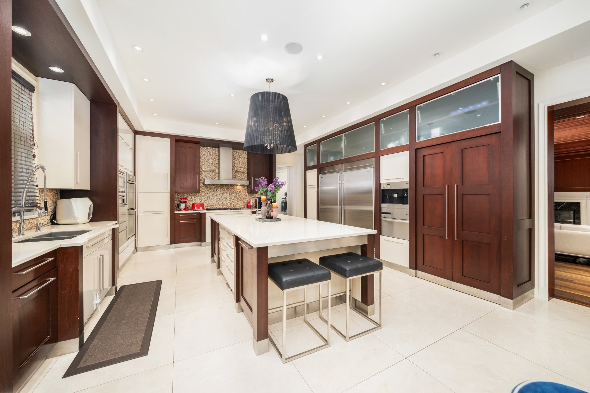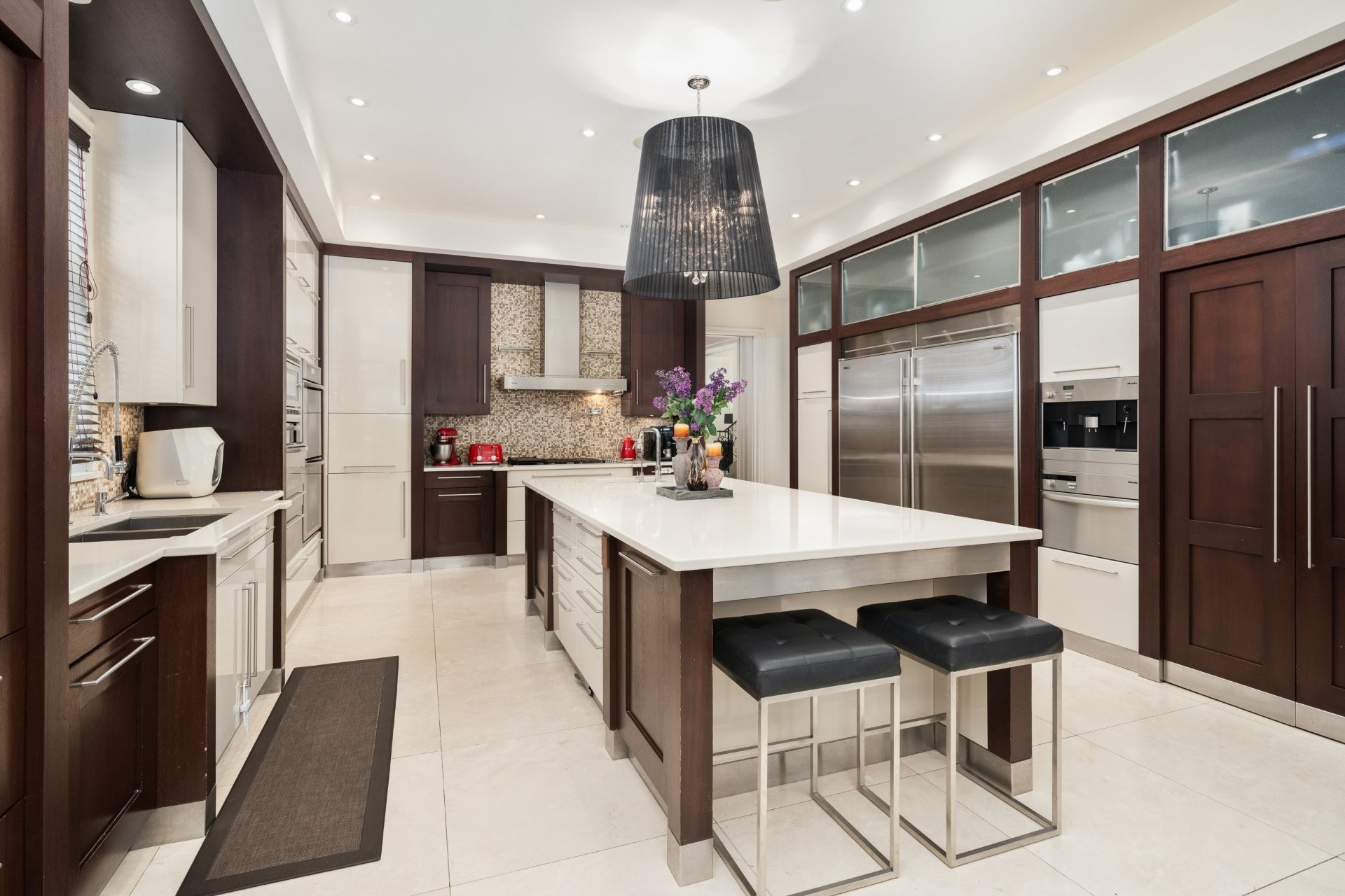 -Tiroir vapeur Miele, chauffe-assiettes, lave-vaisselle et machine à café. Réfrigérateur double porte Sub-Zero. Cuisinière à six feux Miele avec hotte professionnelle et robinet mural. Nombreux rangements sur mesure et espace bureau dissimulé.