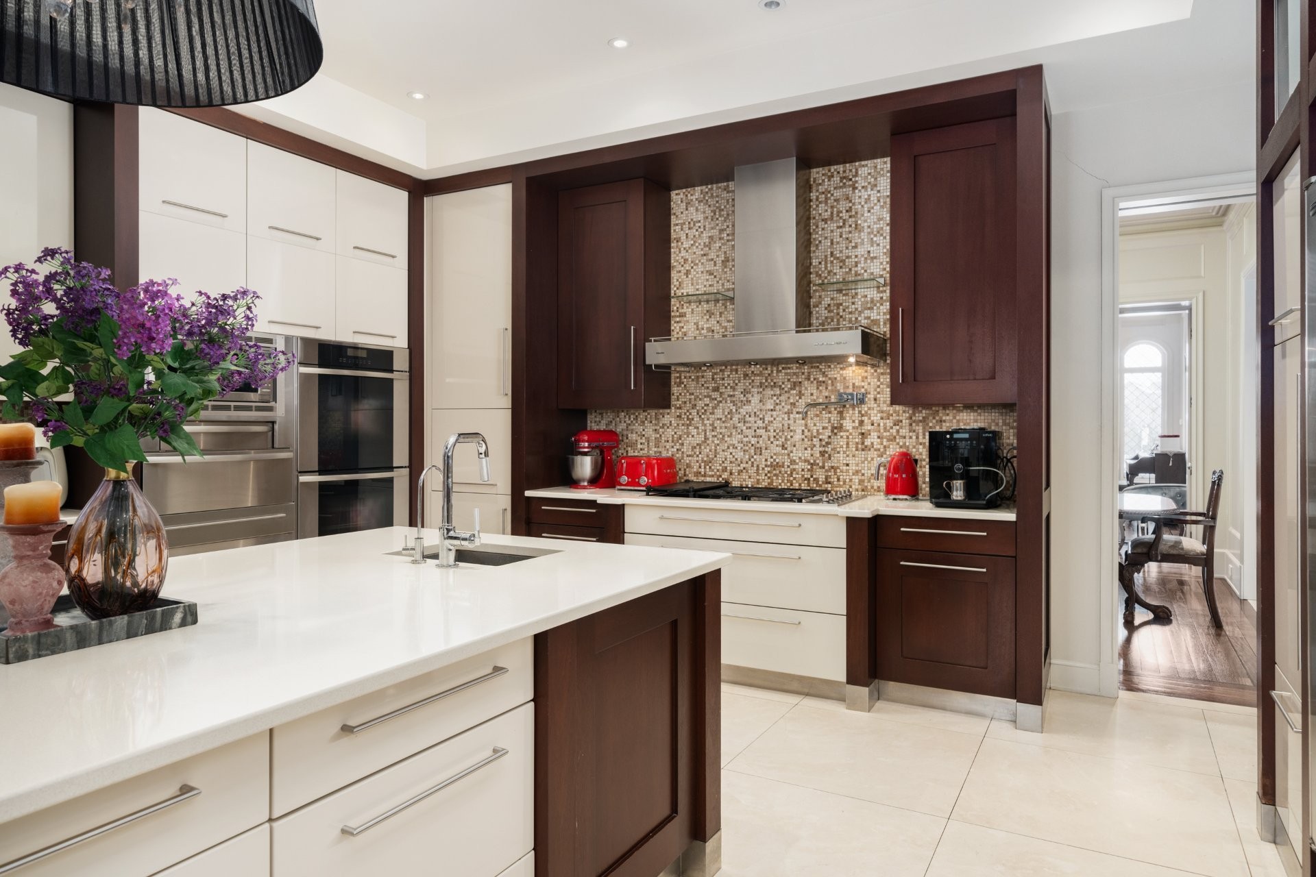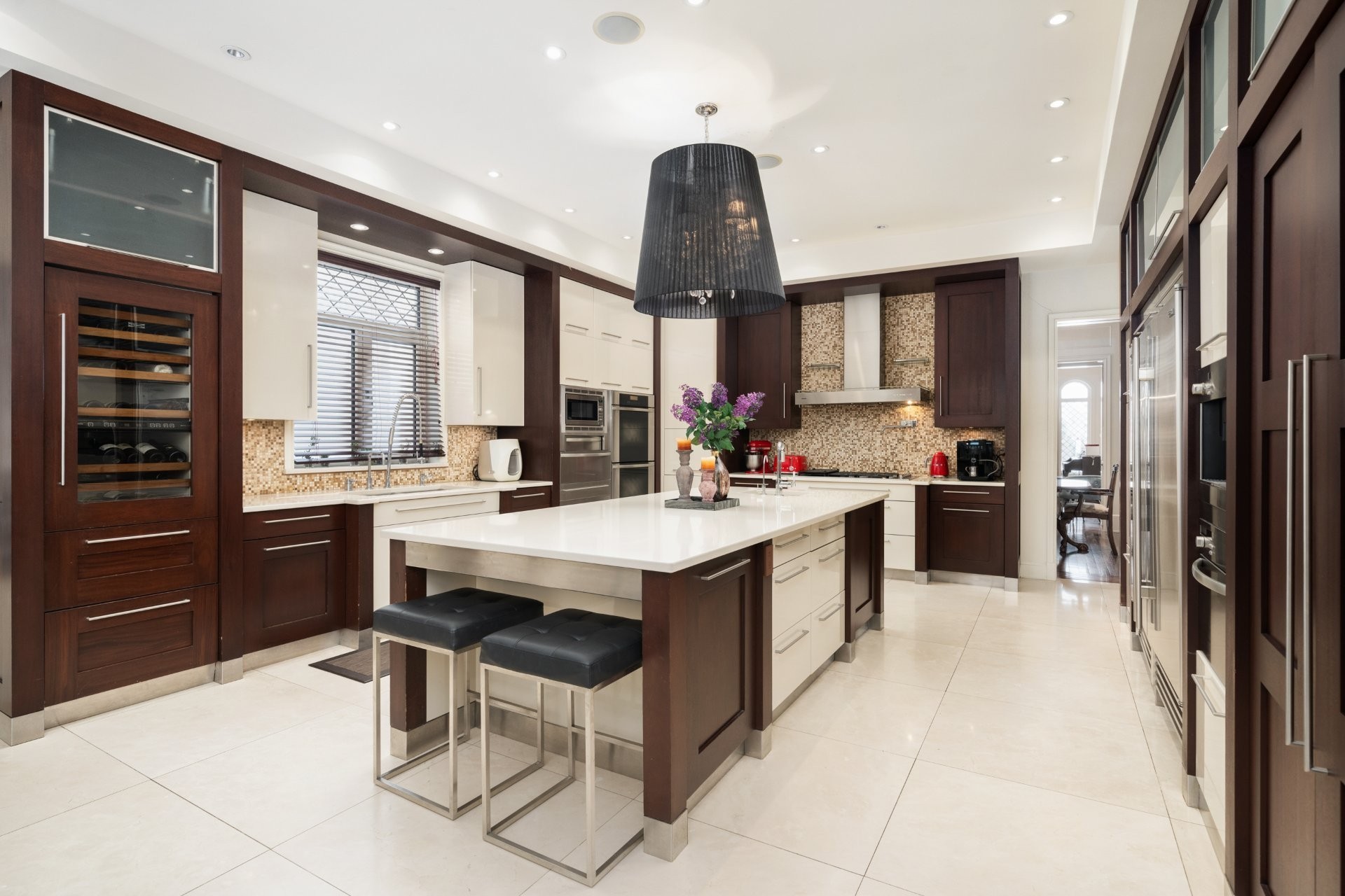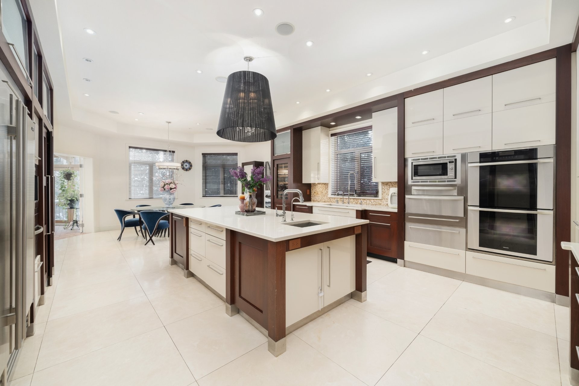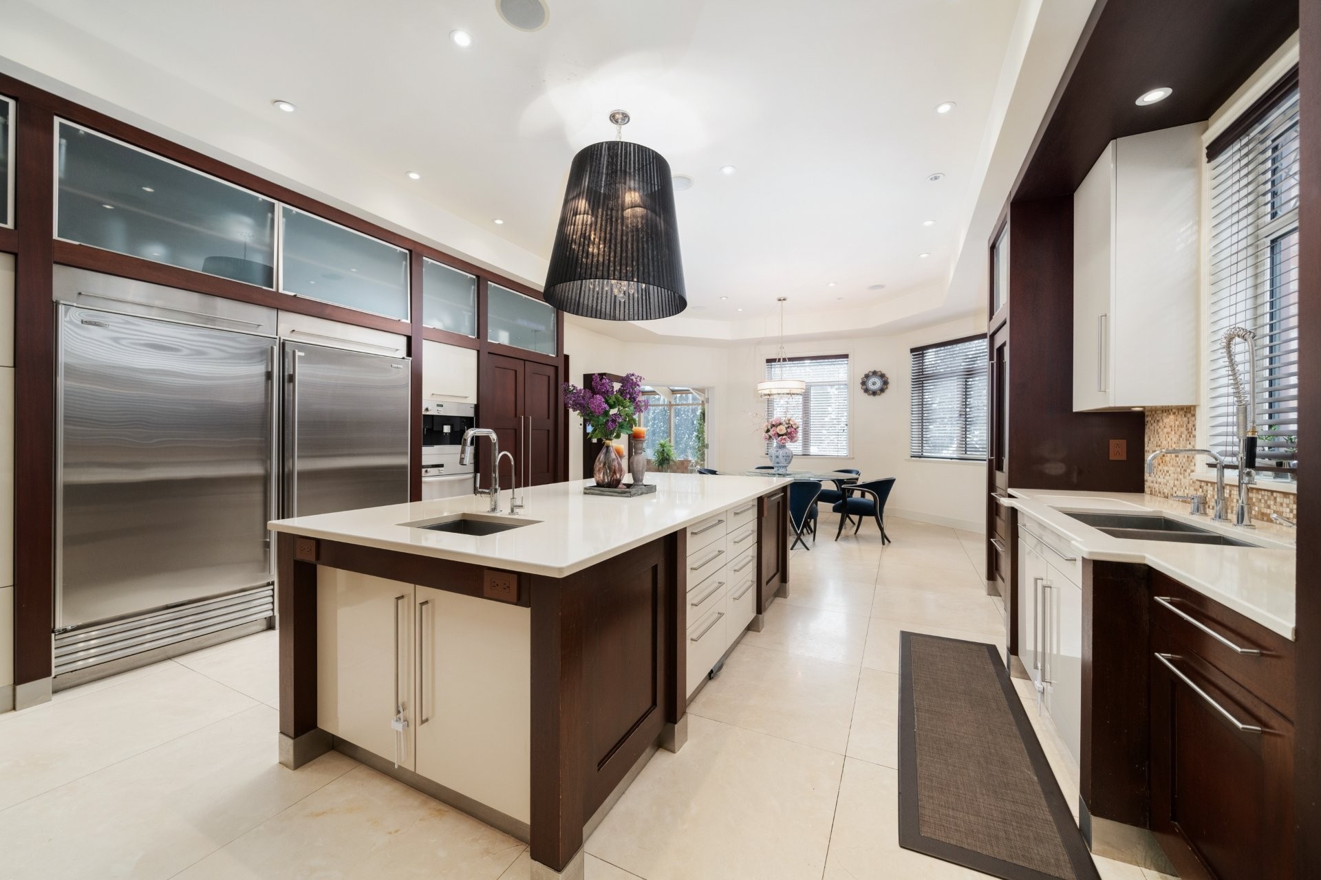 -Tiroir vapeur Miele, chauffe-assiettes, lave-vaisselle et machine à café. Réfrigérateur double porte Sub-Zero. Cuisinière à six feux Miele avec hotte professionnelle et robinet mural. Nombreux rangements sur mesure et espace bureau dissimulé.