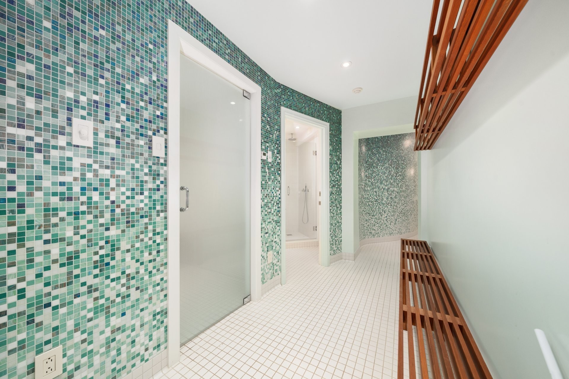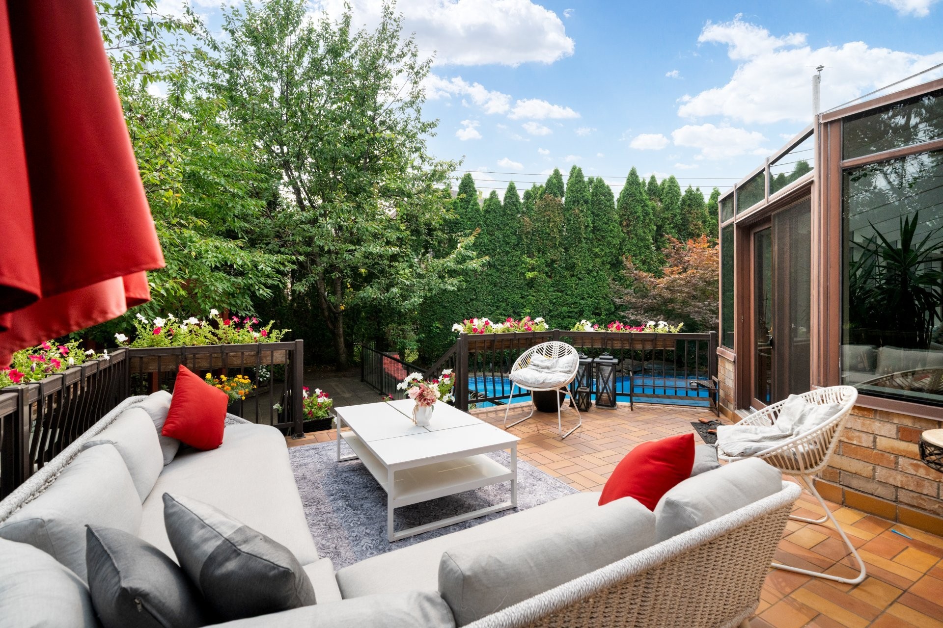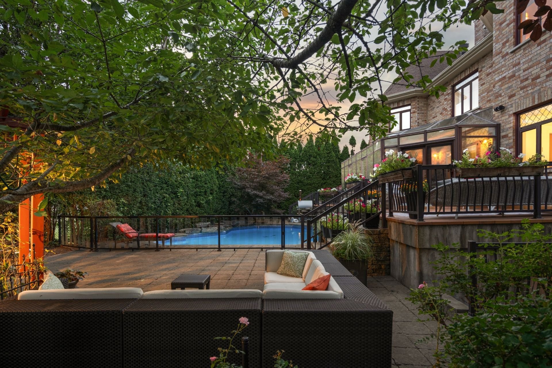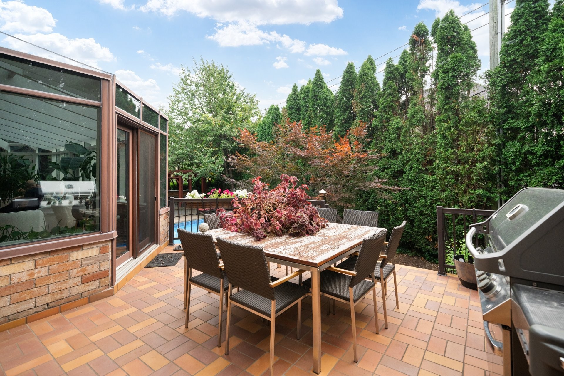 -Solarium quatre saisons baigné de lumière naturelle, donnant accès à la cour privée avec piscine d'eau salée chauffée et espace BBQ.-Élégante salle d'eau à deux pièces avec vestiaire attenant. Nouvelle toilette Toto installée au rez-de-chaussée.