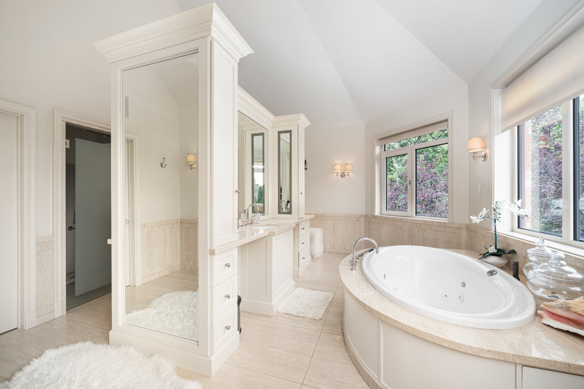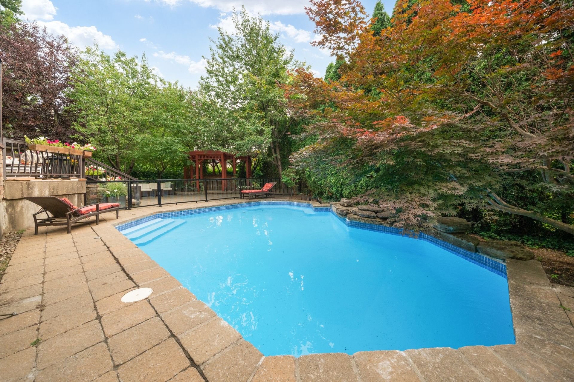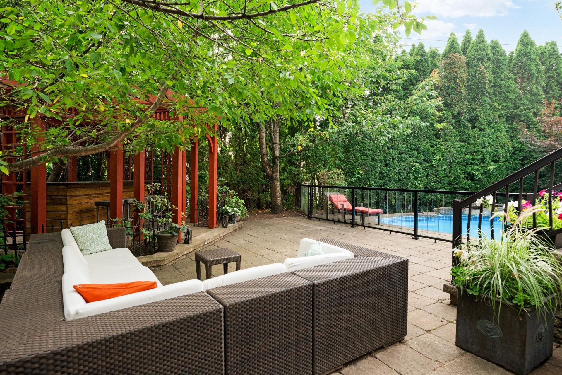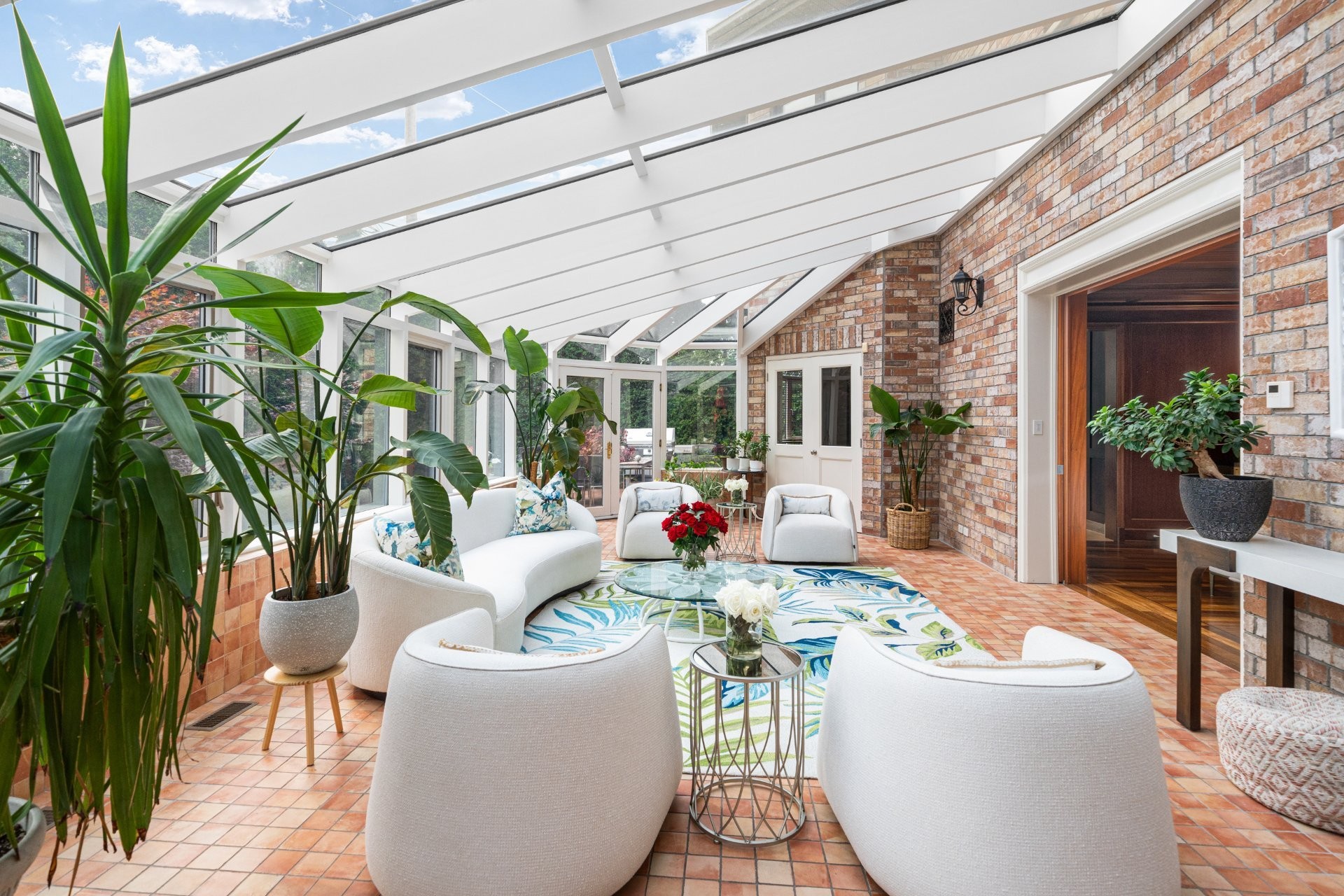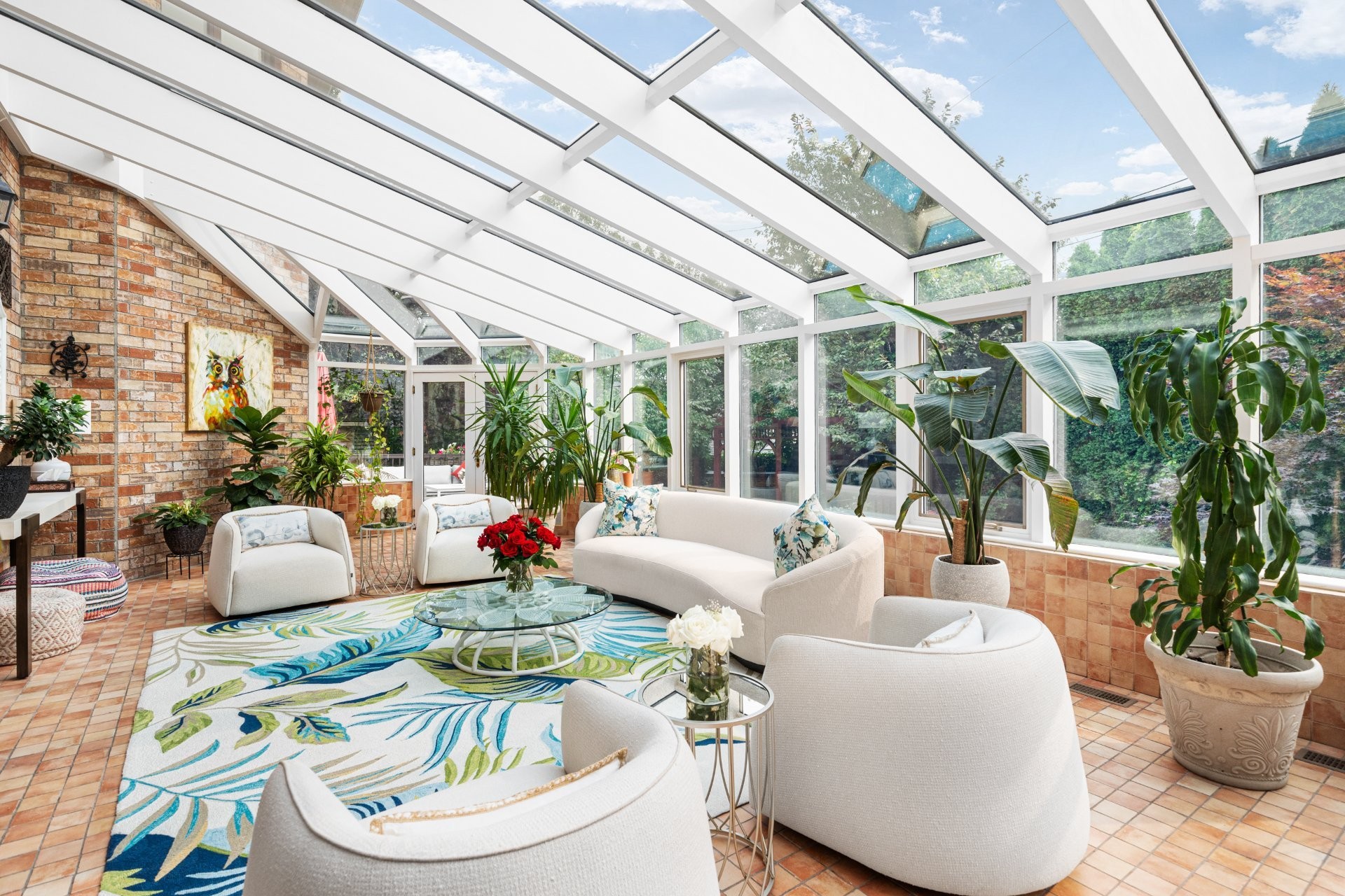 -Solarium quatre saisons baigné de lumière naturelle, donnant accès à la cour privée avec piscine d'eau salée chauffée et espace BBQ.-Élégante salle d'eau à deux pièces avec vestiaire attenant. Nouvelle toilette Toto installée au rez-de-chaussée.