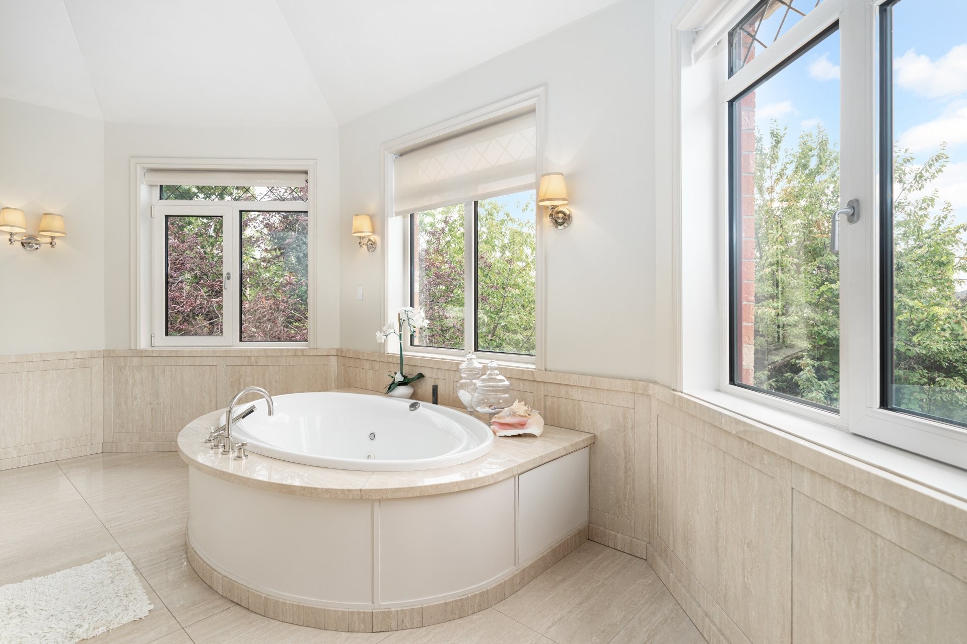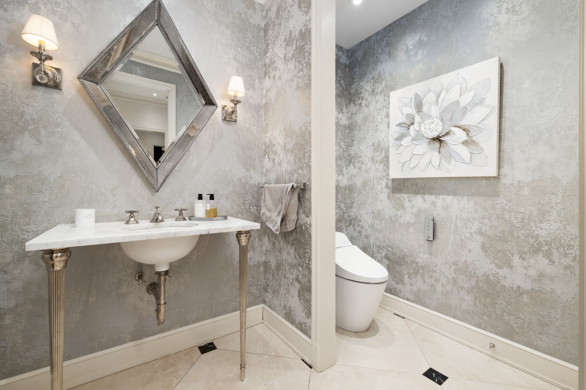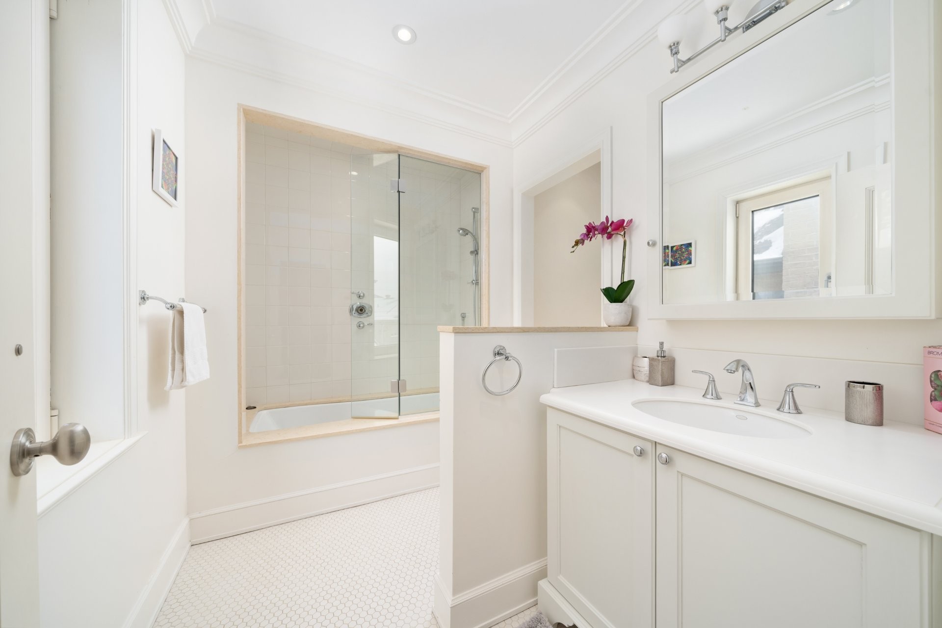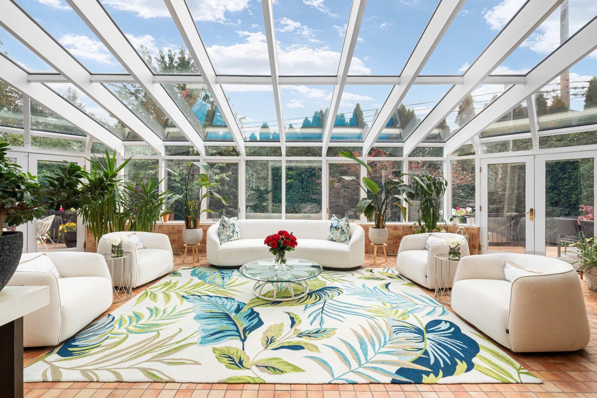 -Solarium quatre saisons baigné de lumière naturelle, donnant accès à la cour privée avec piscine d'eau salée chauffée et espace BBQ.-Élégante salle d'eau à deux pièces avec vestiaire attenant. Nouvelle toilette Toto installée au rez-de-chaussée.