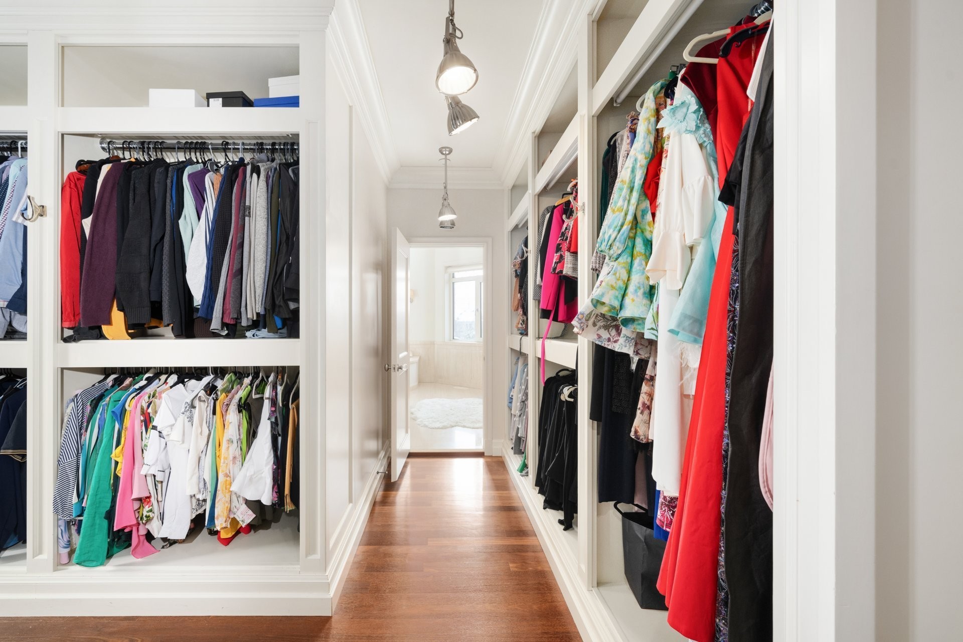 -Immense walk-in avec îlot central, menant directement à une salle de gym privée.