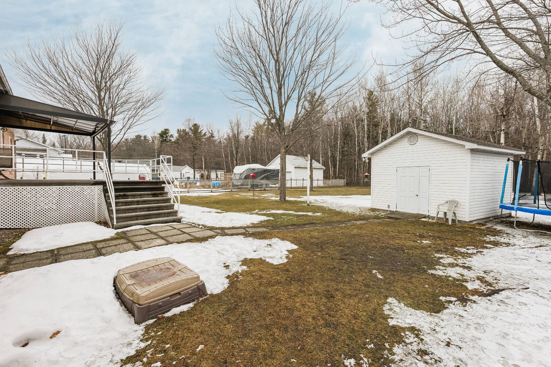 La maison comprend un garage attaché pratique et est située sur un grand terrain de plus de 17 000 pi². La cour arrière, sans voisin à l'arrière, offre une belle intimité et beaucoup d'espace pour profiter de l'extérieur en toute tranquillité.
