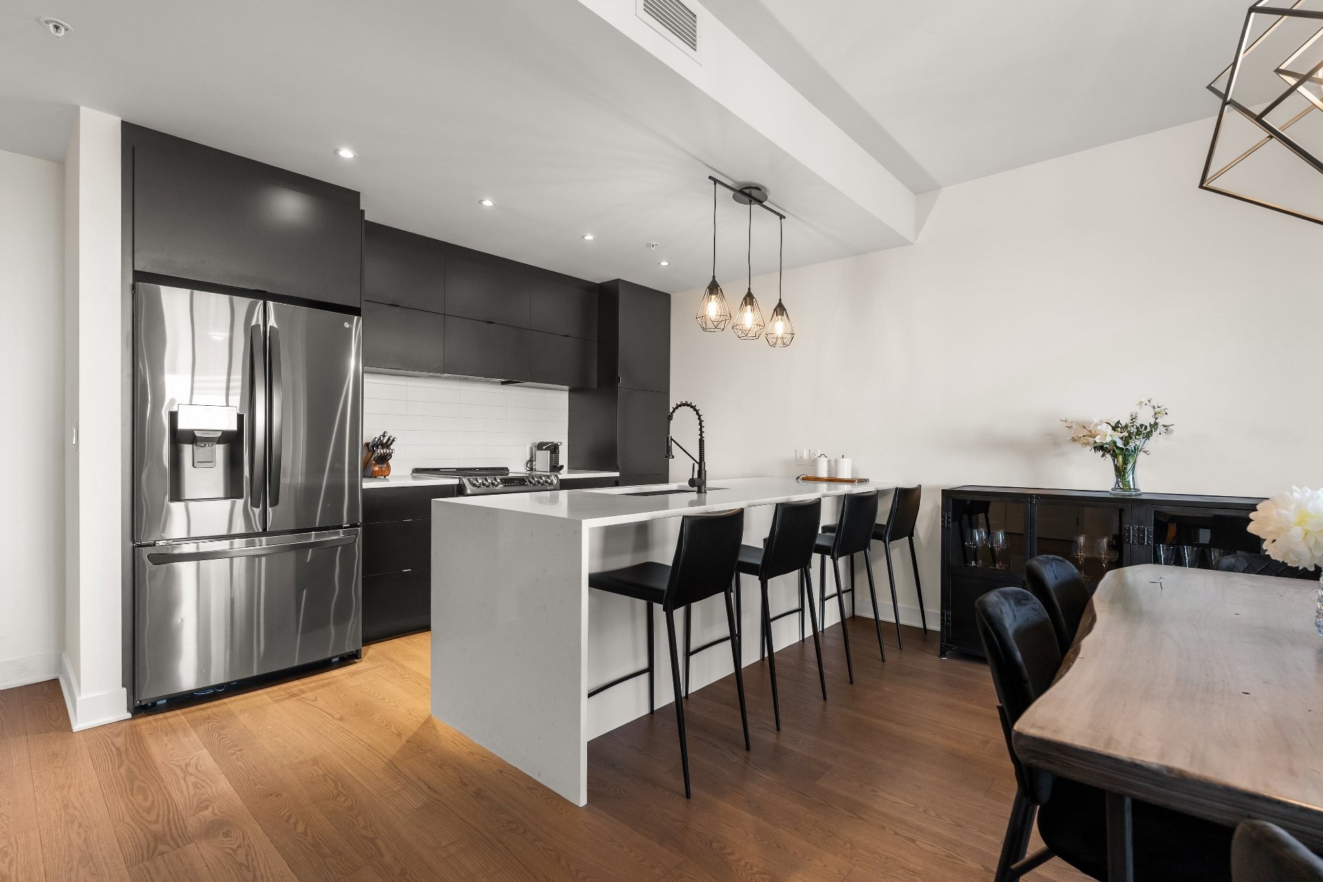 Au coeur de la propriété se trouve une cuisine élégante et moderne, dotée d'un grand îlot en quartz. La suite principale offre un véritable refuge avec un walk-in sur mesure par California Closets et une salle de bain comprenant une douche séparée et une baignoire. Une deuxième chambre et une salle de bain complète offrent une grande flexibilité pour les invités, la famille ou un bureau à domicile.