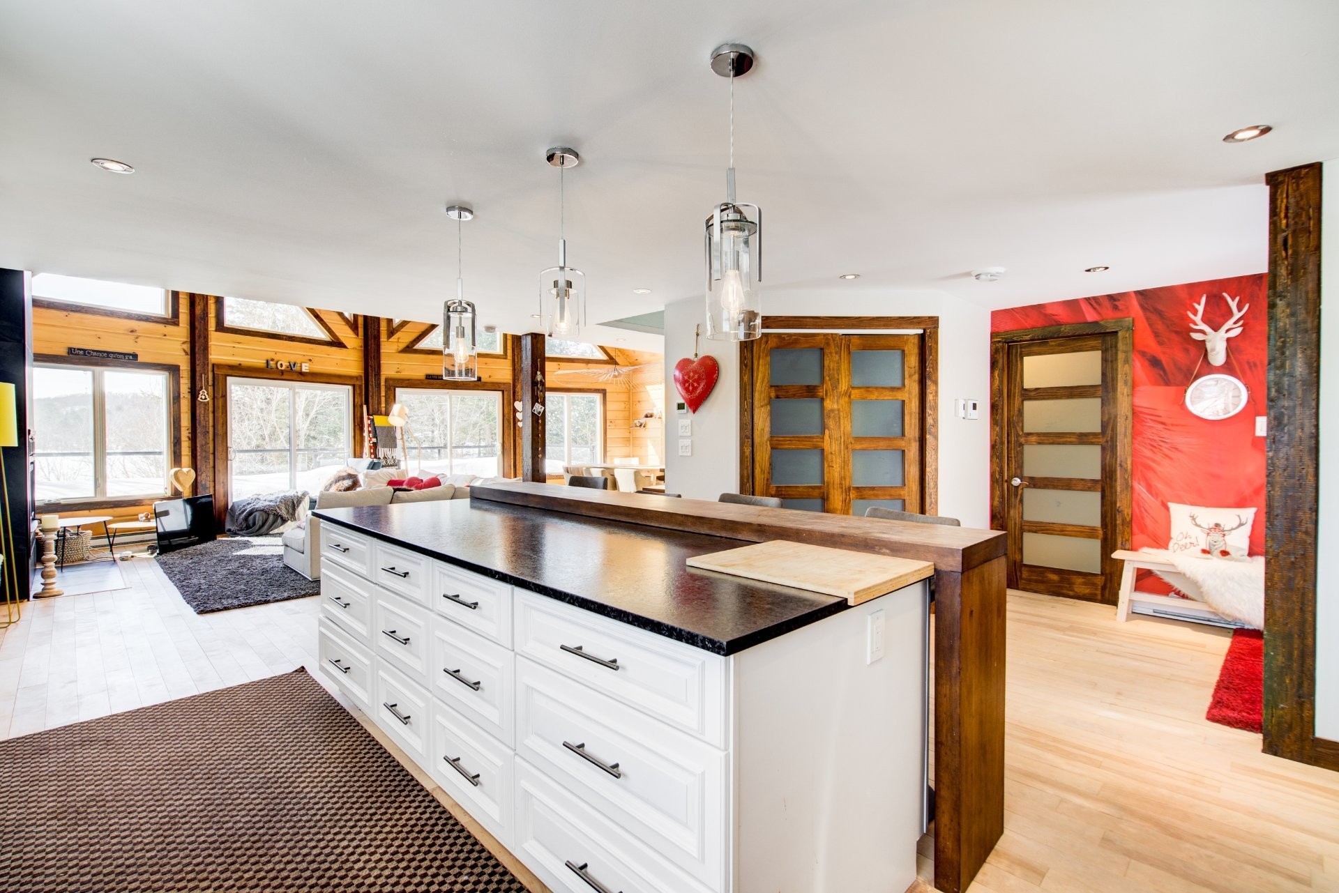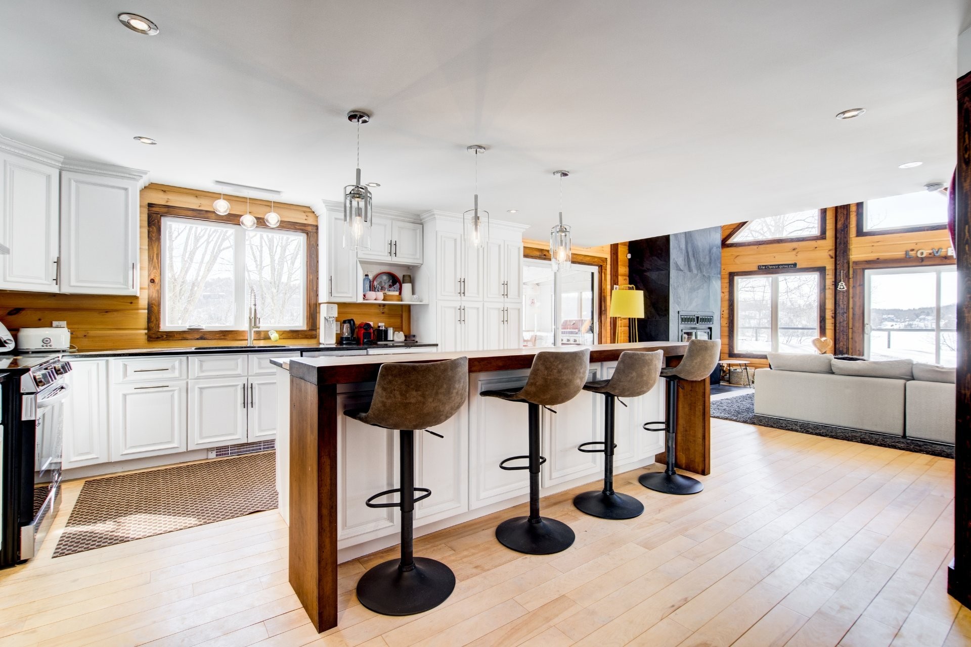 Découvrez un véritable havre de paix au bord du Lac-des-Becs-Scie, où cette somptueuse propriété allie élégance, confort et nature dans un cadre enchanteur. Avec 96 pieds de rive privée et une orientation soleil idéale, ce chalet de prestige, construit en 2014, vous offre une fenestration abondante et une vue imprenable sur le lac et la nature environnante. Son intérieur raffiné et entièrement meublé propose 5 chambres spacieuses et 4 salles de bains modernes, parfait pour accueillir famille et amis. Le rez-de-chaussée à aire ouverte, baigné de lumière, séduit par son ambiance chaleureuse : une vaste cuisine haut de gamme avec armoires en bois, comptoirs et îlot en granite, un salon accueillant avec foyer au bois à combustion lente (BIS) sous un magnifique toit cathédrale, ainsi qu'une salle à manger conviviale offrant une vue panoramique sur l'eau. Une véranda trois saisons attenante à la cuisine prolonge cet espace de vie, tandis qu'un grand balcon et un garage double complètent les commodités. À l'étage, la chambre principale avec walk-in bénéficie d'une salle de bain élégante avec grande douche et bain, tandis qu'une seconde chambre et un coin lecture sur la mezzanine ajoutent une touche de sérénité. Le rez-de-jardin dévoile trois autres chambres, dont une avec accès direct à une terrasse privée avec spa, idéale pour se détendre tout en admirant le lac. En plus de sa salle de bain avec douche, vient parfaire ce niveau. L'extérieur n'est pas en reste avec une terrasse et un quai privés, vous permettant de profiter pleinement des plaisirs nautiques sur ce lac navigable : kayak, pédalo, ponton et ski nautique en été, raquette et ski de fond en hiver. Située au bout d'une rue sans issue, cette propriété garantit calme et intimité, tout en étant à proximité du charmant village de Saint-Sauveur et de ses pentes de ski. Une rare opportunité de vivre une expérience exceptionnelle en pleine nature, sans compromis sur le luxe et le confort!