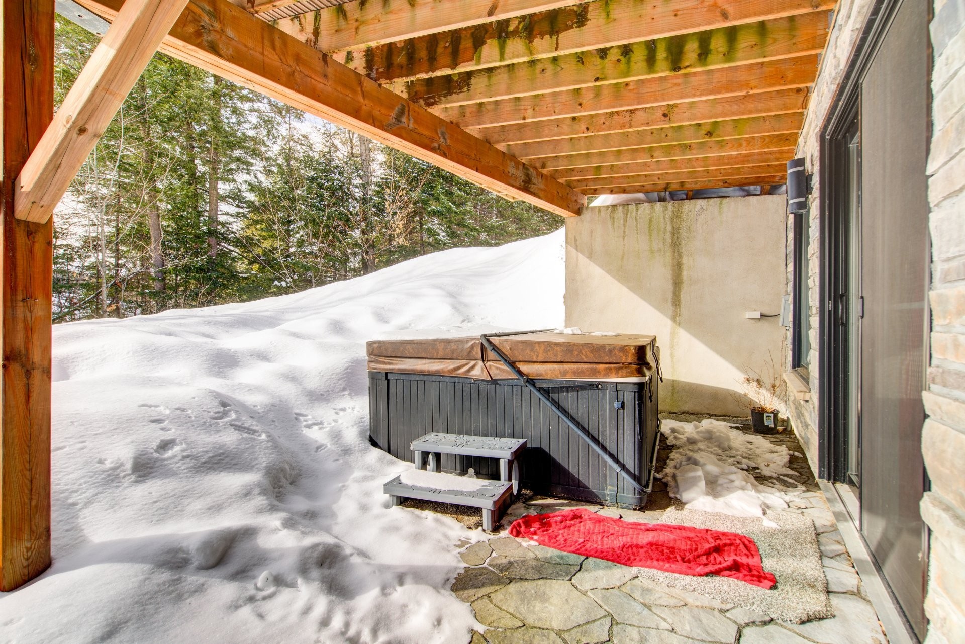 Complétement meublé tels que sur les photos et lors de la visite. Ménage une fois par mois. Déneigement, Jardinage 1 fois par mois, Entretien du jacuzzi 1 fois par mois. Alarme