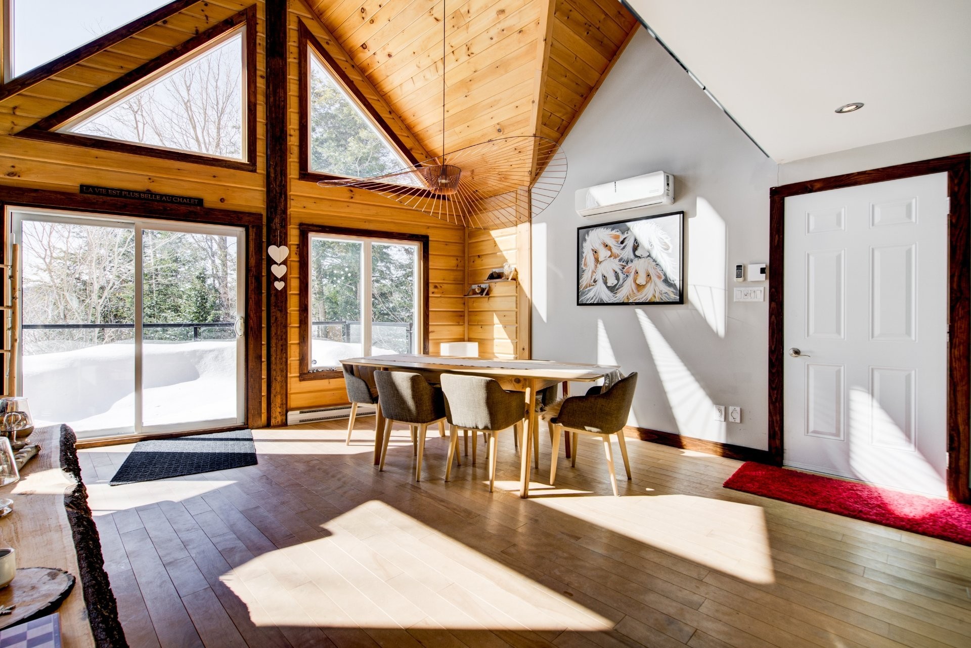 Superbe chalet meublé au bord du Lac-des-Becs-Scie pour LOCATION LONGUE DURÉE UNIQUEMENT avec 96 pieds de rive privée et une vue splendide. Construit en 2014, il offre 5 chambres, 4 salles de bains et un garage double, dans un cadre paisible au bout d'une rue sans issue. Son aire ouverte lumineuse comprend une cuisine haut de gamme, un salon avec foyer au bois et une véranda trois saisons. Le rez-de-jardin dispose de 3 chambres, dont une avec accès à une terrasse privée et spa. Quai privé pour activités nautiques sur lac navigable. À proximité de Saint-Sauveur et des pentes de ski, un luxe en pleine nature!