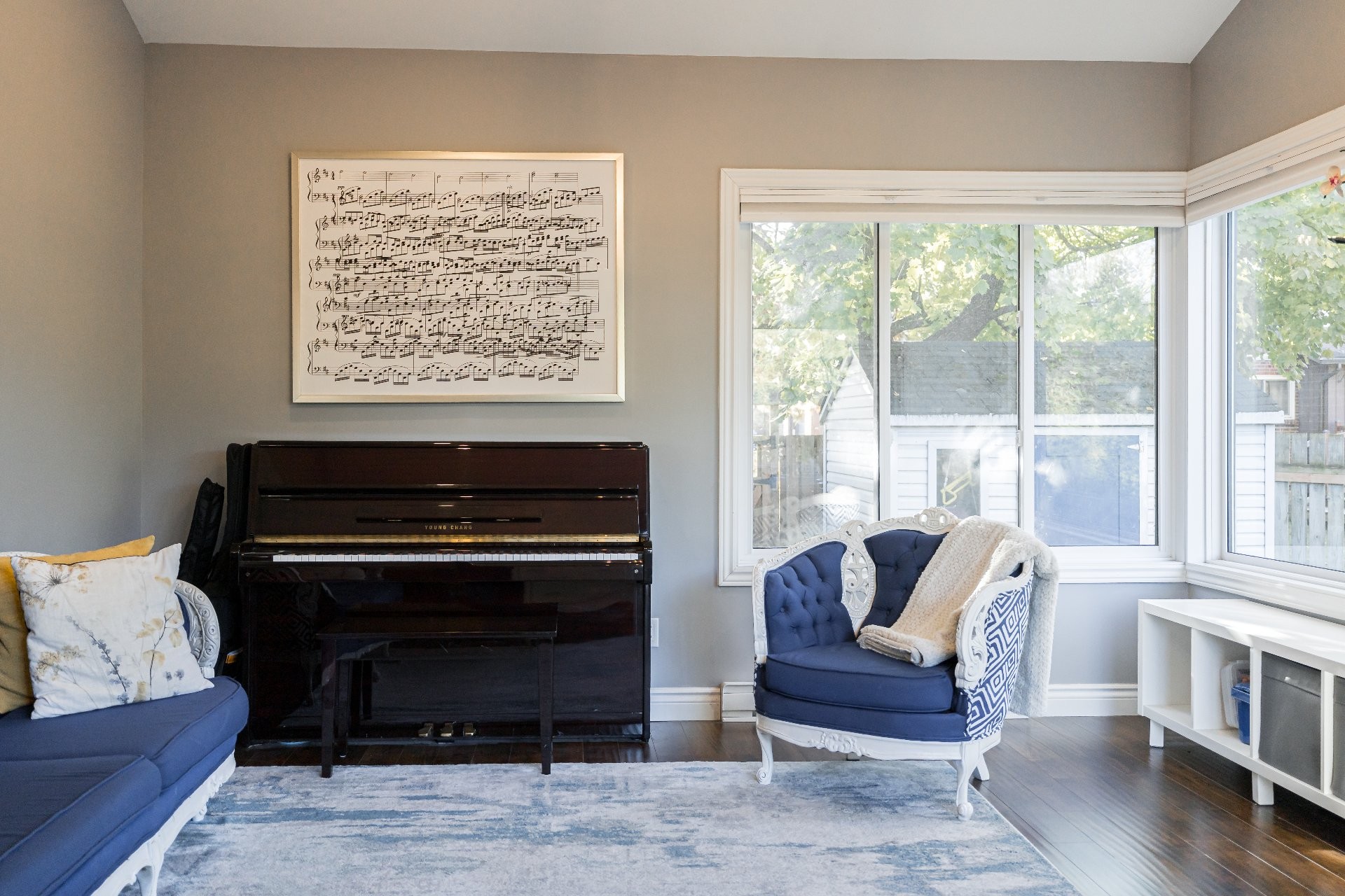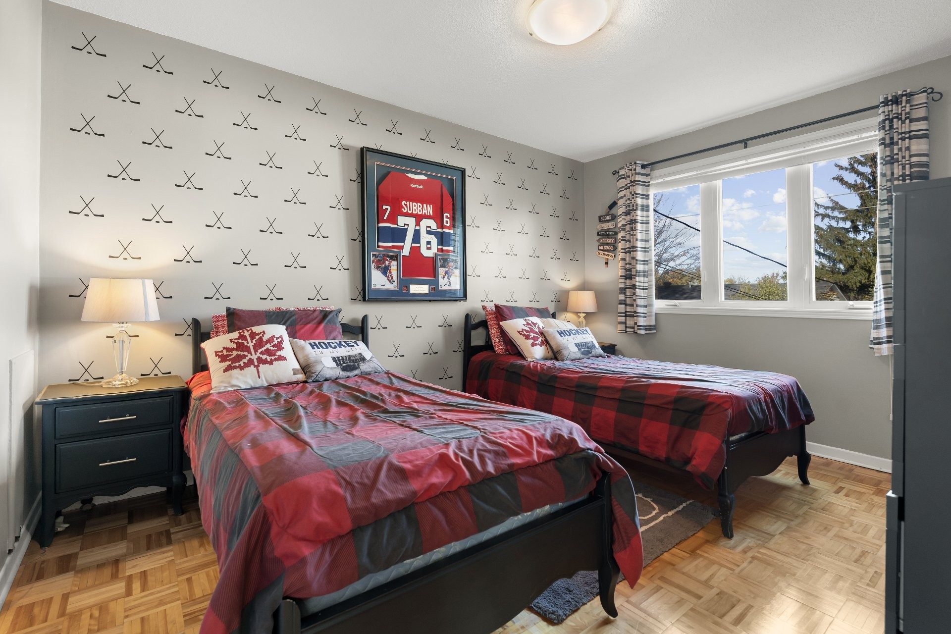 Tringles à rideaux et rideaux dans 3 chambres et la salle familiale. Réfrigérateur et congélateur au sous-sol.