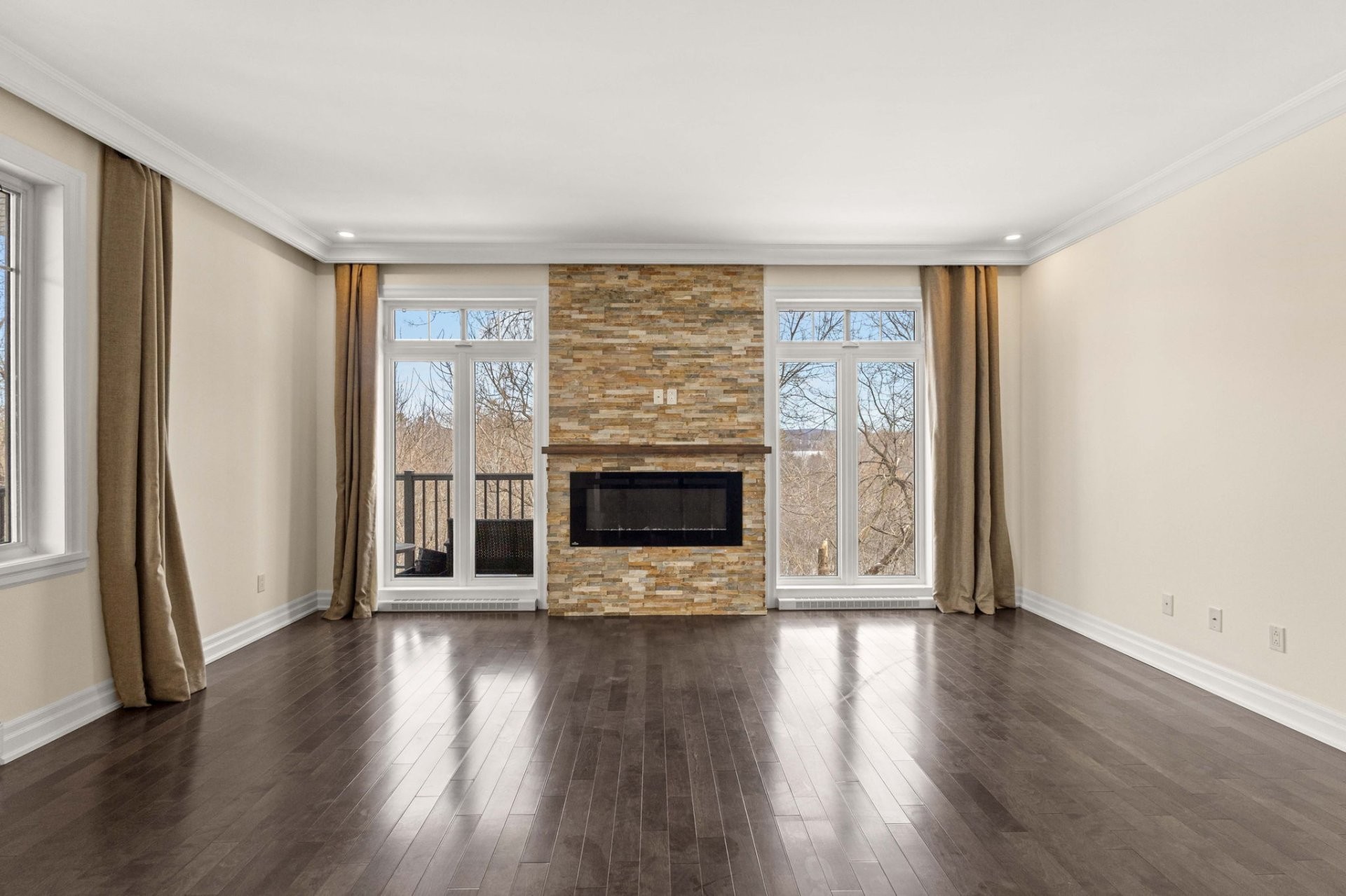 Les planchers de bois franc, les moulures raffinées et l'aire ouverte salon/salle à manger créent un espace chaleureux et invitant, parfait pour recevoir. Des portes-patio mènent à une grande terrasse privée, idéale pour les repas d'été ou les moments de détente.