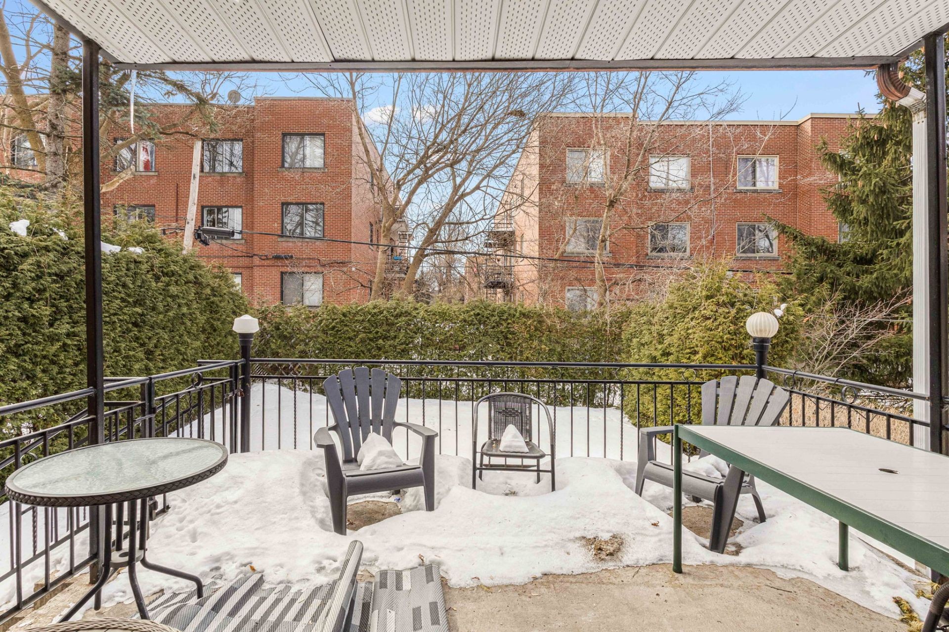 Tous les meubles et effets personnels, y compris le mobilier de terrasse arrière.