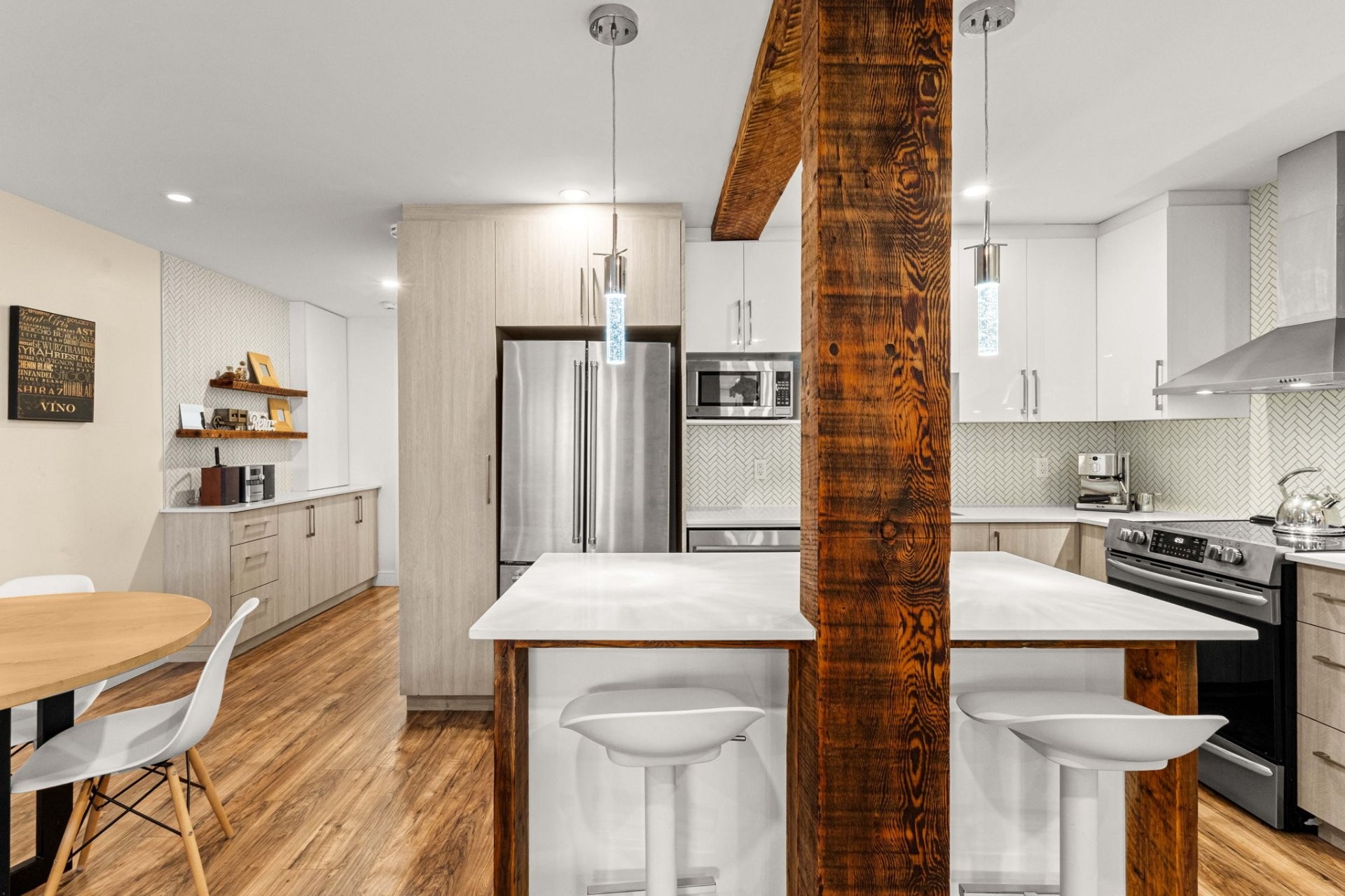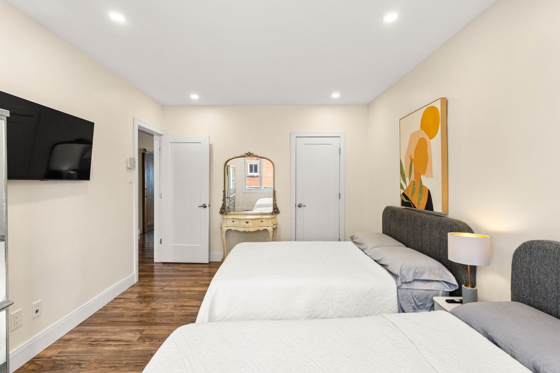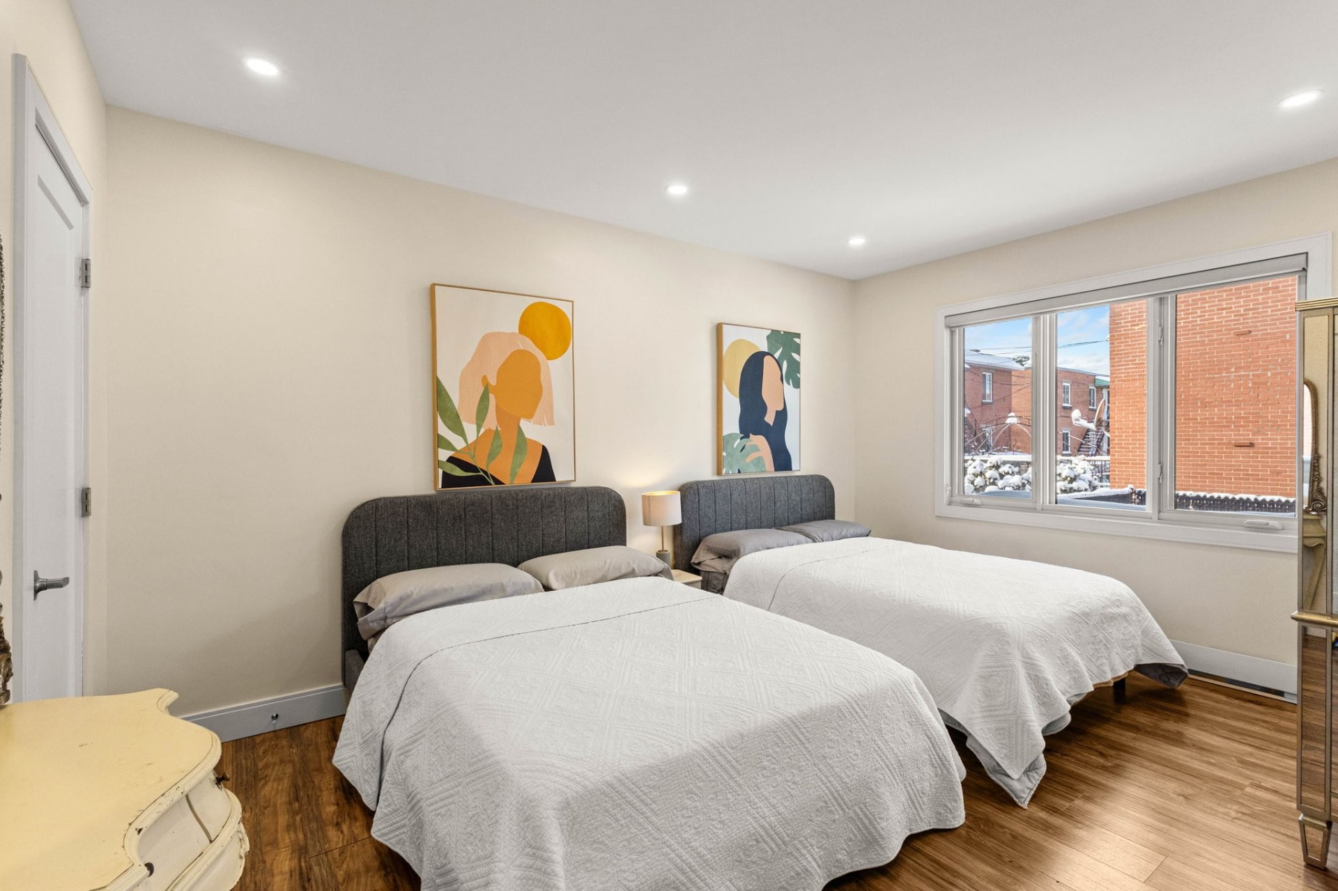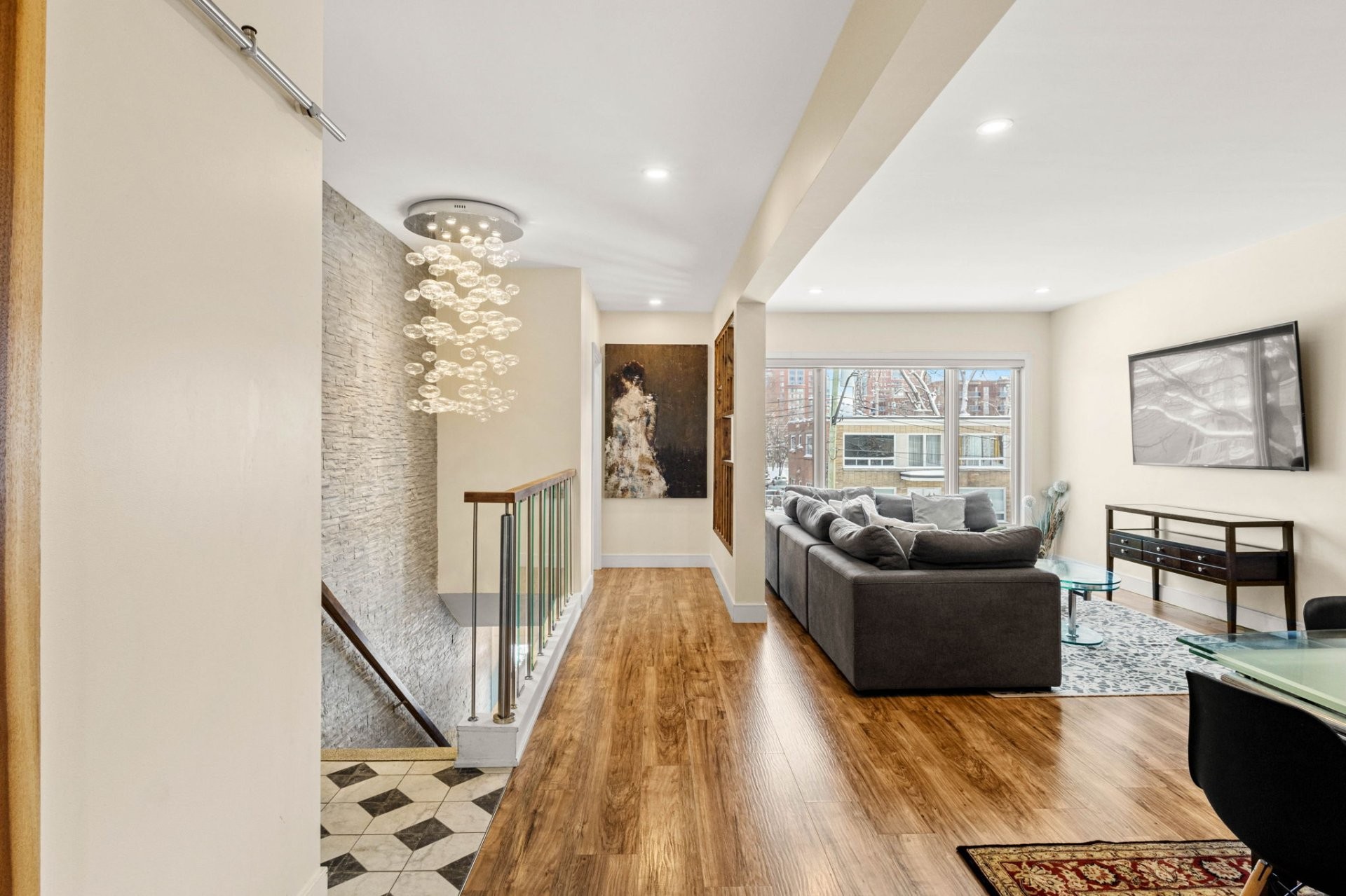 Entièrement vacant et rénové,triplex semi-détaché de coin,prêt à l'occupation,situé à Saint-Laurent à quelques pas de la station REM Montpellier. Les logements du rez-de-chaussée et de l'étage offrent chacun 3 chambres et 2 sdb,de grandes aires de vie,une chambre principale avec sdb attenante et walk-in,cuisines modernes,planchers chauffants dans les salles de bain et portes-patio donnant accès aux balcons.Le sous-sol comprend un 4 1/2 rénové avec deux chambres, cuisine avec îlot et espace laveuse-sécheuse.Idéal pour propriétaires-occupants ou investisseurs recherchant une propriété clé en main,excellent accès au transport et attrait locatif!