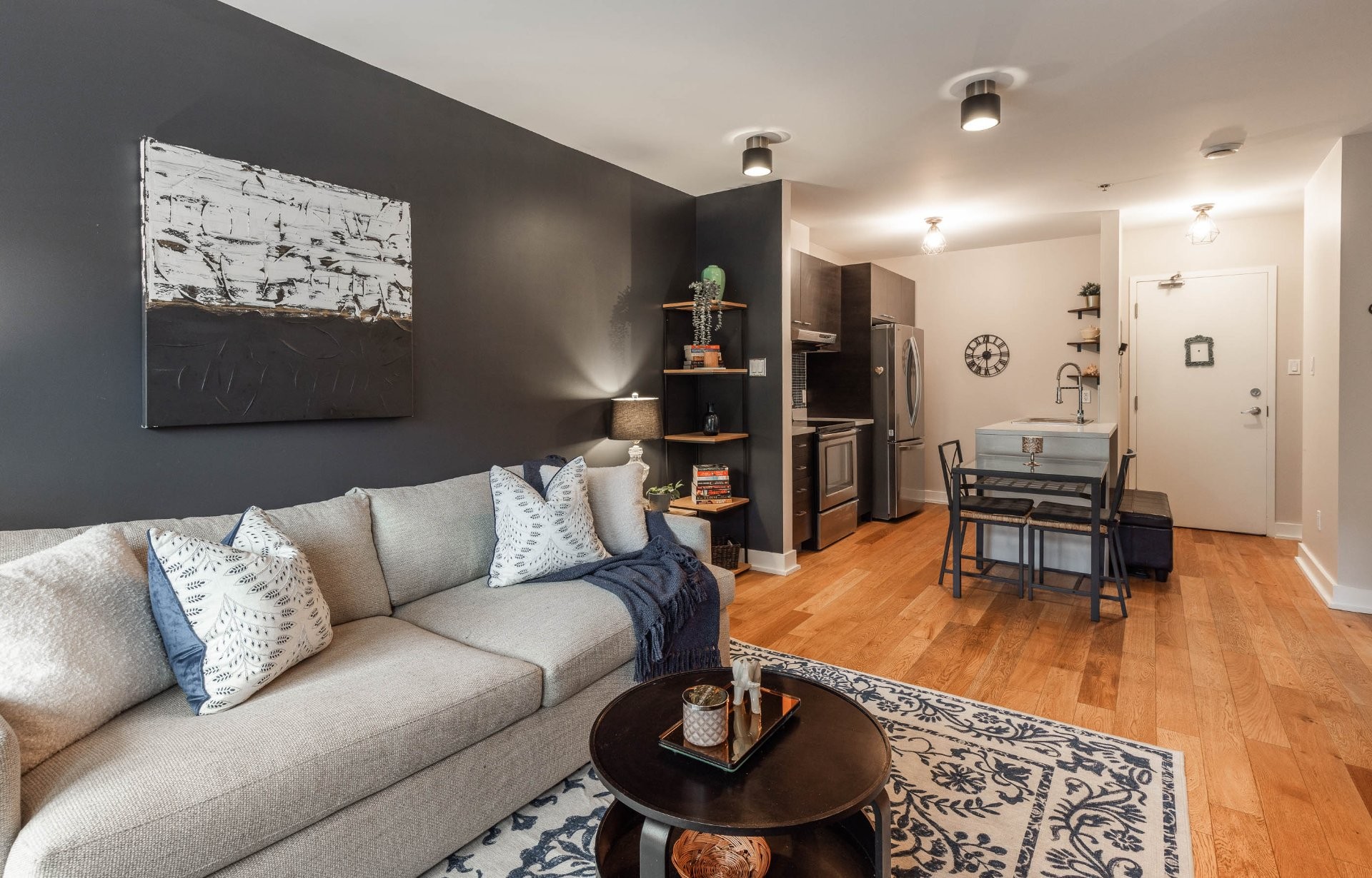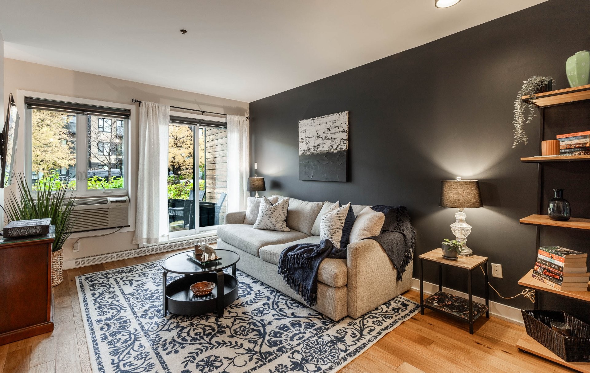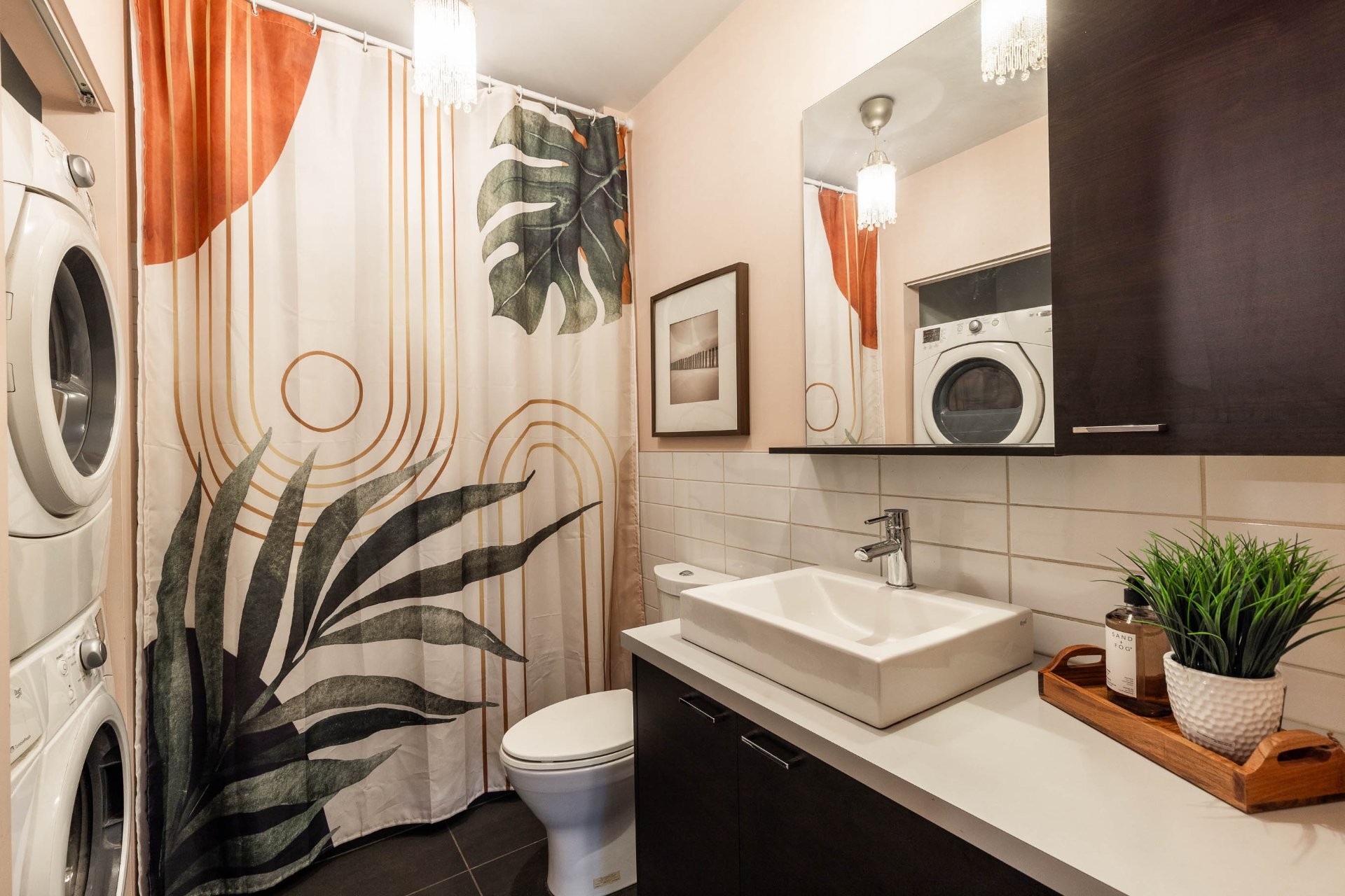 Condo de coin au rez-de-chaussée bien aménagé, comprenant une chambre fermée et un espace de vie lumineux et à aire ouverte. Profitez d'une grande terrasse en bois, des électroménagers inclus (sauf le réfrigérateur), d'un walk-in et d'un espace de rangement. Stationnement extérieur inclus. Accès à un gym, un salon commun et une terrasse partagée. Animaux acceptés. Idéalement situé à environ 10 minutes de l'eau, près des principales autoroutes et de l'aéroport, parfait pour les navetteurs. Cette unité clé en main offre confort, fonctionnalité et simplicité de vie.