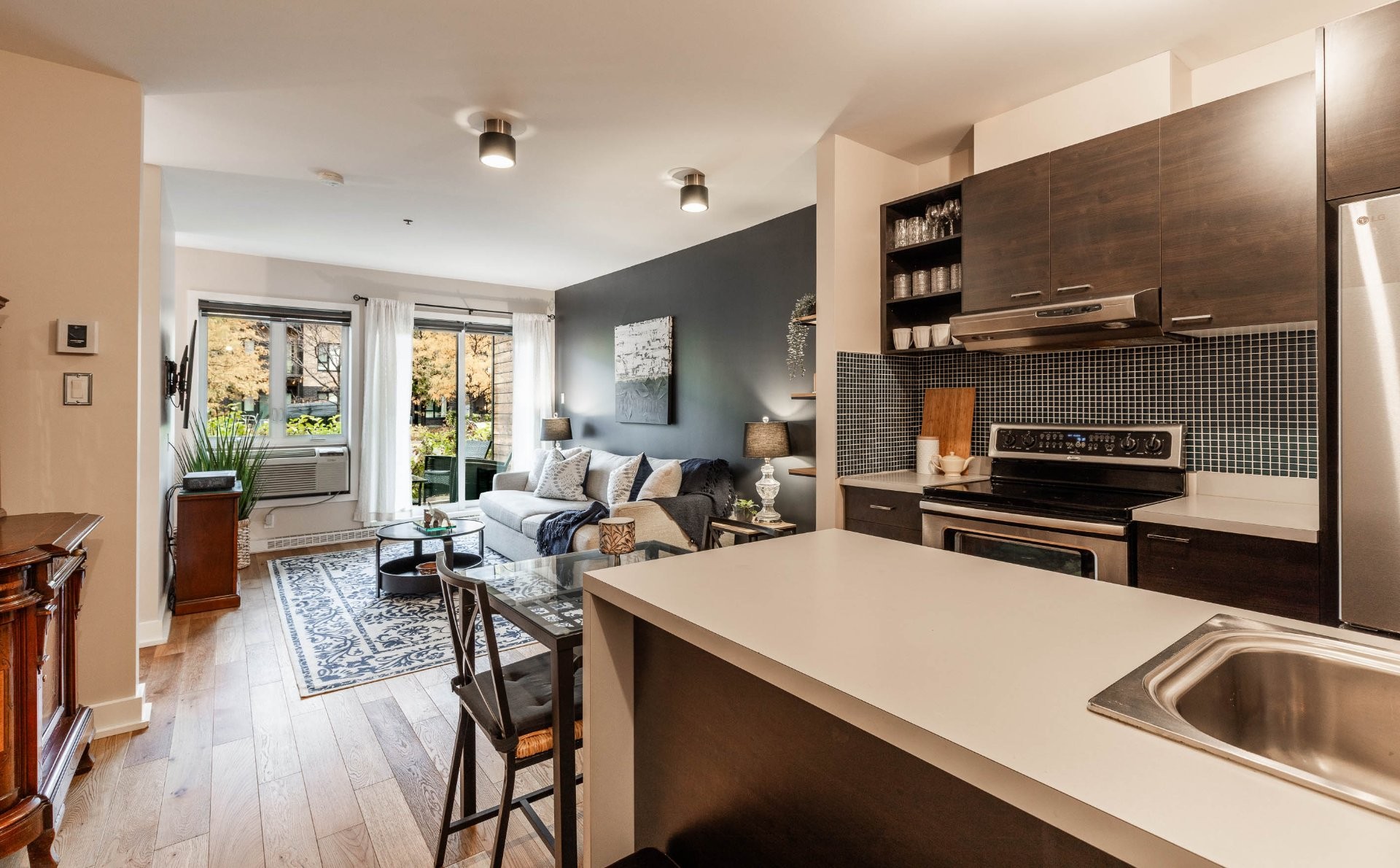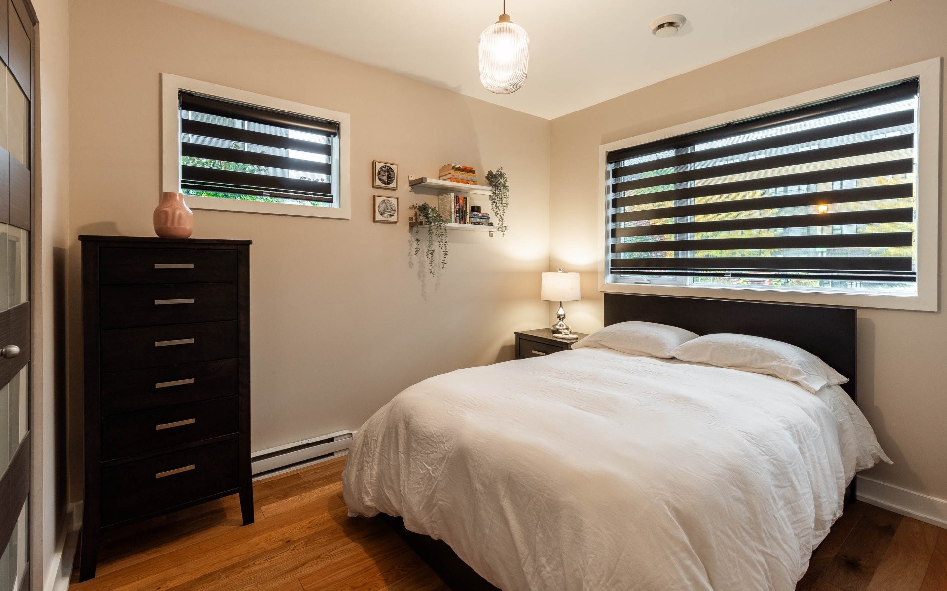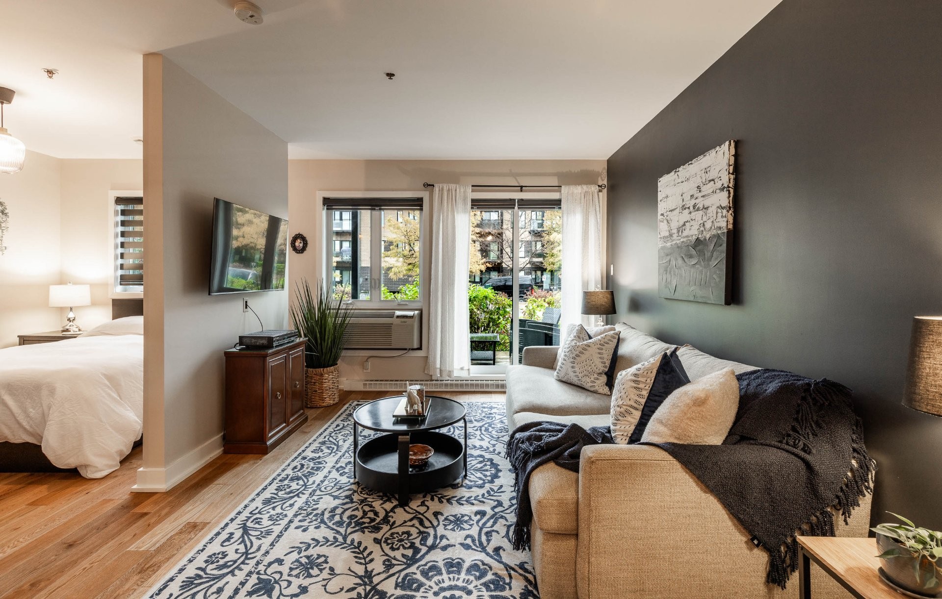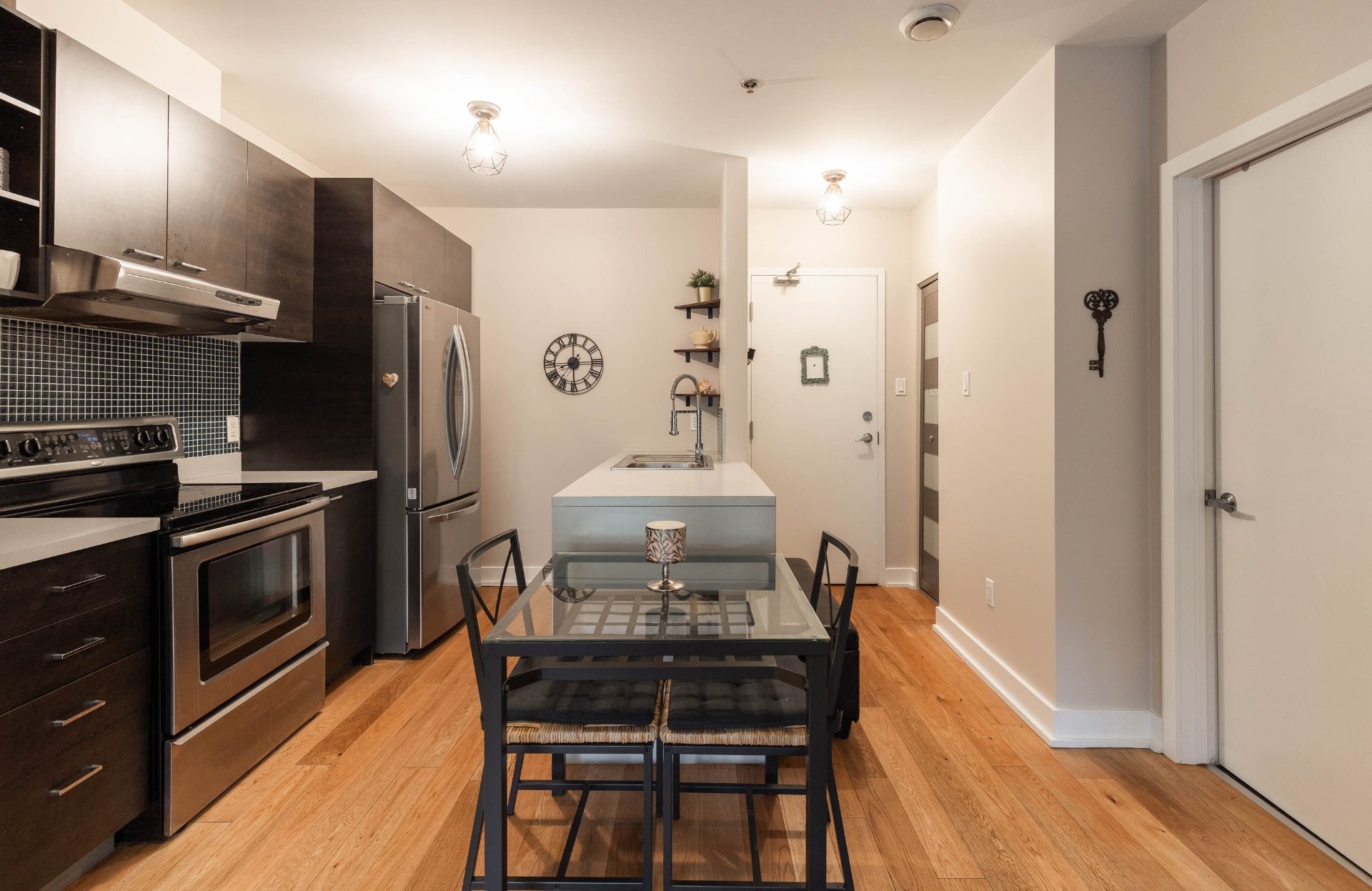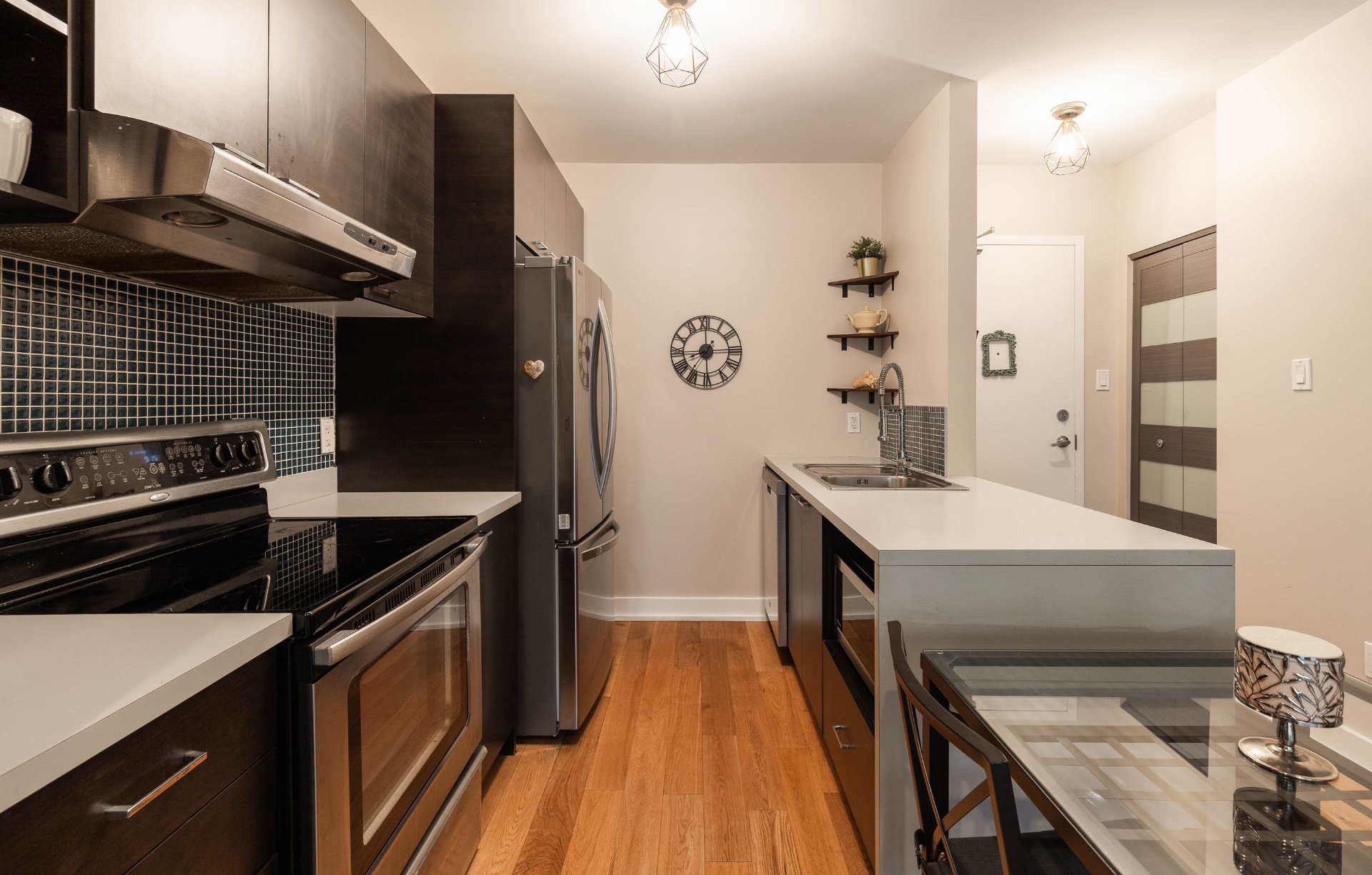 Condo de coin au rez-de-chaussée bien aménagé, situé dans le complexe prisé Mousseau-Vermette à Dorval. Cette unité lumineuse et accueillante offre un espace chambre à aire ouverte, un walk-in et un espace de vie convivial baigné de lumière naturelle, avec des finitions de qualité partout.