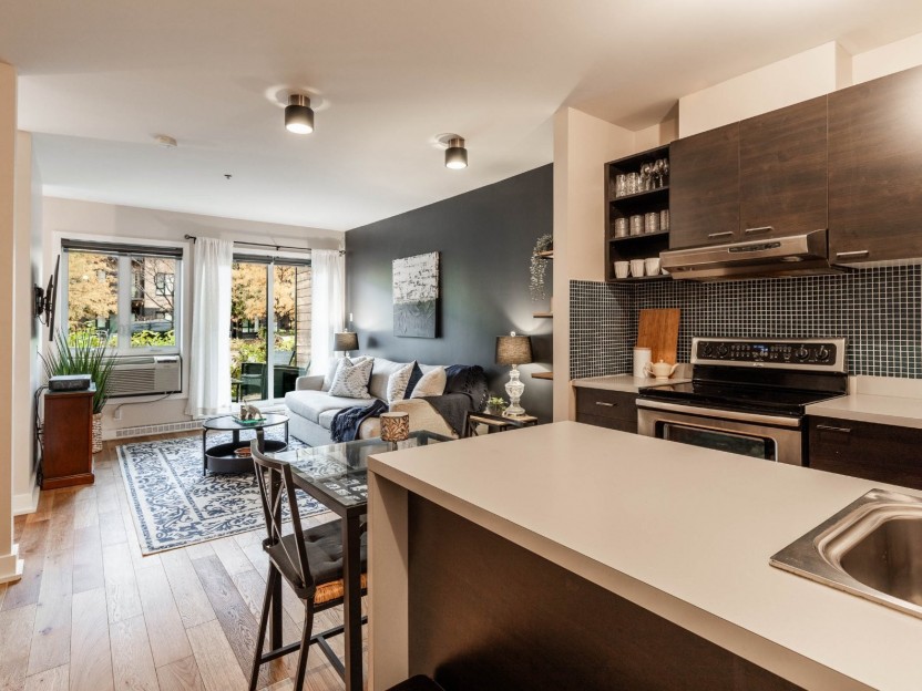 Condo de coin au rez-de-chaussée bien aménagé, comprenant une chambre fermée et un espace de vie lumineux et à aire ouverte. Profitez d'une...