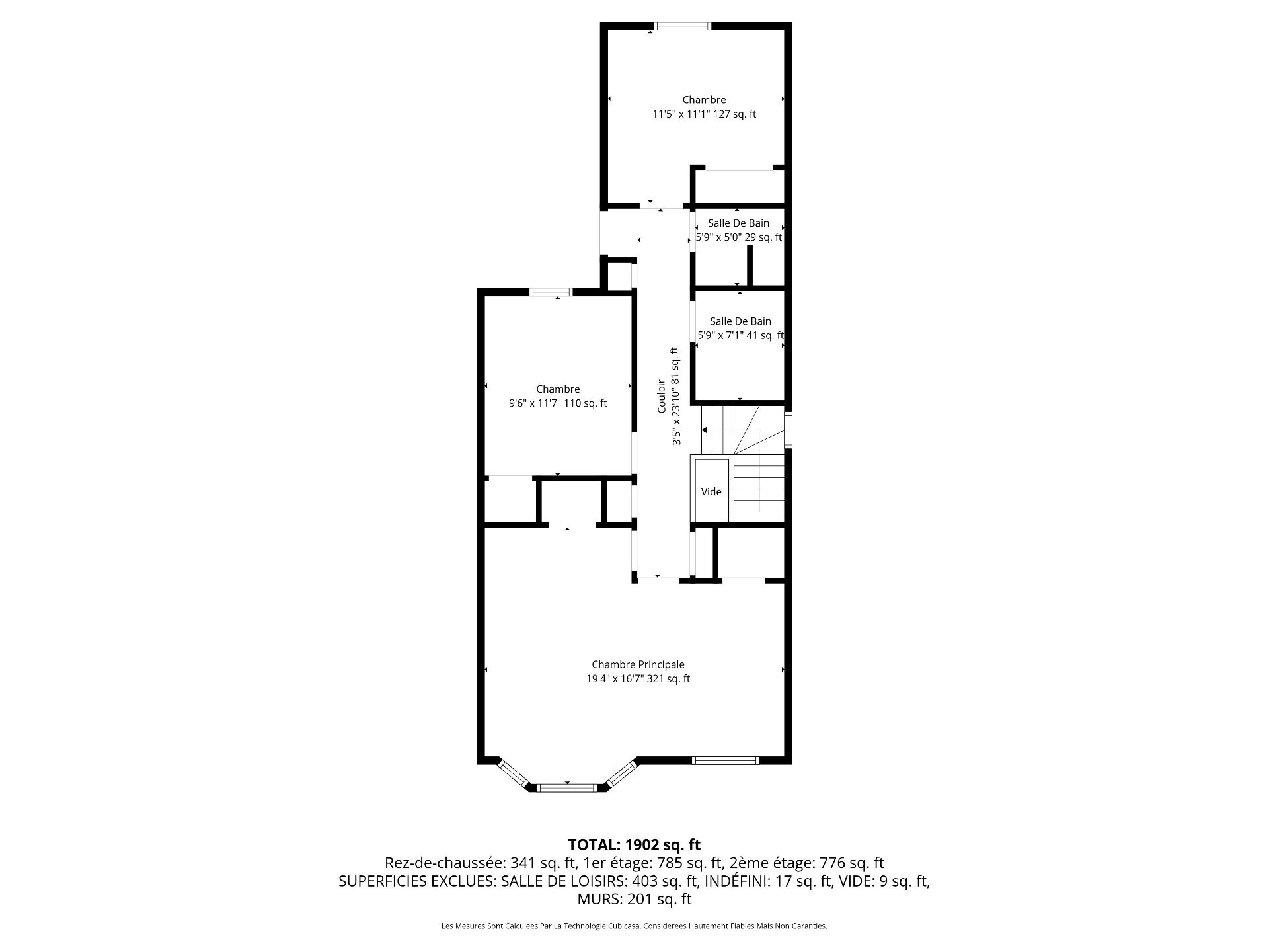 | Chambre à coucher principale | 2ième étage | 19.4x16.7 P | Tapis | |